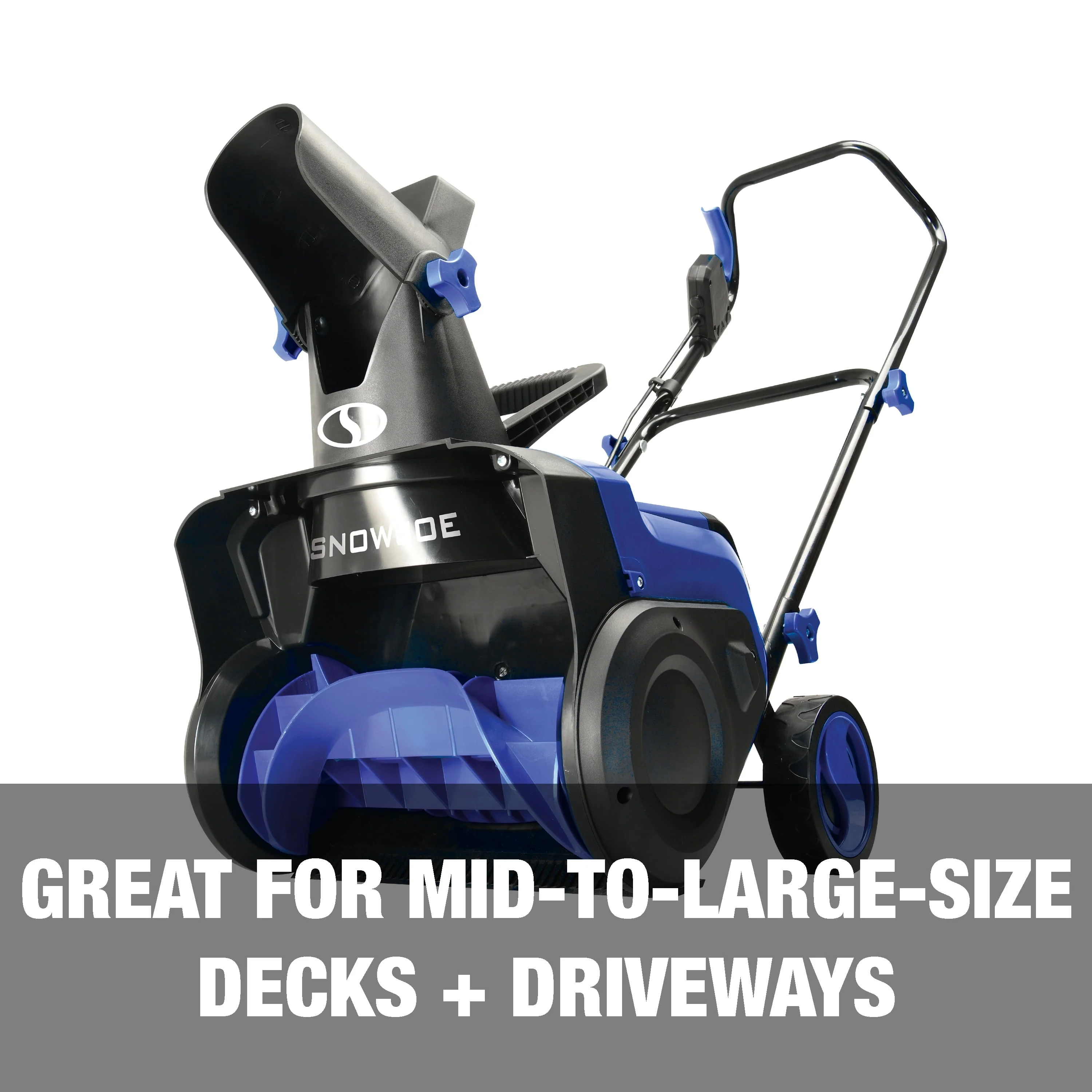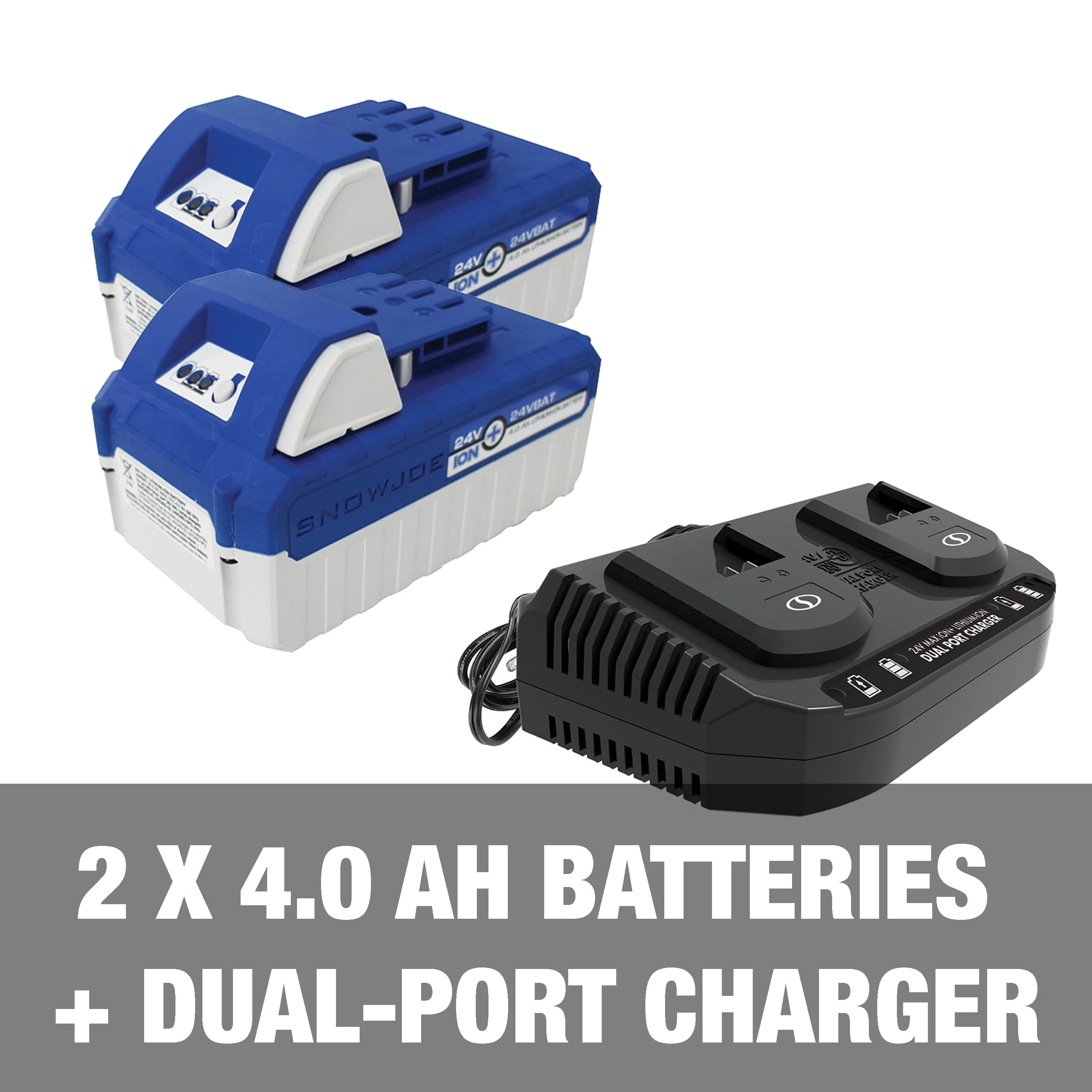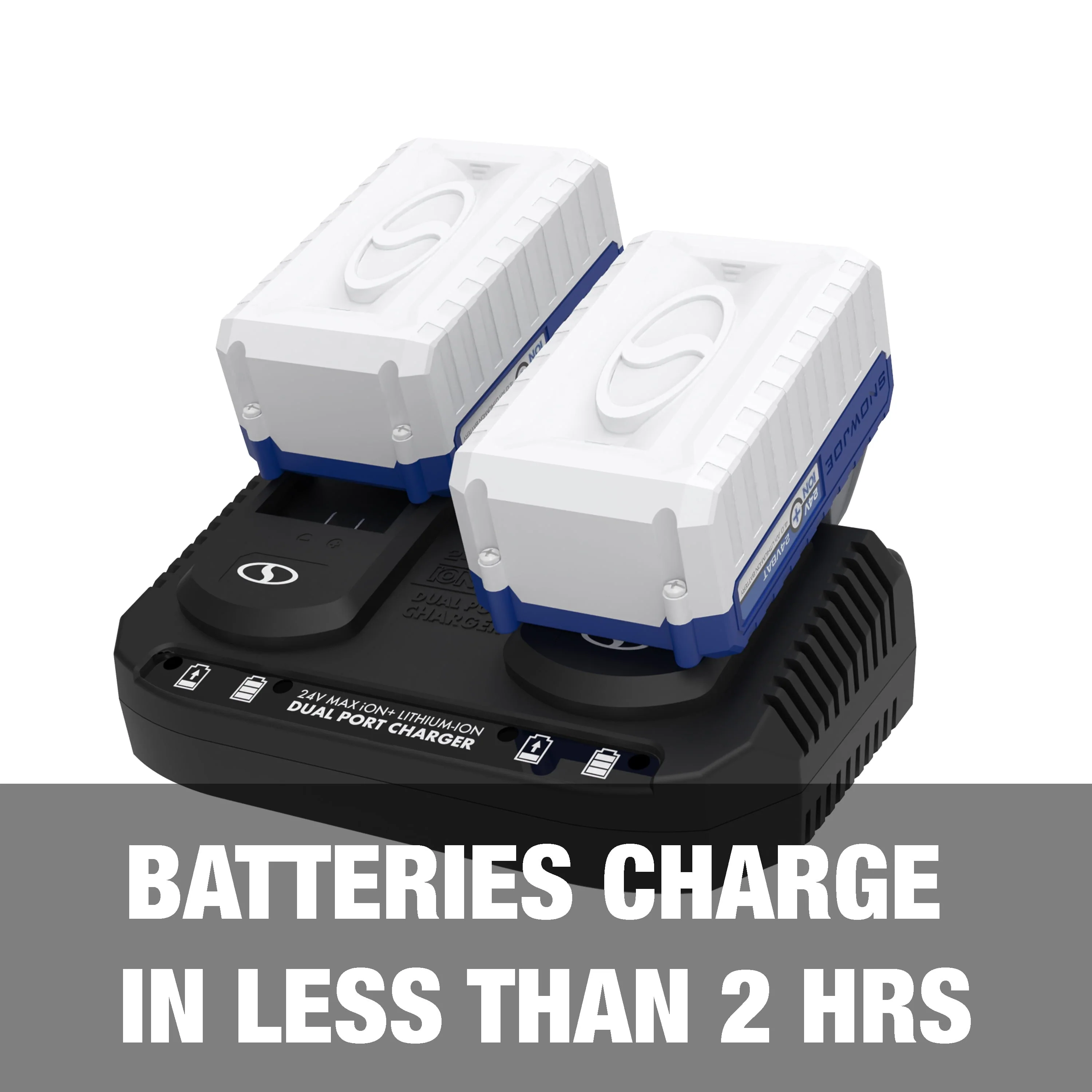SNOW PROBLEM! Snow days just got easier with the latest addition to the 24V IONMAX line-up: 24V-X2-SB15 48-Volt 15-Inch Cordless Snow Blower from SNOW JOE. Powered by the exclusive IONMAX series, Snow Joe features two high-capacity 24-volt, 4.0 Ah lithium-ion battery cells to deliver up to 30 mins of rechargeable runtime. Shred up to 1300 sq. ft. of 3" snow with the 2-blade, temperature-resistant auger, and clear a 15-inch wide and 6-inch deep path in a single pass �?right down to the ground without damaging your deck or pavement! Lightweight and ultra-portable, Snow Joe is perfect for clearing more than just the driveway �?clean up the porch, pavers, sidewalk, and deck of snow without having to break out the shovel. SNOW JOE's eco-friendly 750-Watt brushless motor plows through up to 441 lbs per minute! And with the 180º adjustable chute, you can put the powder precisely where you want it �?up to 20 ft. away! So, when mother nature strikes, fight back with 48-Volts of snow-clearing power: 24V-X2-SB15 48-Volt 15-Inch Cordless Snow Blower from SNOW JOE®. Get Equipped® and Go With Joe®!
