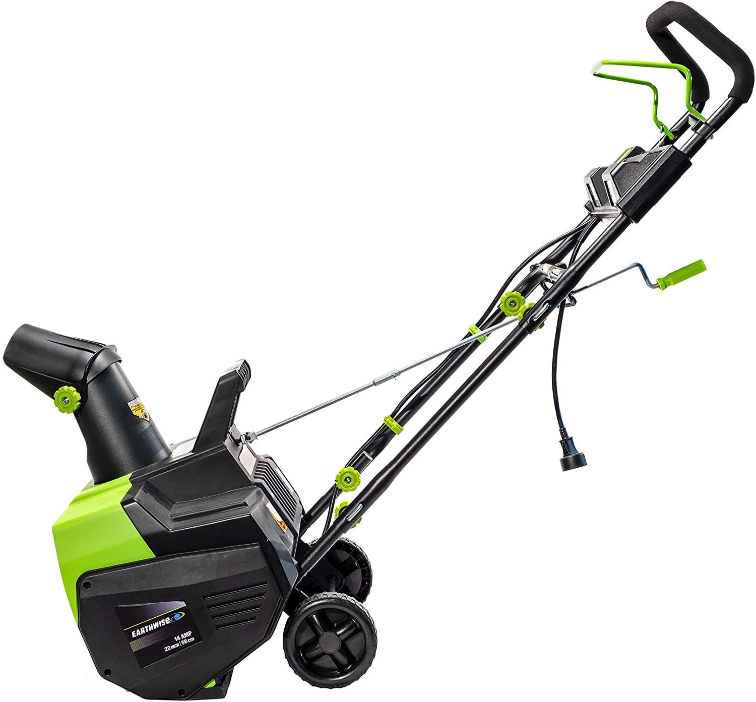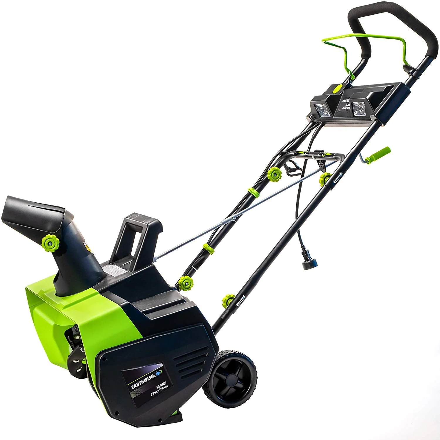 Earthwise SN71022 Snow Thrower is compact, electric and powerful enough to move up to 800 lbs. per minute! Save your back, save your time- this throws the snow fast and far, so you don't have to. A winter wonder features: 22" clearing path, 12" snow cut depth, up to 30' snow-throwing distance, up to 12' height. 1,670 sq. yd/hr workload. Front facing LED lights allows for snow removal during the night and early mornings. This electric-powered snow thrower avoids the hassles of a gas-powered one, resulting in a quiet-run and no gas fumes. Just plug its 17.5" cord into your own outdoor extension cord and go. Additionally features 180-degree snow chute, comfortable ergonomic handle design, and lift handle for easier moving. Superior auger with steel supports and natural rubber for smooth operation on uneven surfaces. Safefy features include safety button and switch bar for easy and safe operation. Take the stress and time out of getting out of the snow with this high performance snow thrower!