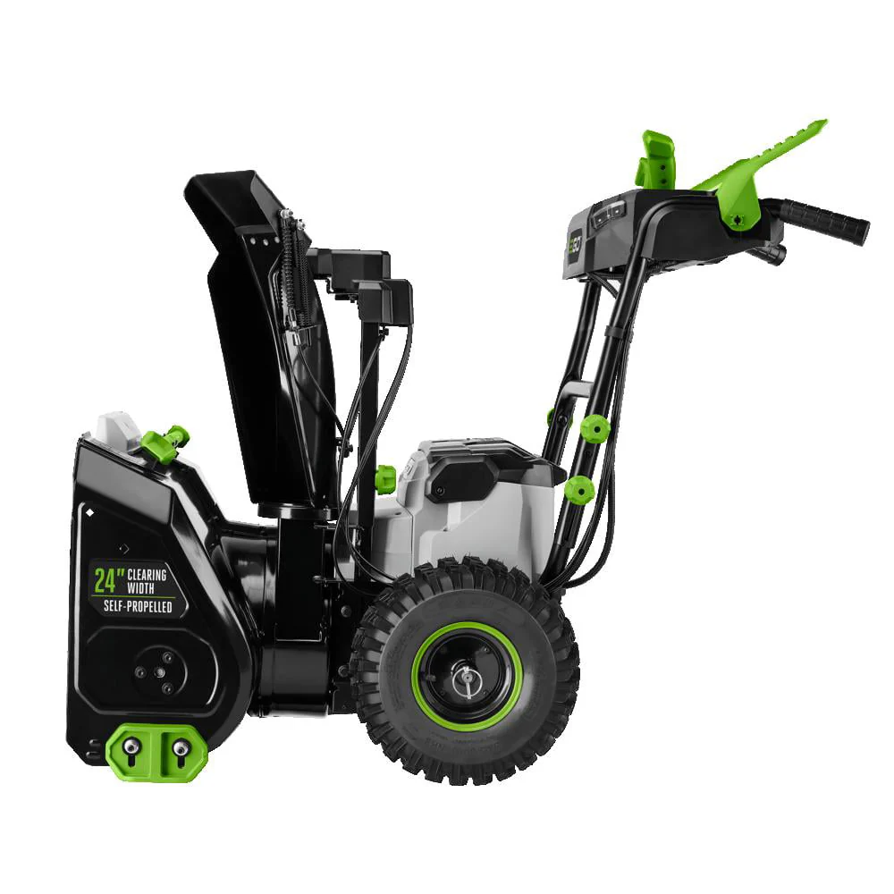The new EGO POWER+ 2-Stage Snow Blower is the only cordless 2-stage snowblower that delivers the power and performance of gas without the noise, fuss and fumes. Peak Power�?technology combines the power of any two EGO 56V ARC Lithium�?batteries (sold separately) to tackle the toughest snow conditions and what the snowplow leaves behind with ease. Get the job done quickly with the 24 in. clearing width and 20 in. intake height to handle even the deepest snow. 4 LED lights make it easy for use in early morning or evening. Variable speed auger and 200 degree chute direction give you complete control to throw snow where you need it, up to 50 ft. With Rugged construction and a high-efficiency brushless motor, it’s the industry’s first cordless 2-stage snow blower with the power and performance of gas without the noise, fuss and fumes. Batteries and charger sold separately.