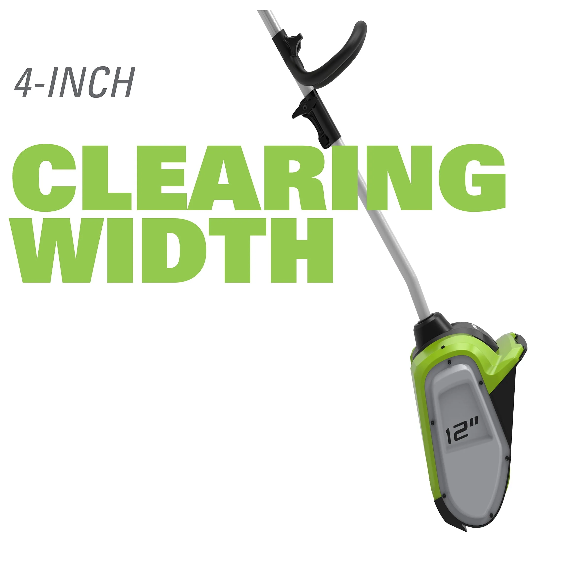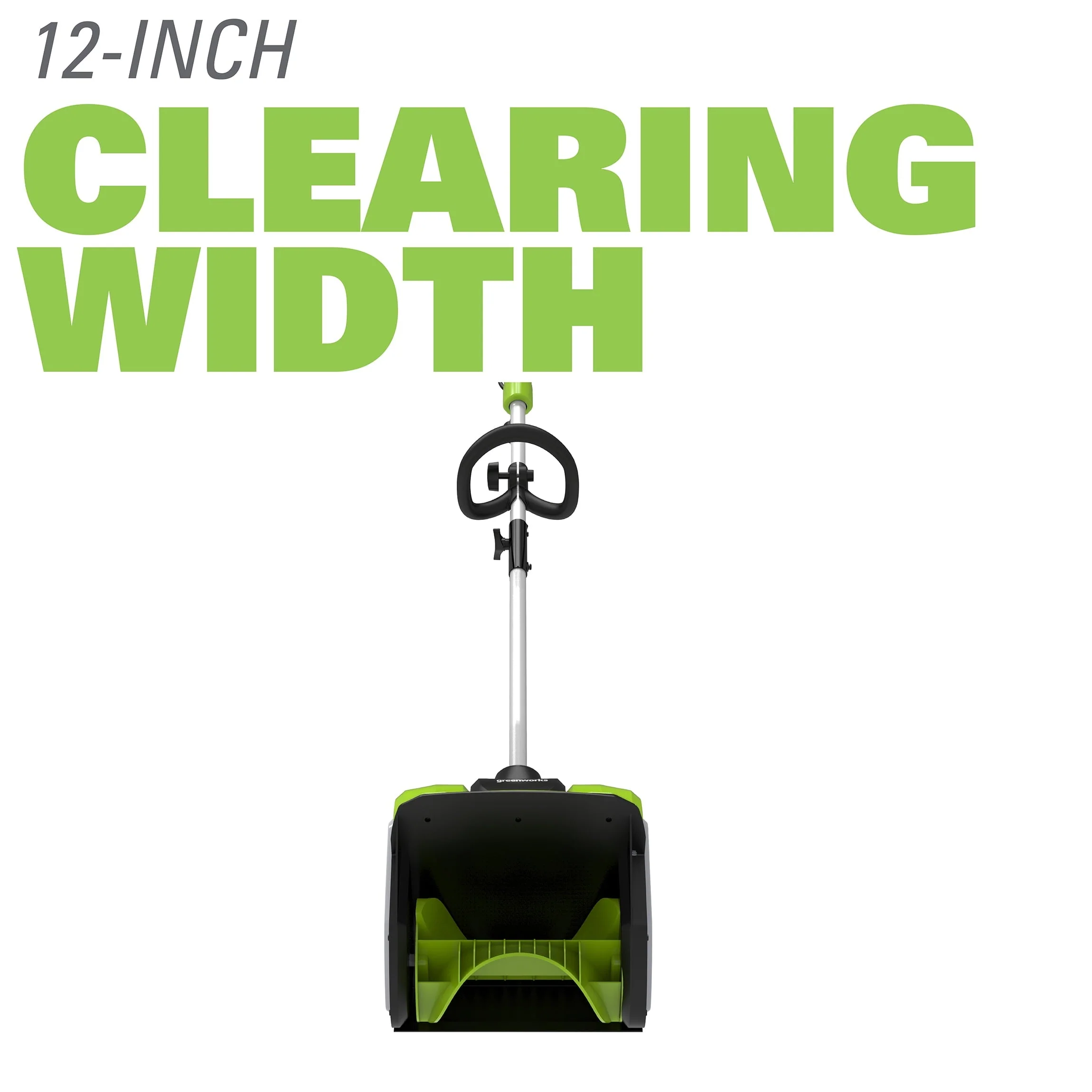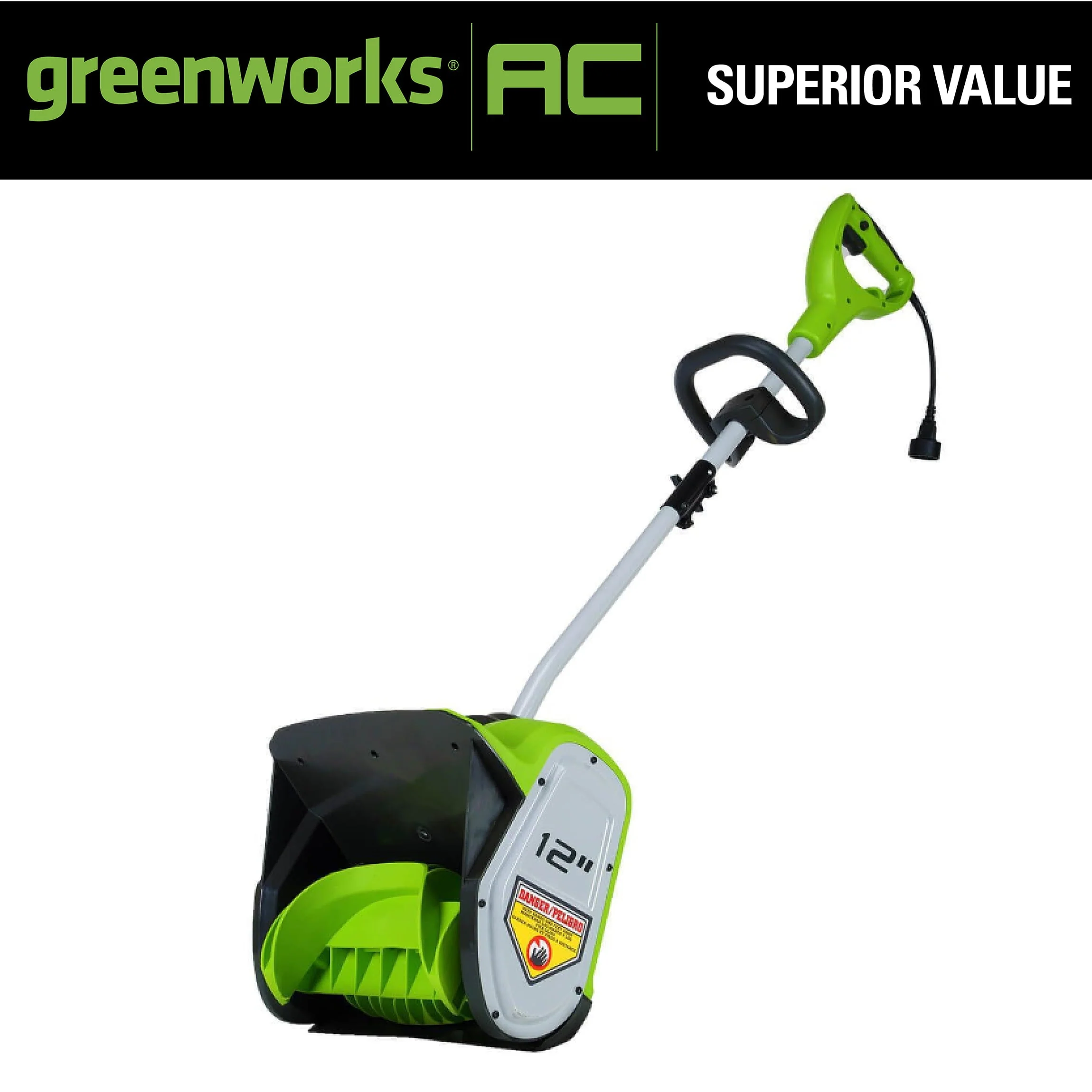 Combining innovation and functionality, the Greenworks 8 Amp 12-inch Corded Electric Snow Shovel provides an easy, convenient, and eco-friendly solution to get snow out of your way this winter. Lightweight and easy to maneuver, the 12-inch snow shovel powers through snow on the porch, patio, steps, sidewalk, and more. Simply plug-in and power-up. The ergonomic handle design eliminates the need to bend while the 2-blade paddle auger clears snow from your path and pavement, reducing the pain and strain of shoveling. Clear a path 12 inches wide by 4 inches deep in a single pass, while the durable scraper blade at the base of the unit lets you clear right to the ground without damaging your deck or driveway. And when the job is done easily store inside of a hall closet or hangs easily on the wall for quick, convenient access. The Greenworks Corded Electric Snow Shovel is backed by a 3-year warranty. Assembled product weight - 14.8 lbs.