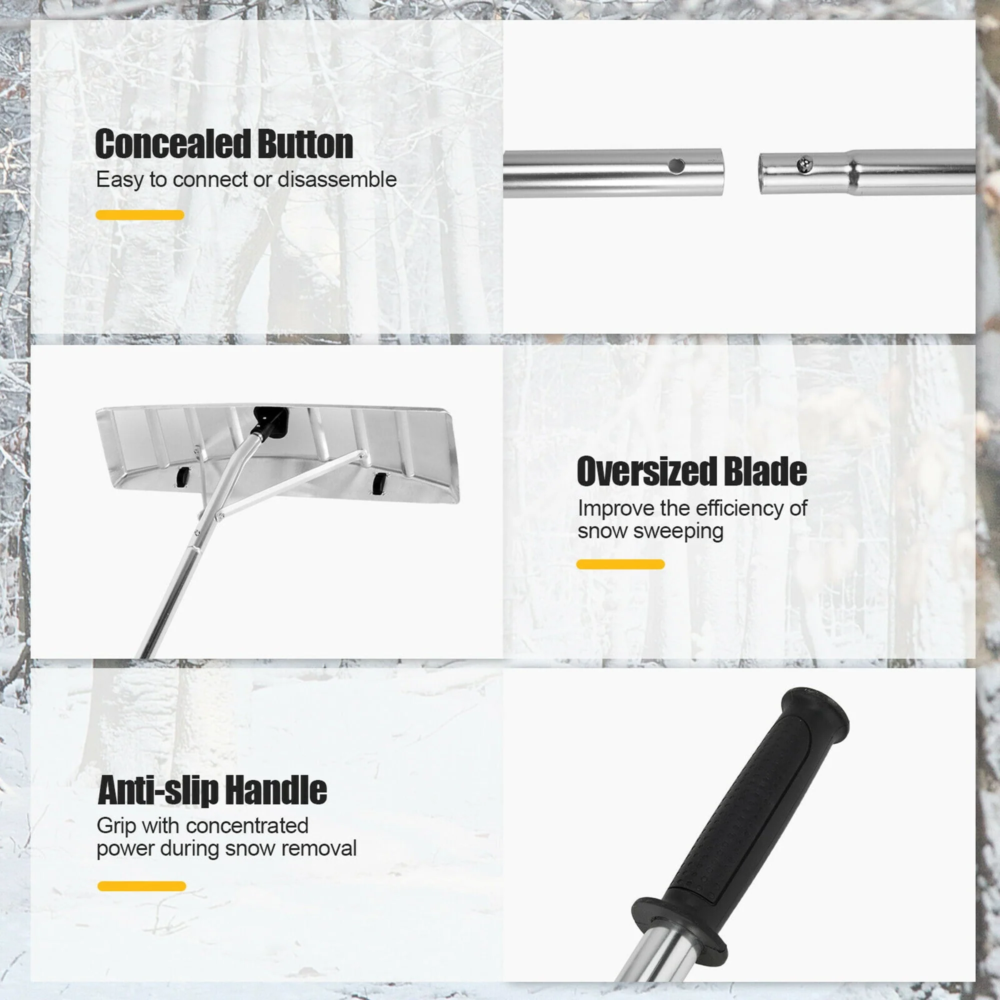 Anti-slip handle ensures firm grip during snow removal