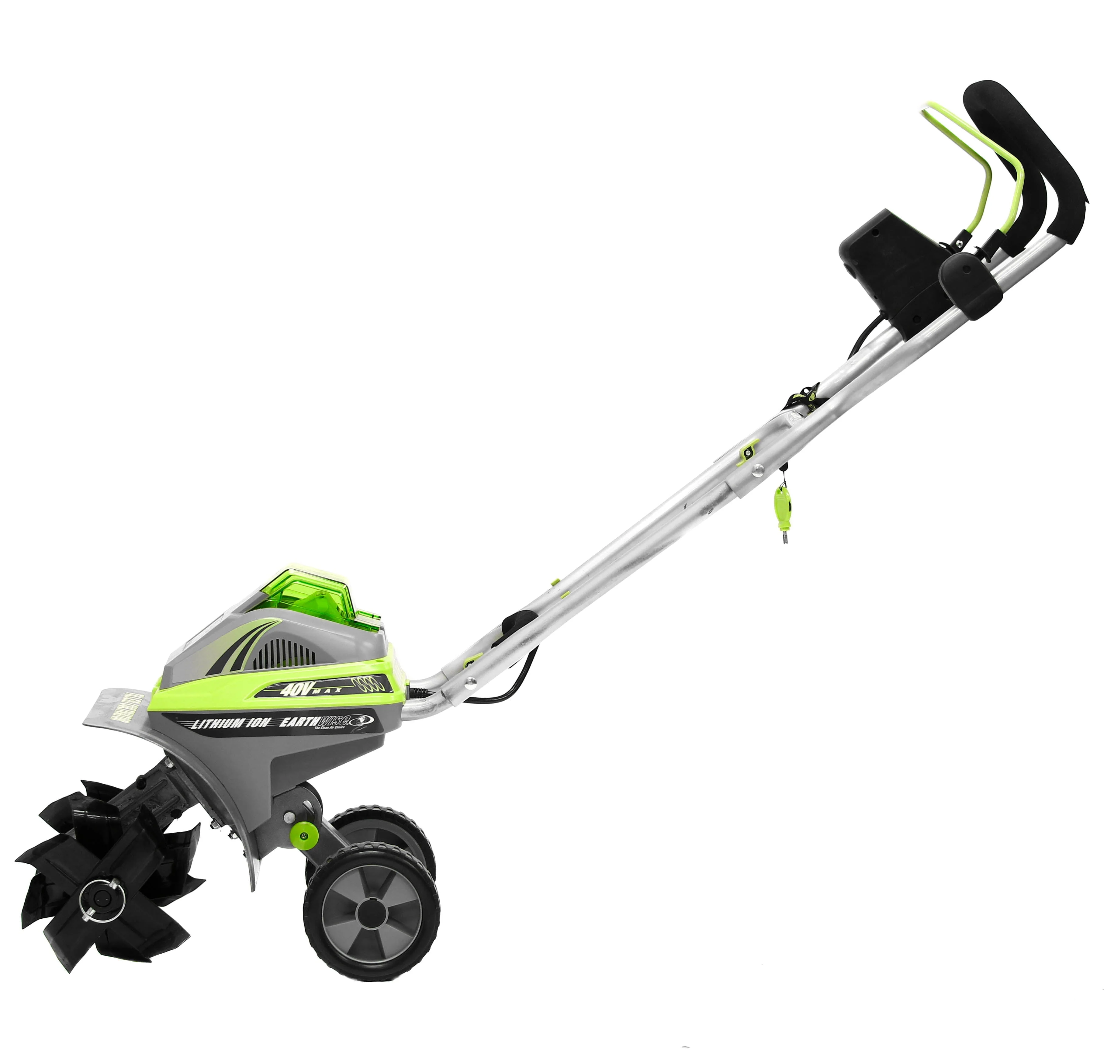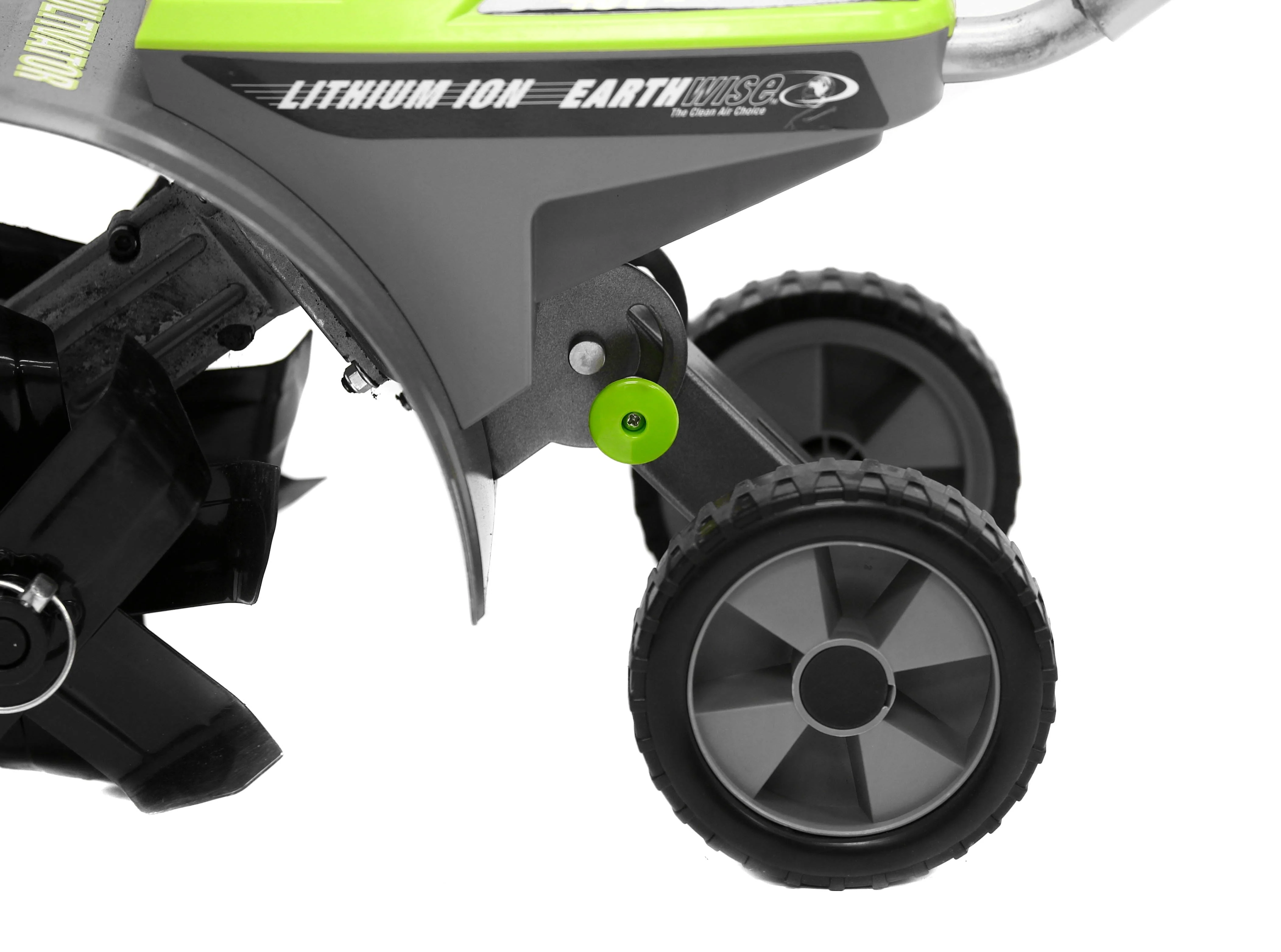 Convenient and easy to use, the cordless 40-Volt Earthwise tiller and cultivator means you can breath easy. No need for fuel expense or fumes; just charge the battery and go. The steel 8" tines and 11" tilling width mean the job will get done faster. A push button start, low vibration cushioned handle and easy flip-down transport wheels make it easy to use. (2) to (4) adjustable tines makes for adjustable tilling width of 7"-11". and tilling depth of 8". No gas, no fumes, Earthwise is the clean air choice.