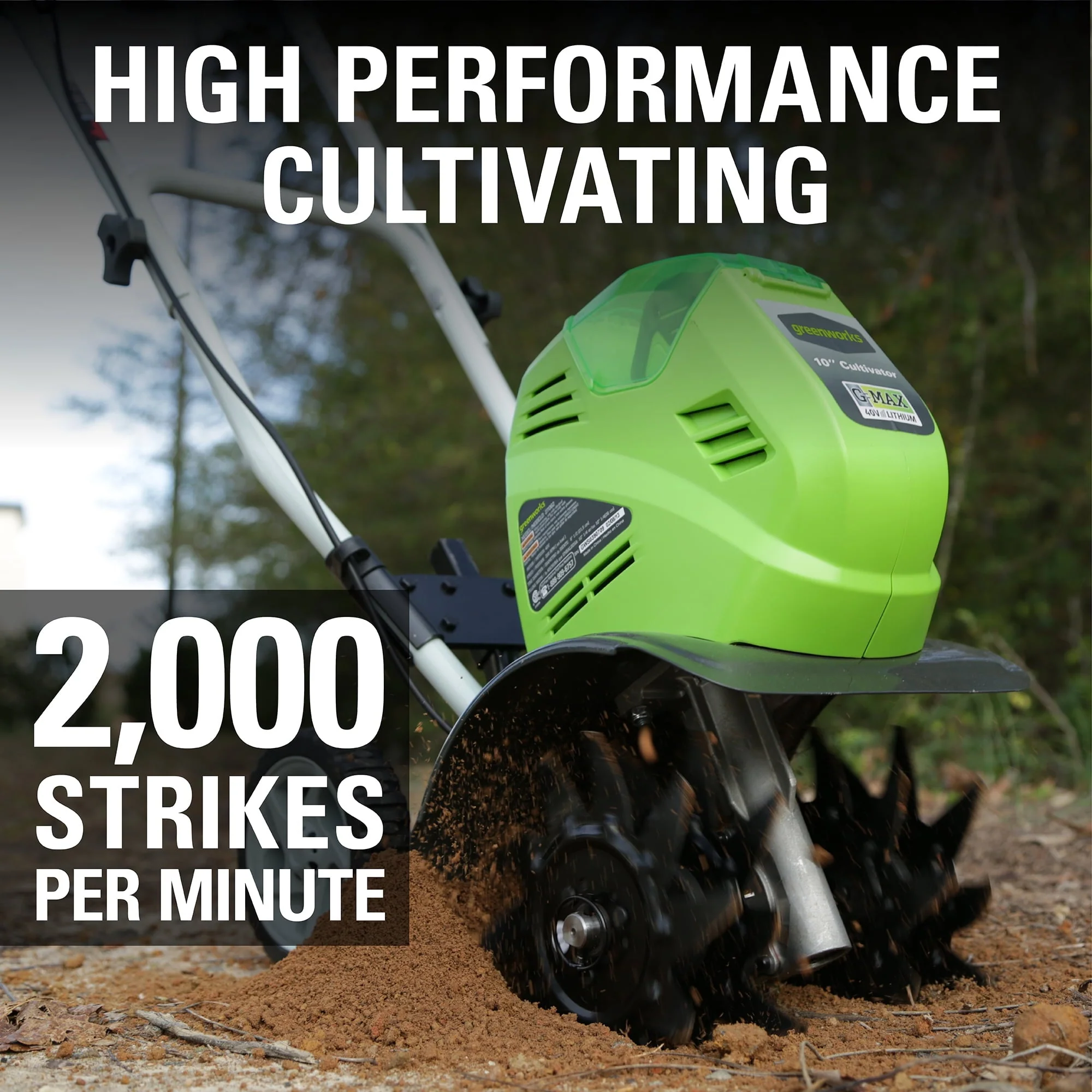 • Greenworks 40V 10 - Inch Cordless Cultivator/Tiller with 40 Ah Battery and Charger, 27062