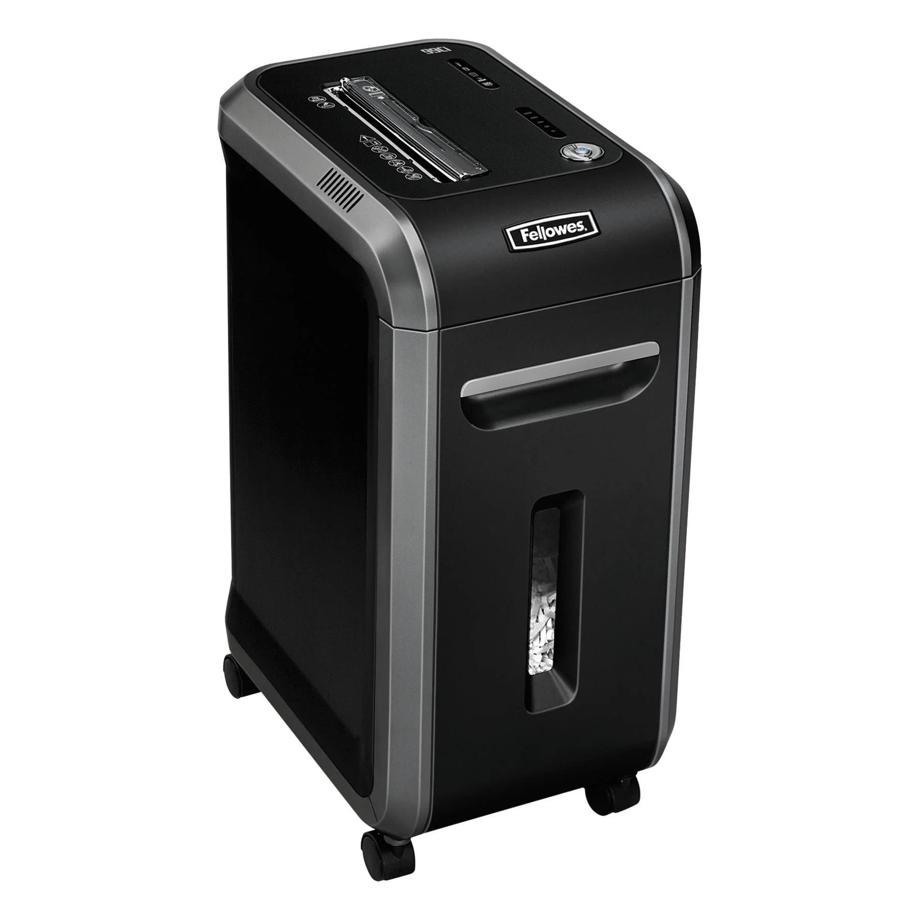 The Fellowes Powershred 99Ci Cross-Cut Shredder can shred up to 18 sheets of paper per pass into 397 (5/32??x 1-1/2??Security Level P-4) cross-cut particles. This machine also safely shreds CDs/DVDs, credit cards, staples, paper clips and junk mail. Achieve hassle-free shredding with all of the features the 99Ci has to offer. Get three levels of advanced jam prevention with Fellowes 100% Jam Proof System which eliminates paper jams, powers through tough jobs and maximizes productivity. To protect more than your identity, the patented Safe Sense? Technology is designed with an electronic safety sensor that surrounds the paper entry and automatically disables the shredder when hands touch the paper opening. Also, the 99Ci��s Silent Shred Technology and Energy Savings System allow this machine to integrate easily to any environment. With the ability to shred for up to 30 minutes before a cool down period is needed, the 99Ci is ideal for shared use and includes a 9-gallon pull-out bin. Backed by a worry-free 2-year product and service warranty plus lifetime cutter warranty. 25.2" H x 11.4" W x 17.3" D.