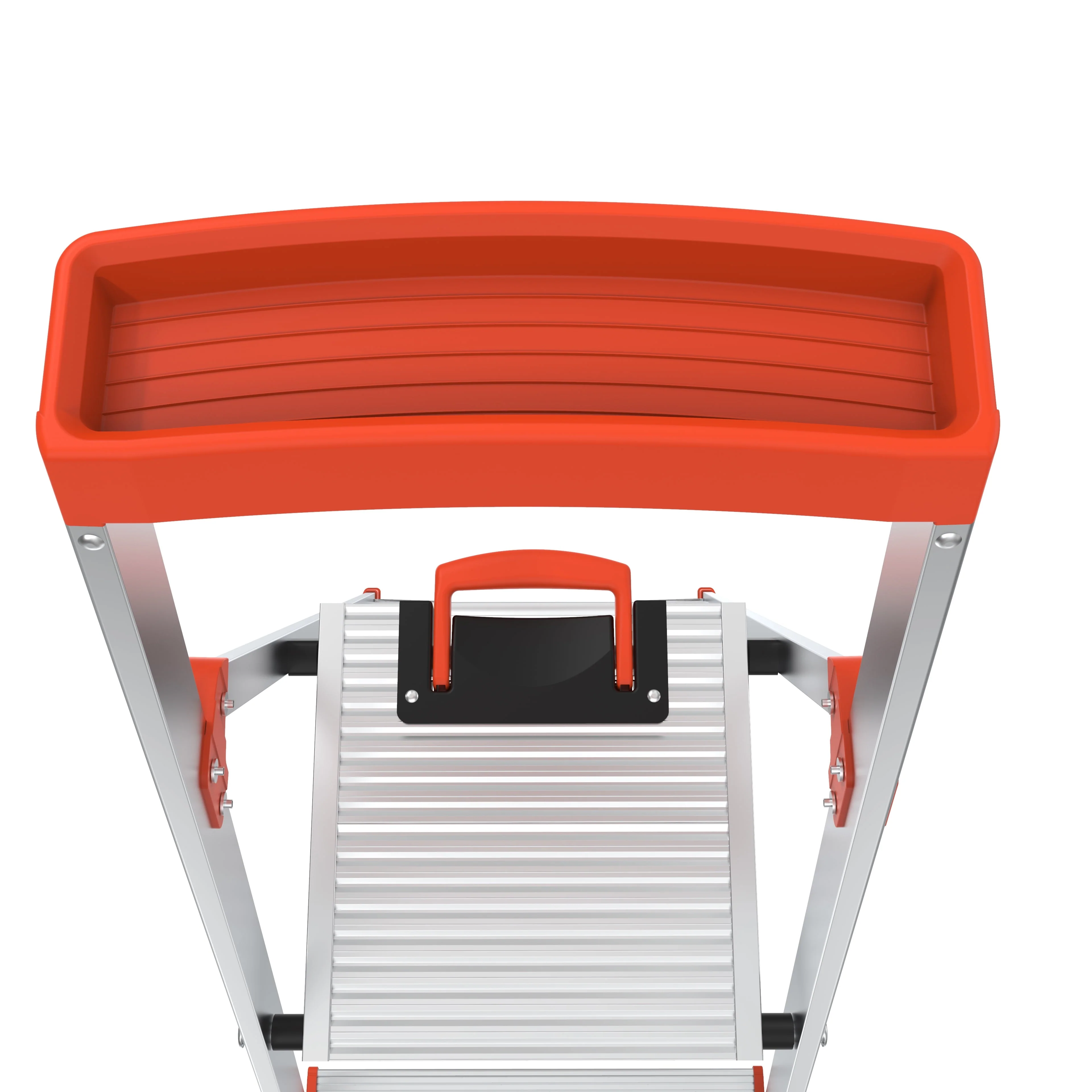 Minimize the typical sense of vertigo associated with climbing on a ladder by using the safety handrail. With its convenient top cap, you can set your tools down and keep them close at hand.
