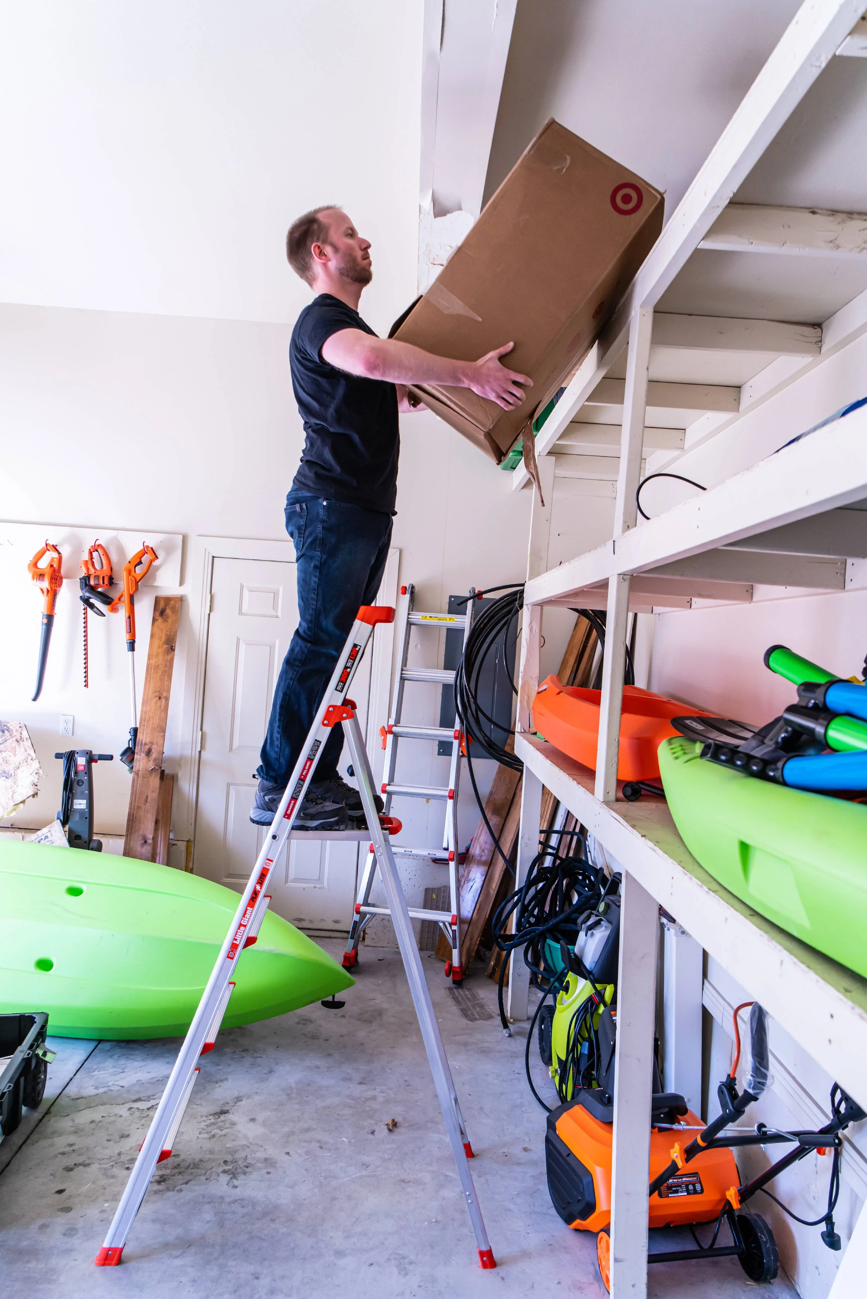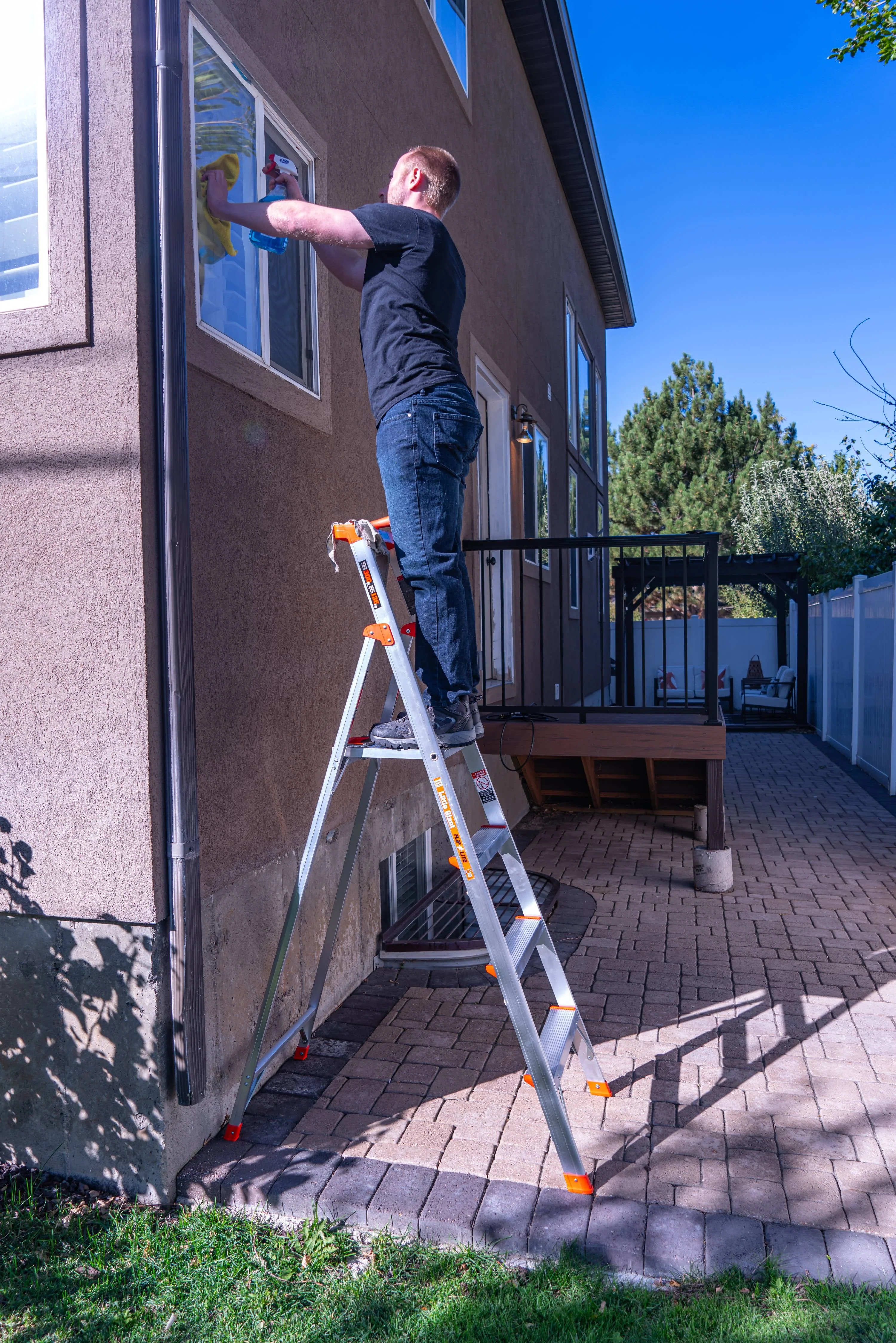 As you climb your Flip-N-Lite, you will notice the extra-wide rungs with treads to prevent foot fatigue. Upon reaching the top of the ladder, you can stand on the square standing platform, which reduces dangerous falls and is comfortable to stand on for extended periods while working.