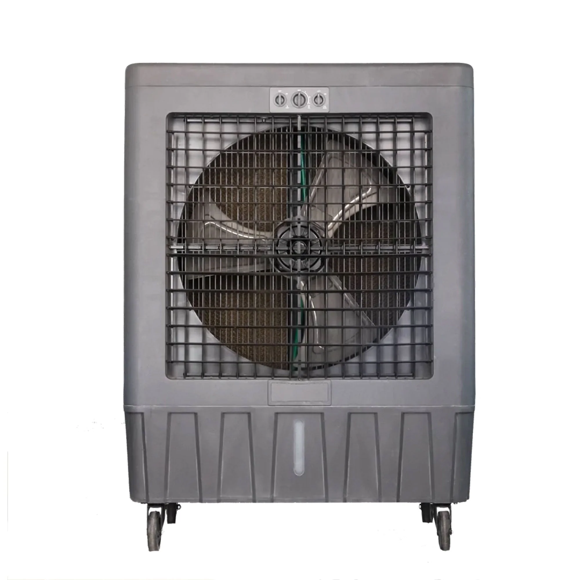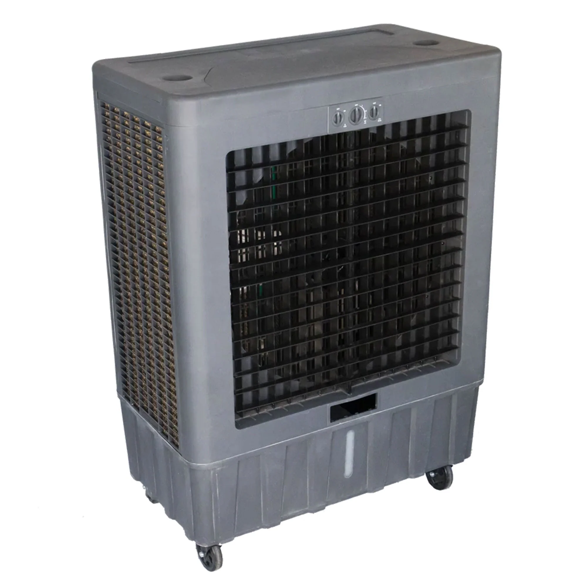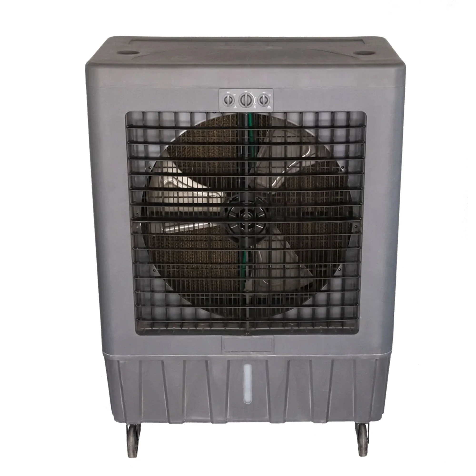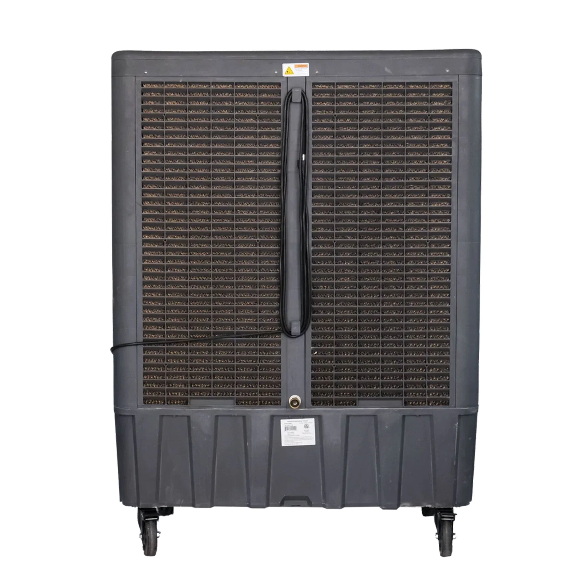 Designed to cool areas up to 3,000 square feet, with a fan that draws air in and circulates it back out at a rate of 14,000 cubic square feet per minute. This portable swamp cooler has a 32.8-gallon water reservoir you can fill through the cooler's manual fill or with your garden hose connected to the hose adapter. Equipped with 4 fan-speed settings, a manual pump switch, and an air oscillation switch, you'll get the custom cooling experience you need. The lightweight design, easy-controlled wheels, and carrying handle make this cooler the ideal device for you.