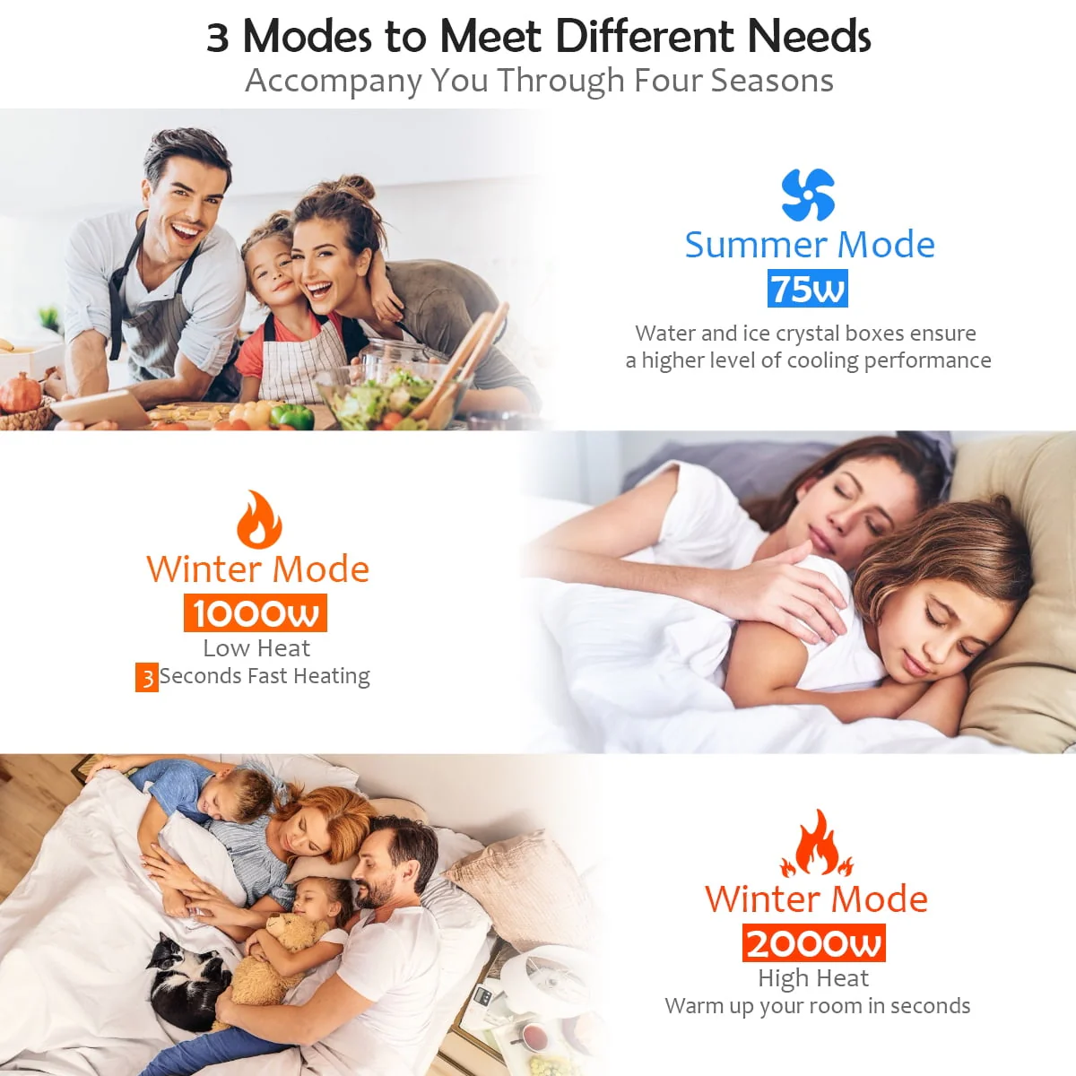 Heating mode power : 2000W(High)/ 1000W(Low)
