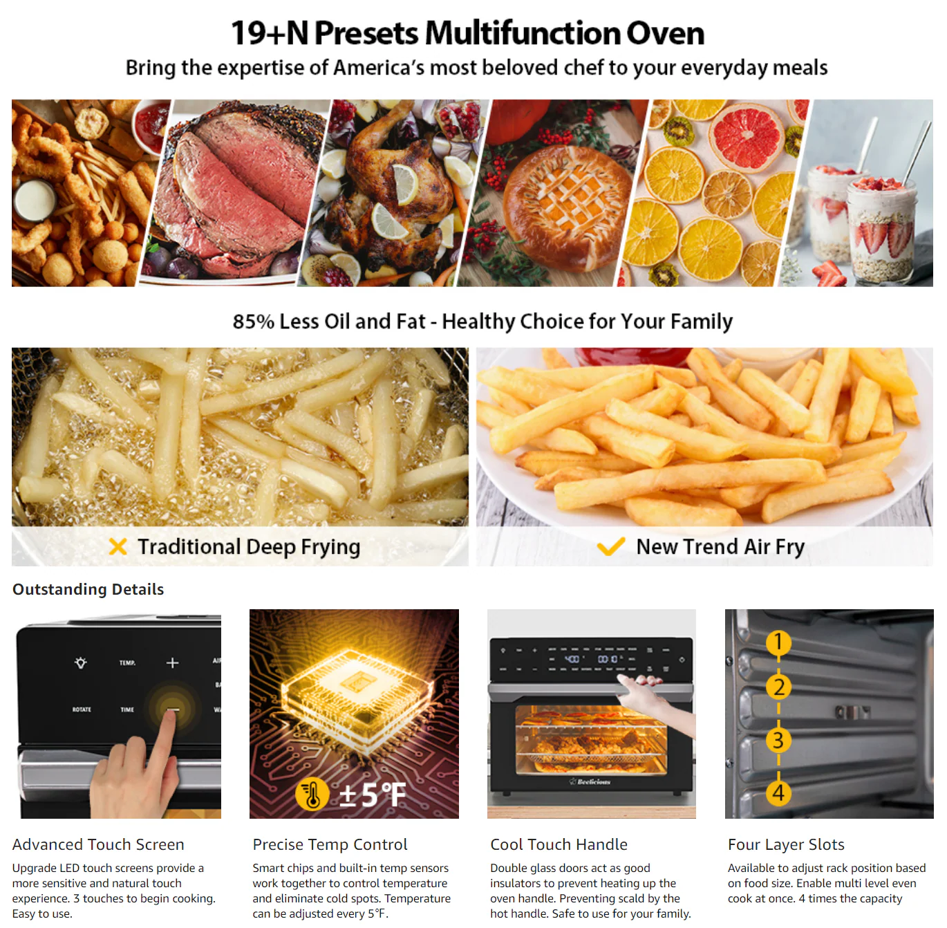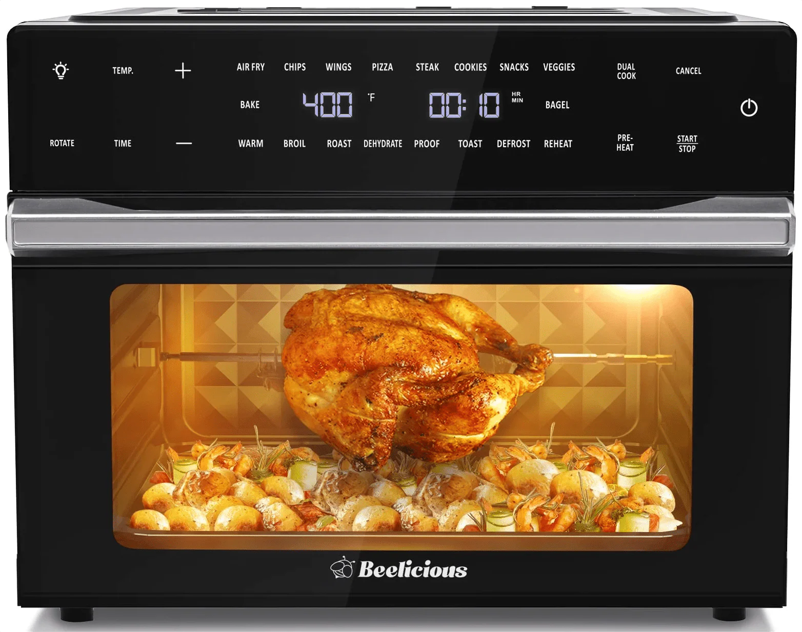Beelicious? 32QT Extra Large Air Fryer Toaster Ovens Pro, with Rotisserie and Dehydrator, Smart Digital Toaster Oven Air Fryer Combo, Digital Countertop Convection Oven, 6 Accessories, 1800w, Black