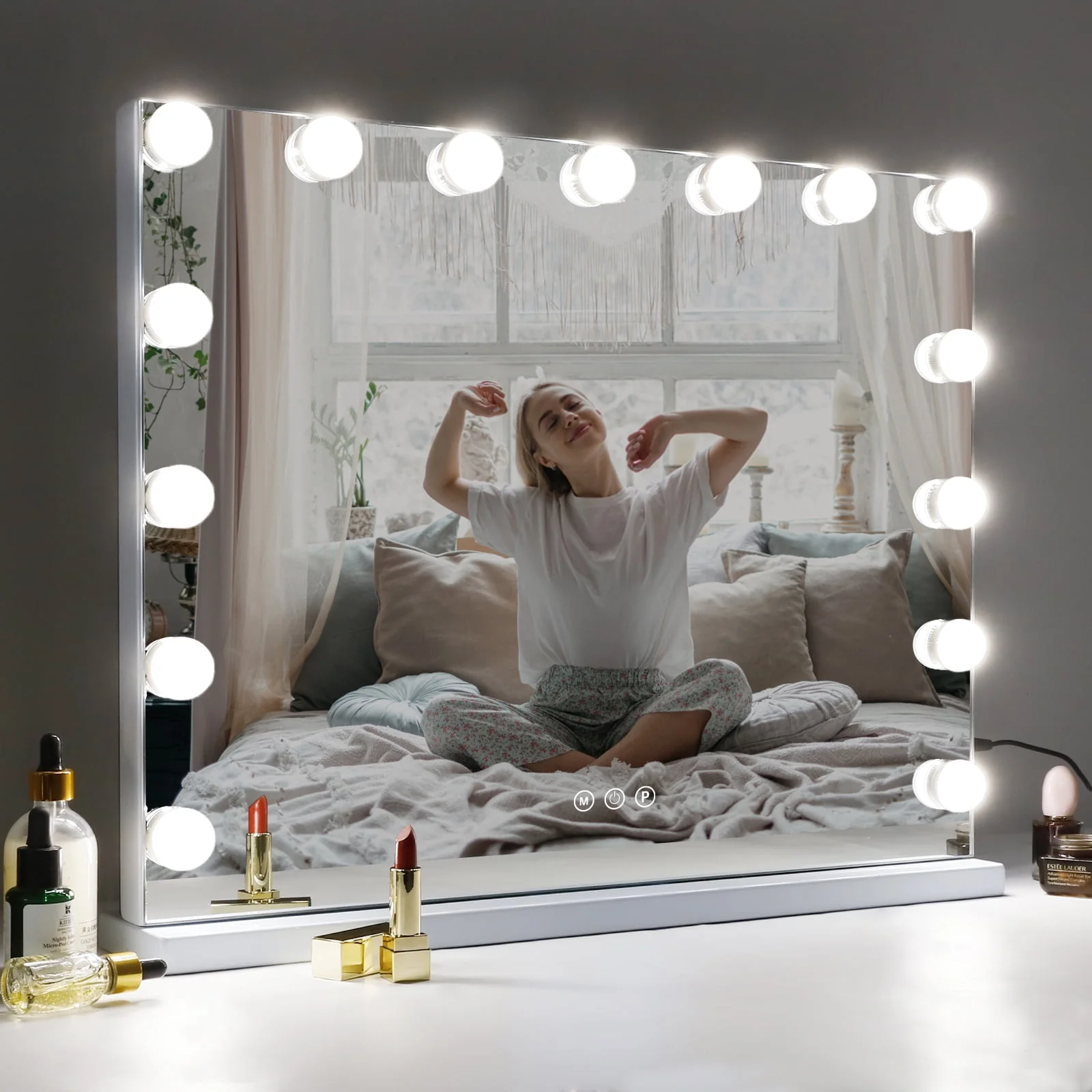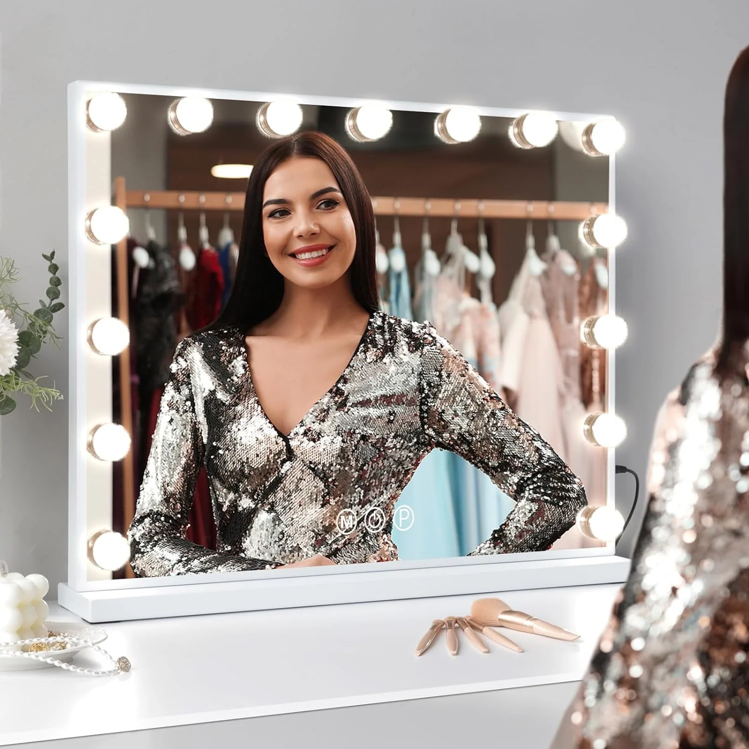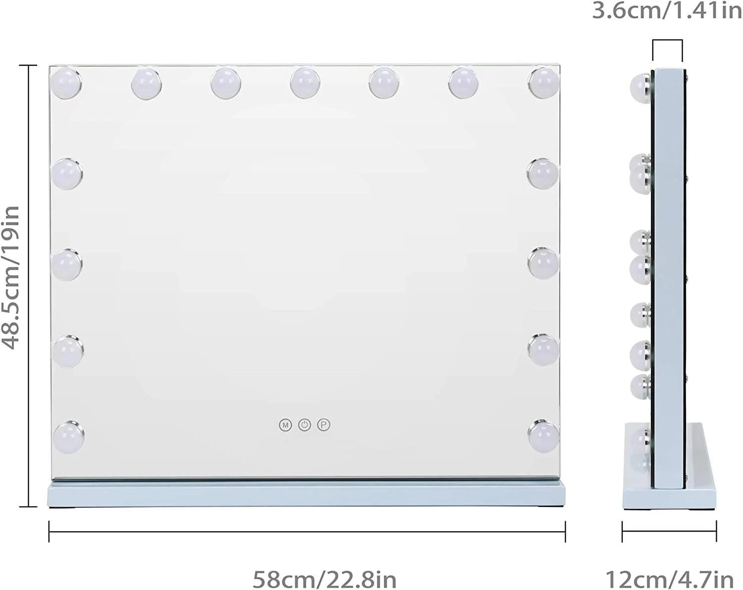 COOLJEEN Large Hollywood Vanity Mirror has 15 energy-saving bulbs. The surface of the bulbs won't get hot even after a long term use. and they are designed to be able to switch between 3 color modes(cool, natural and warm). the brightness is adjustable, too. We can use this White Lighted Makeup Mirror to simulate the lighting environment of various social occasions and find the most suitable makeup.