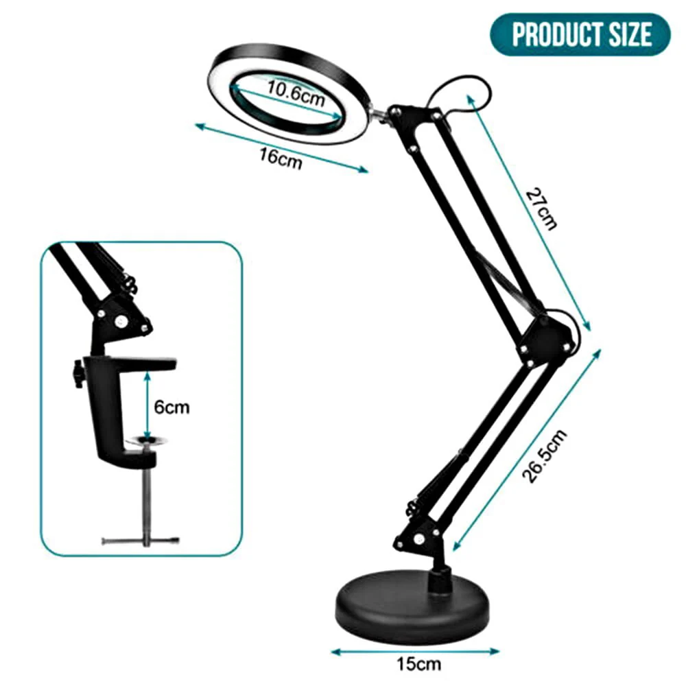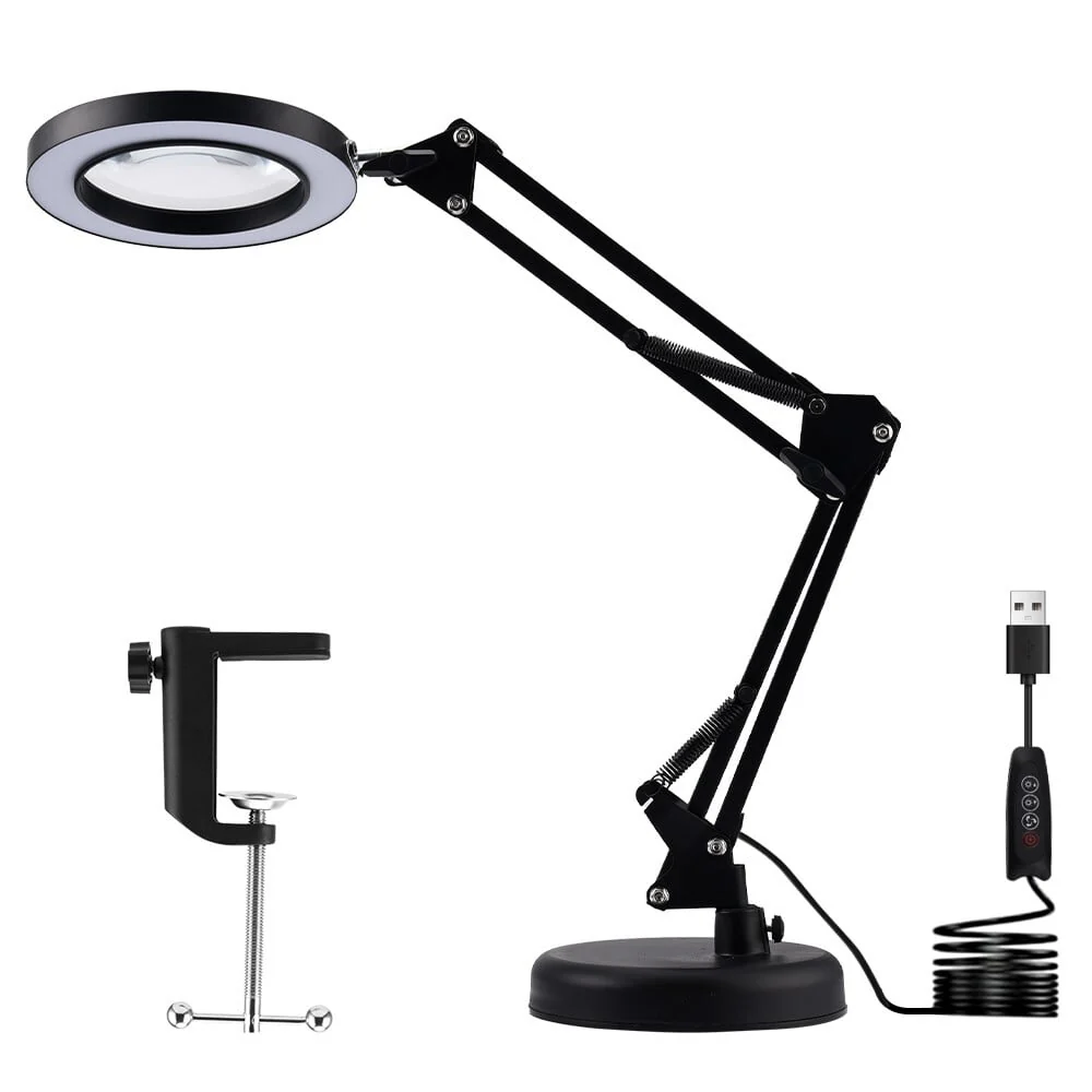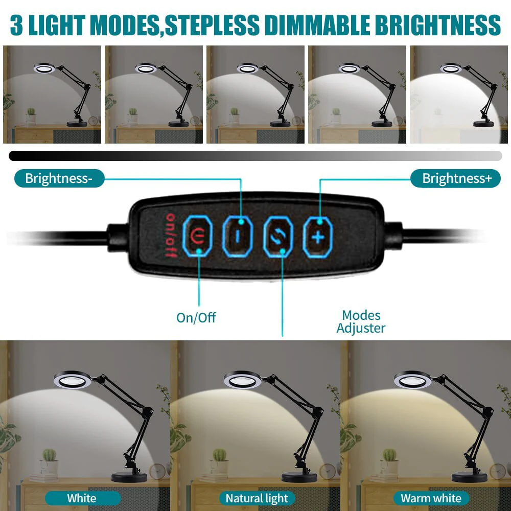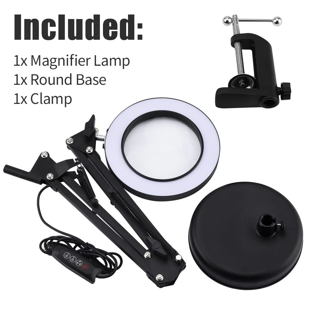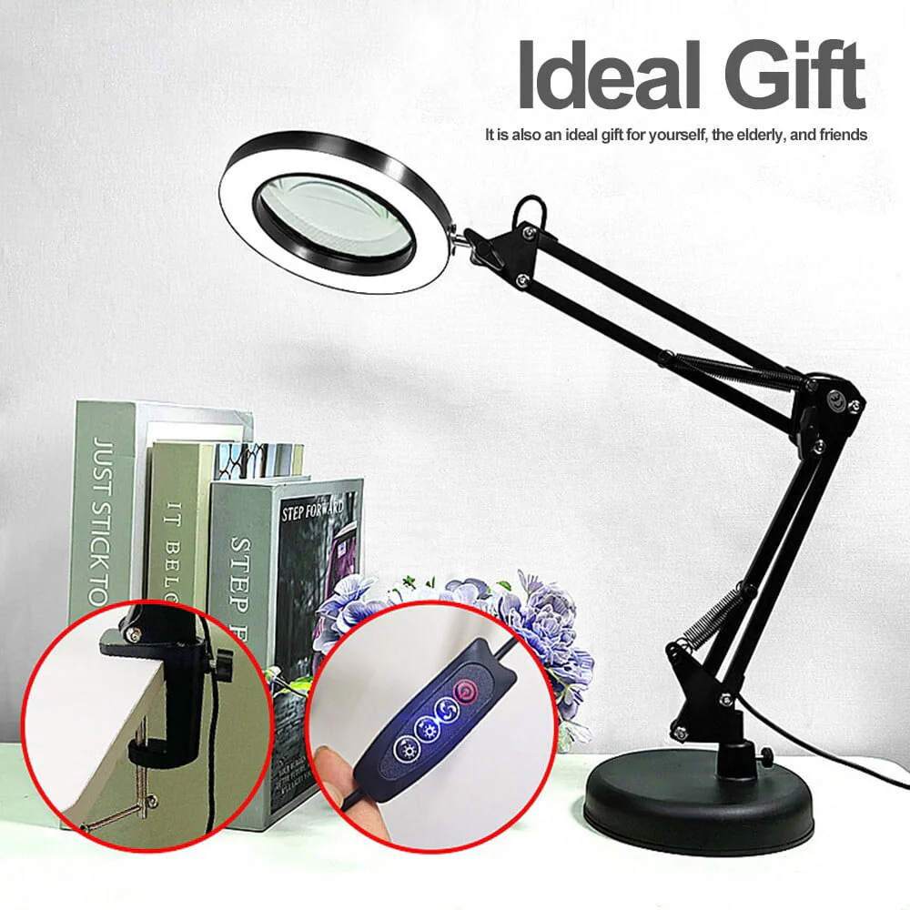 2-IN-1 Desk & Clamp Lamp: This magnifying lamp comes with a base and a metal clip, you can use it as a desk lamp or a clamp, it can be easily installed without any tools.