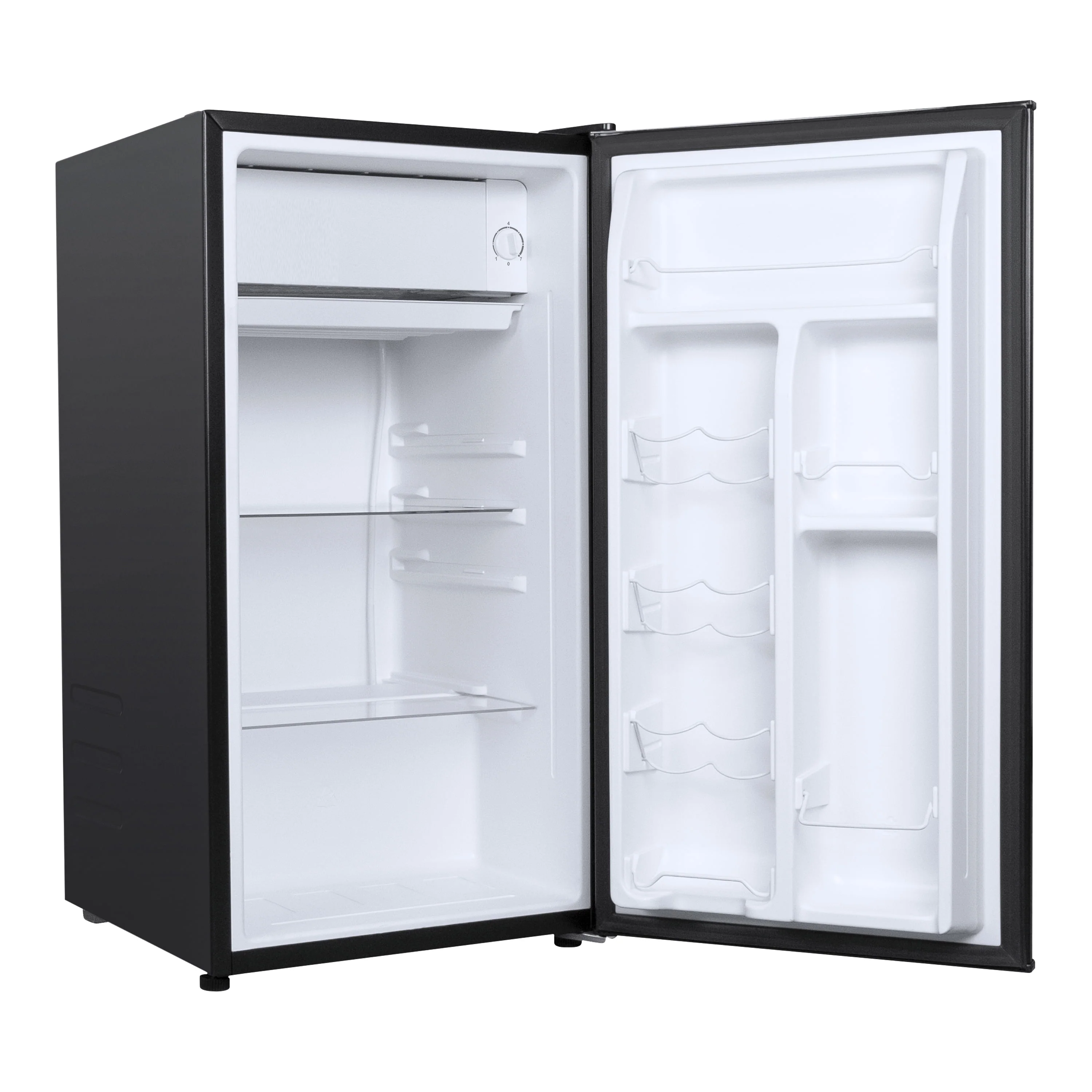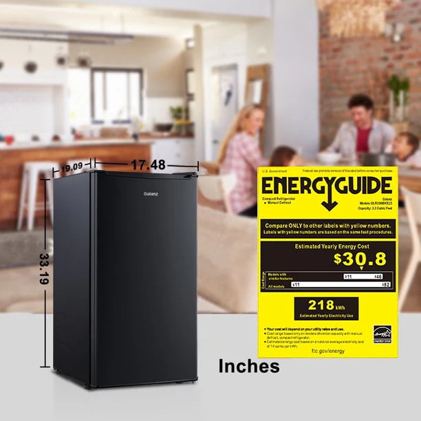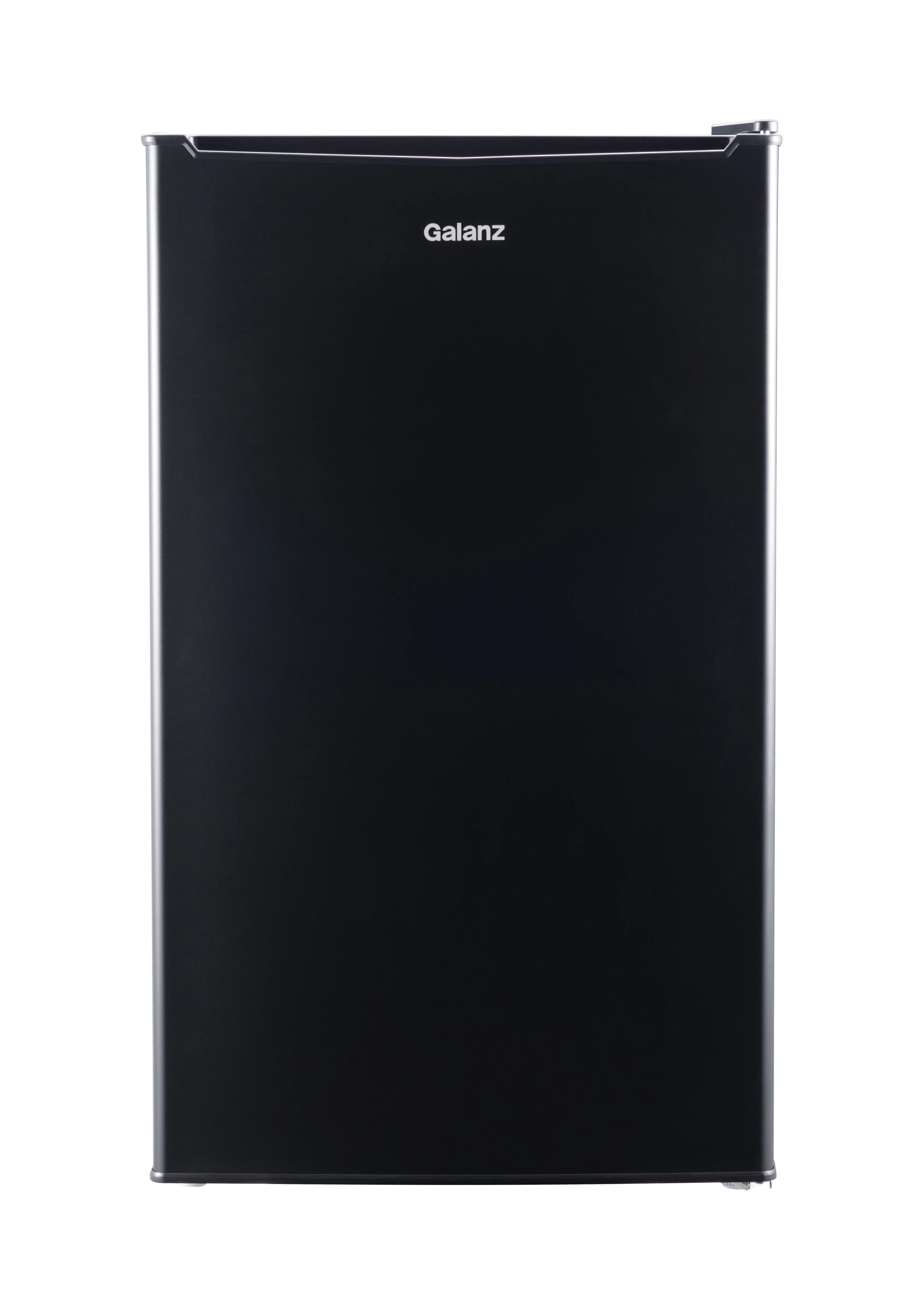Enjoy the convenience of having your favorite chilled food, drinks, or snacks whenever you want with the Galanz 3.3 Cu ft One Door Mini Fridge in Black. The Galanz 3.3 Cu ft Black One Door mini fridge is the ideal size for the dorm room, game room, exercise room, office, garage, bedroom, or any other living space. This Galanz 3.3 cu ft Black One Door mini fridge features a full-width freezer compartment, 2 adjustable leveling legs and a convenient reversible door that allows you to choose to open from the left or right side making the Galanz 3.3 Cu ft One Door mini fridge suitable for any layout. Condition: New.