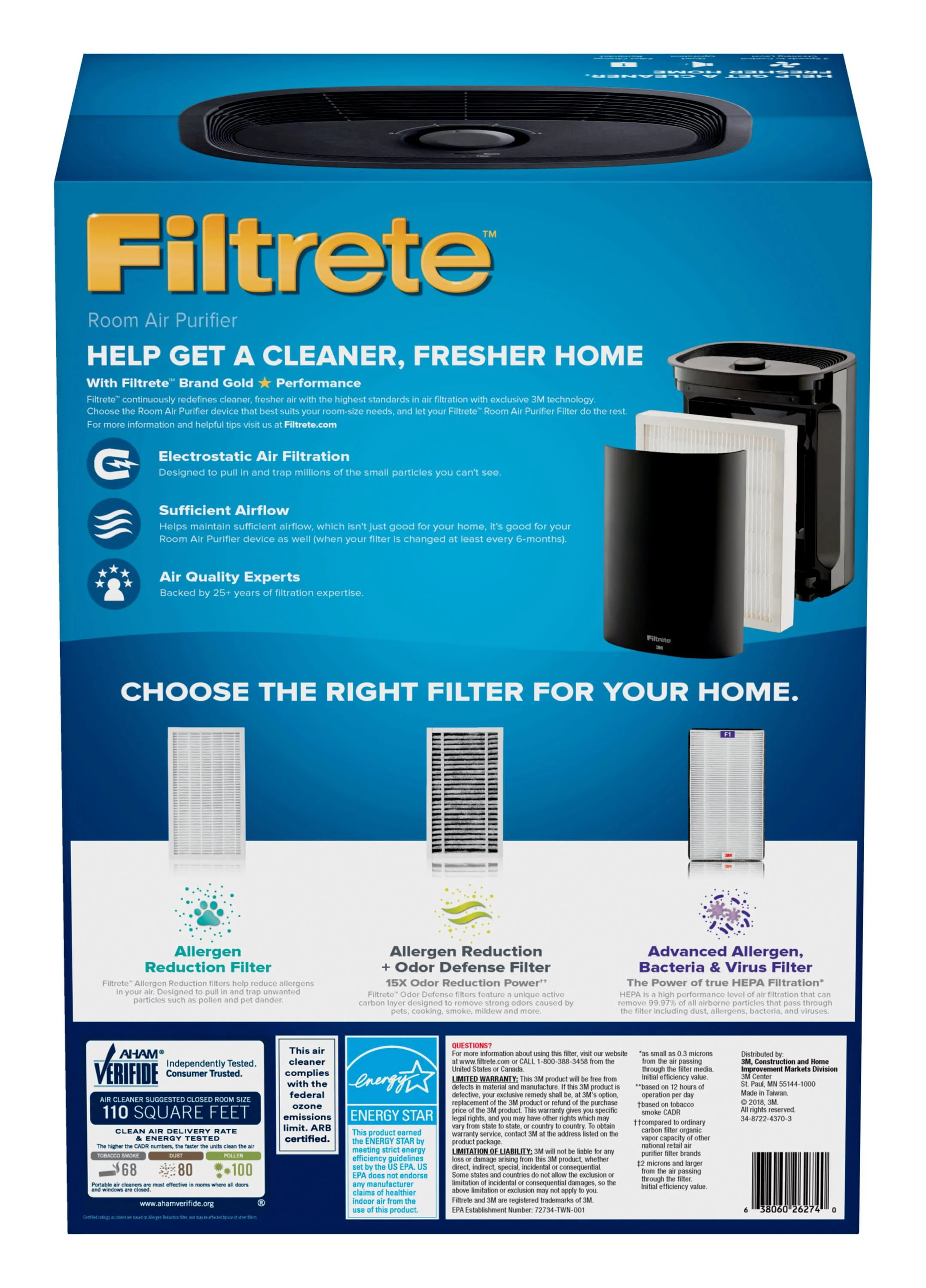 Take an extra step to help improve your indoor air with the Filtrete�?Room Air Purifier device and filter. This air purifier is ENERGY STAR® certified and great for small spaces. Plus, it comes with a Filtrete�?Allergen Reduction Filter to help capture millions of small particles you can’t see*, such as mold spores, pollen and pet dander. (*Disclaimer: as small as 0.3 microns, from the air passing through the filter media. Initial efficiency value.)🔥Today's Deal