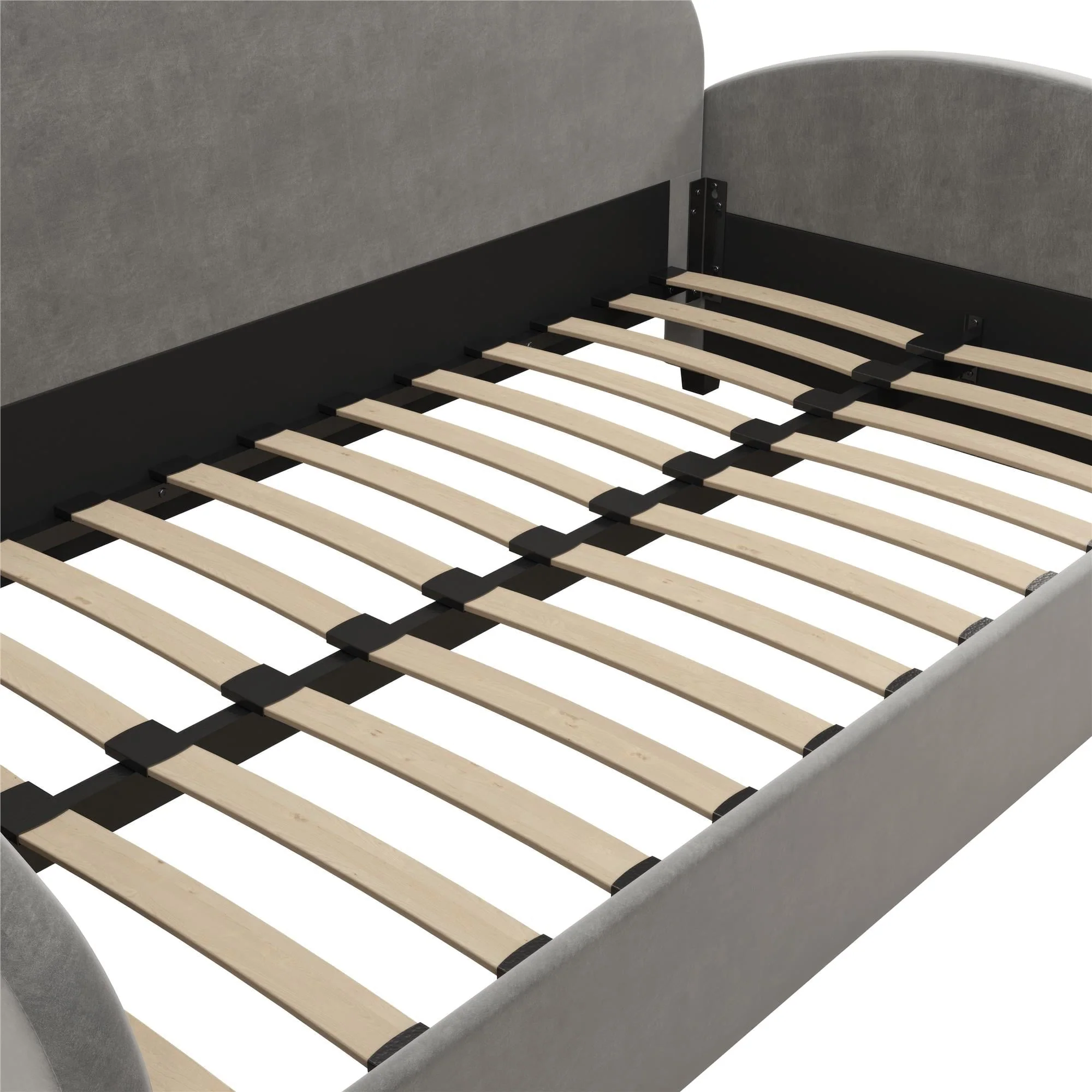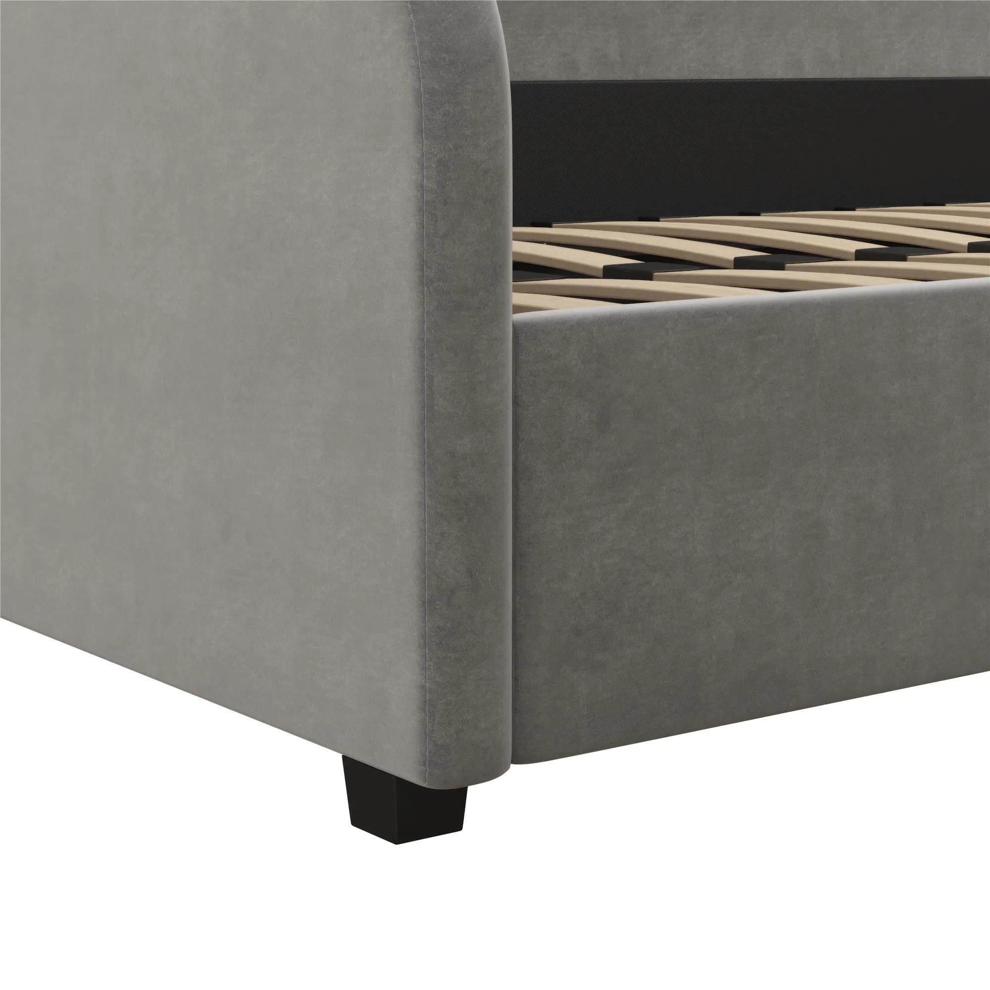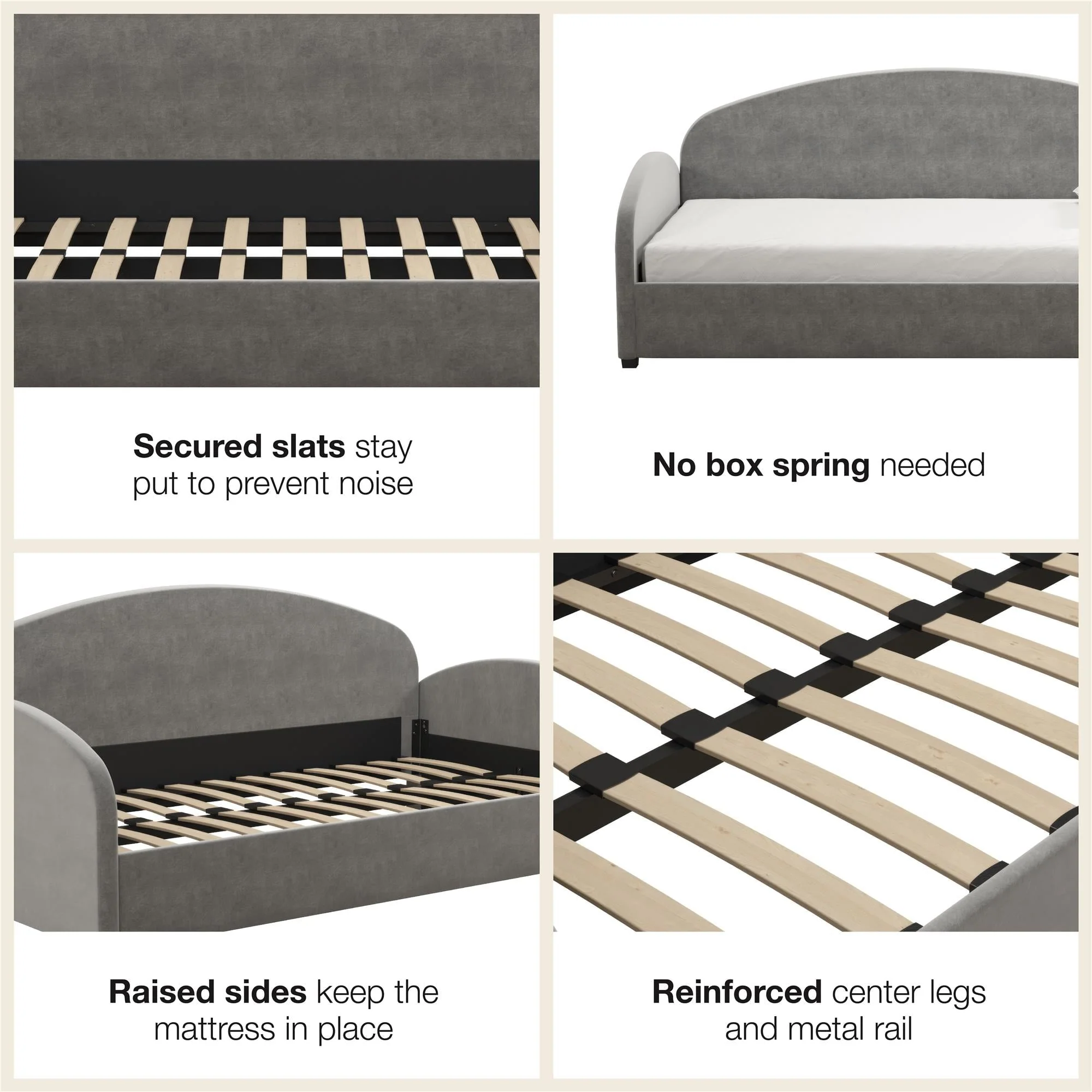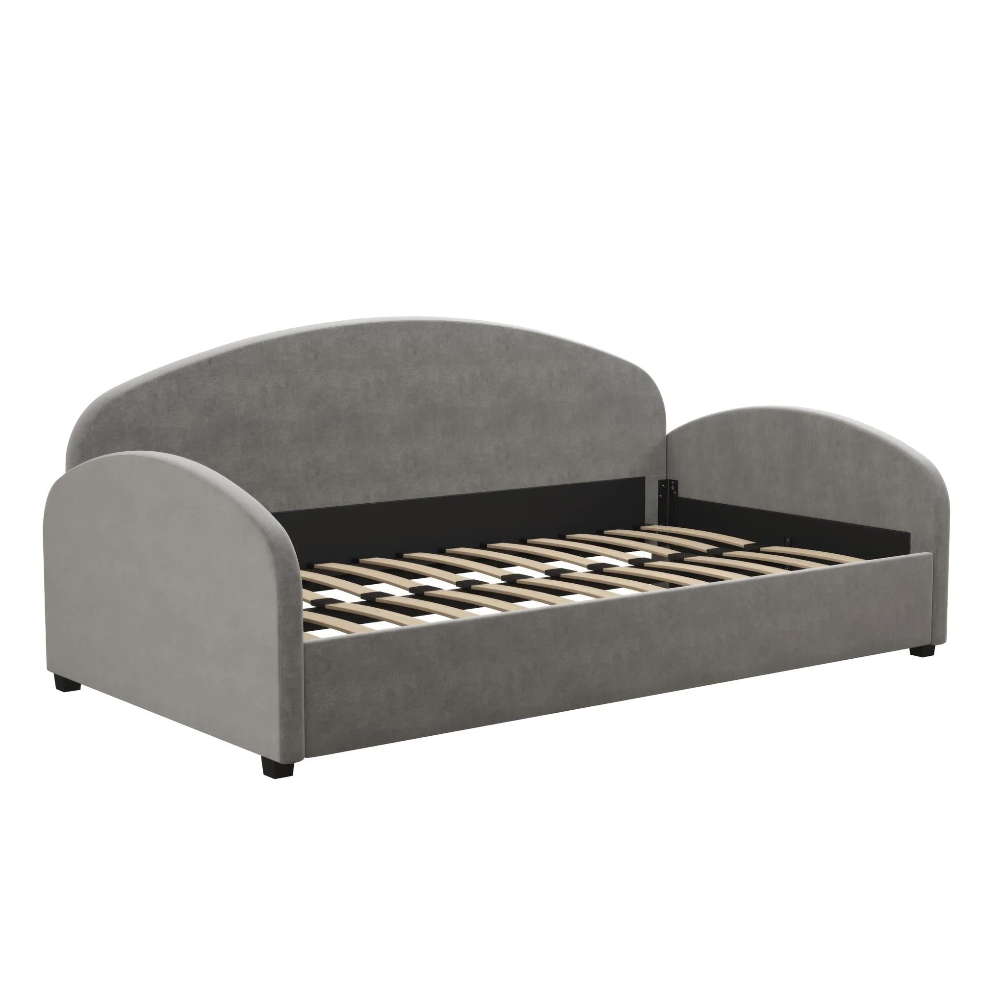 A dreamy and unique half-moon silhouette couch by day and a cozy bed by night, The Mr. Kate Moon Upholstered Daybed was designed to provide a beautiful and helpful solution to your multi-functional living spaces. Perfect for a small bedroom, living room or a spare bedroom, this soft Daybed with cushioned armrests smartly opens up your space and gives you and your guests a comfortable spot to take a seat or call it a night on, all while reaching for the stars with its creative design. Its strong frame combines both wood and metal construction elements with the use of sturdy bentwood slats and steel front, rear, and center rails for extra support. Against the backdrop of some framed artwork or an accent wall covered in vibrant multicolored wallpaper, lift the Moon to new heights and curate your own modern, free-spirited retreat--your home, your rules!