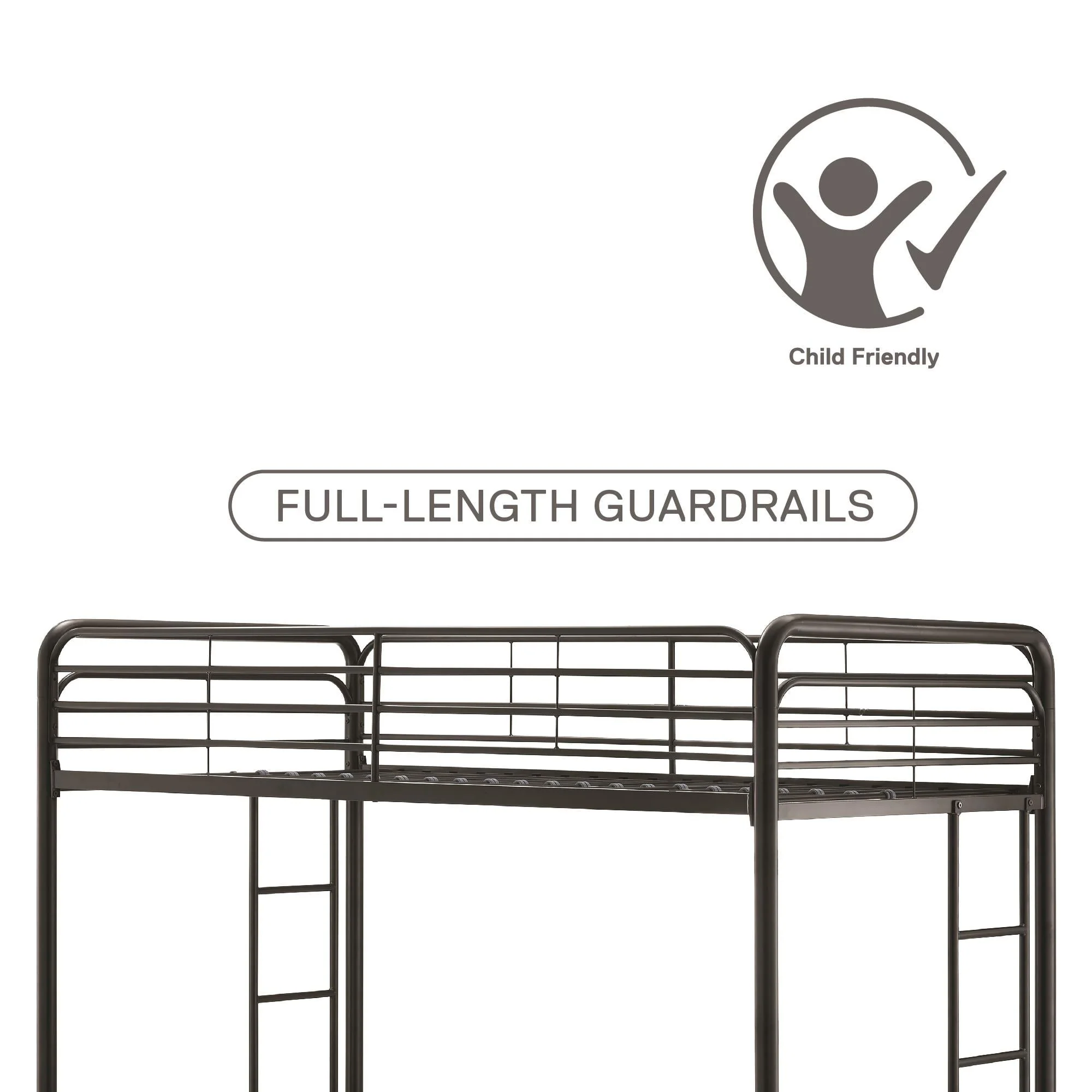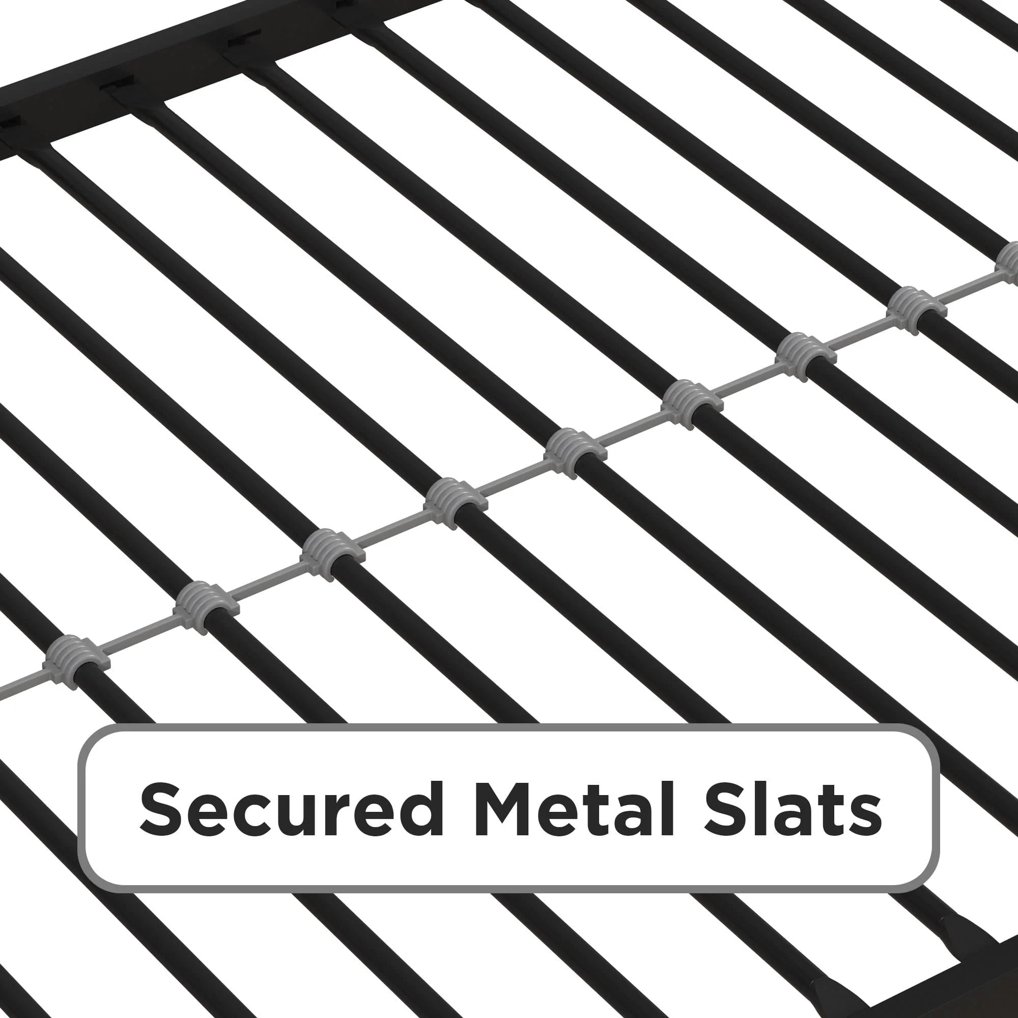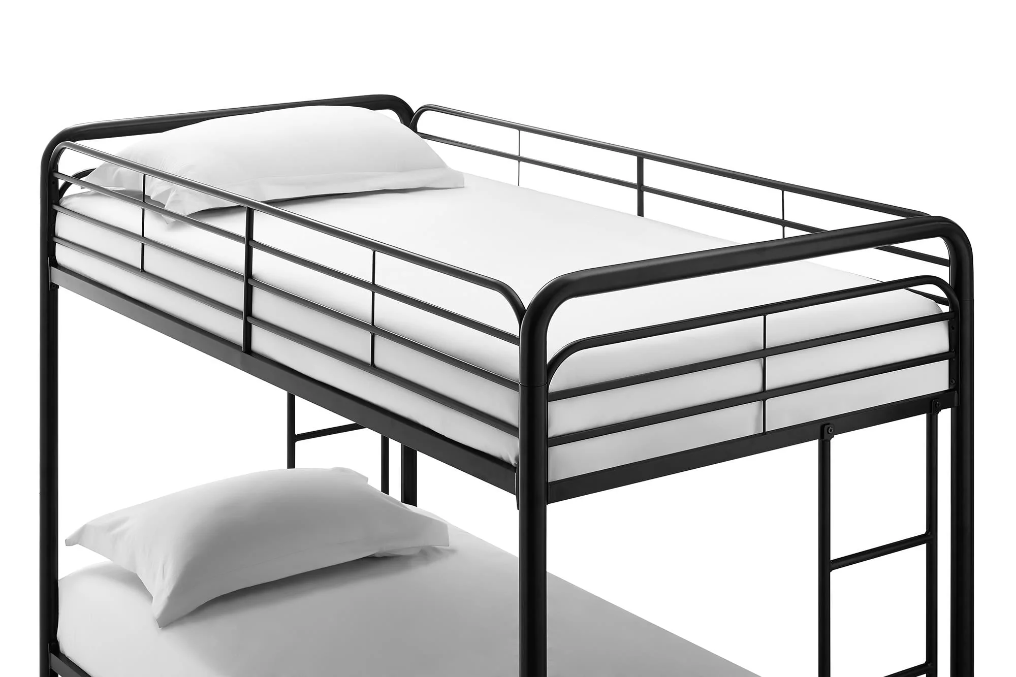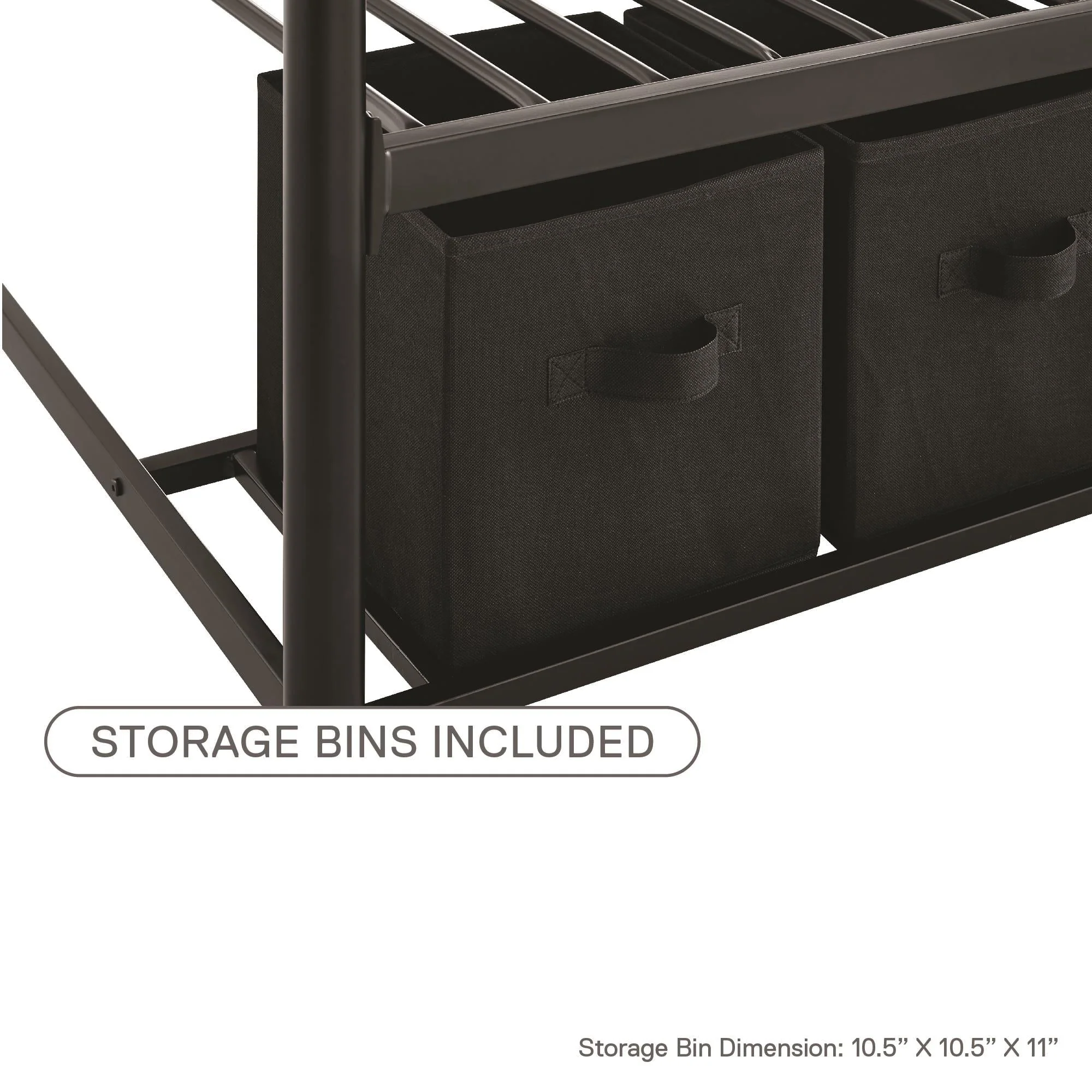 When you need to save room and make the most of your space, you need a bed that's designed with your family in mind. That's what makes the Mainstays bunk bed with storage the ideal solution for your busy home. The all-metal, twin-over-twin bunk bed is available in impressive black or silver metal and built to withstand all the wear and tear your kids can throw at it. Best of all, it comes with six handy storage containers under the base to keep all the kids' books, toys, extra clothes, or whatever else you need to tuck away. We've included two integrated bunk bed ladders to give you the flexibility to position the bed where you need it. Plus, the metal slat base on each bunk provides plenty of air circulation for mattresses, keeping them fresher for longer. Add a youth mattress or your favourite twin mattress and your kids may just go to bed when you ask them to! Mattresses are sold separately. Recommended mattress height for the top bunk is 6 inches.