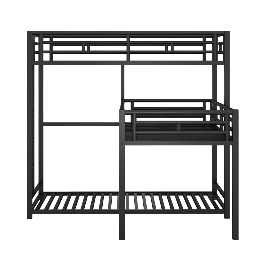 Modern and industrial, this triple bunk bed has the space-saving functionality you are looking for to maximize your bedroom. This loft bed is built with a strong metal frame that includes an integrated ladder, full-length guardrails, and secured metal slats to ensure that you will sleep in complete security and stability.