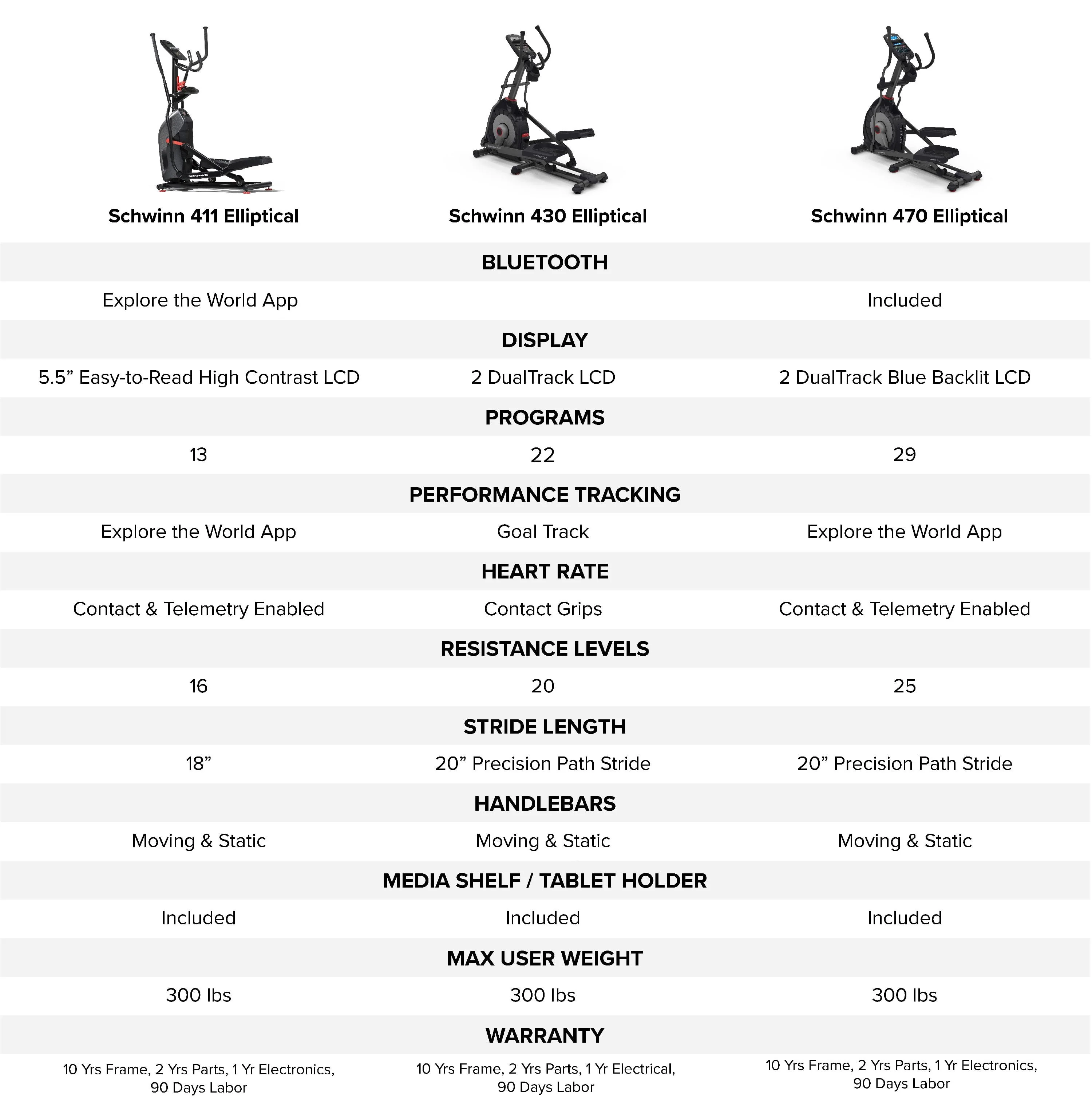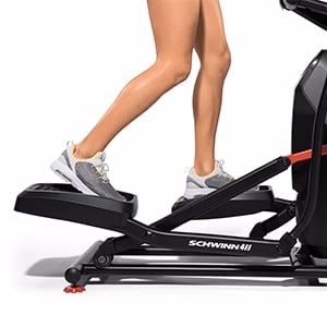 Space-saving design with 18" stride length. Access the Explore the World app and digitally immerse yourself in a world of virtual courses, exotic locales, and stunning trails from around the globe. Streamlined console displays time, distance, calories, speed, and heart rate. Low-impact cardio workouts are at a fraction of the size of other ellipticals. 16 levels of variable resistance allow you to dial the challenge up or down.
