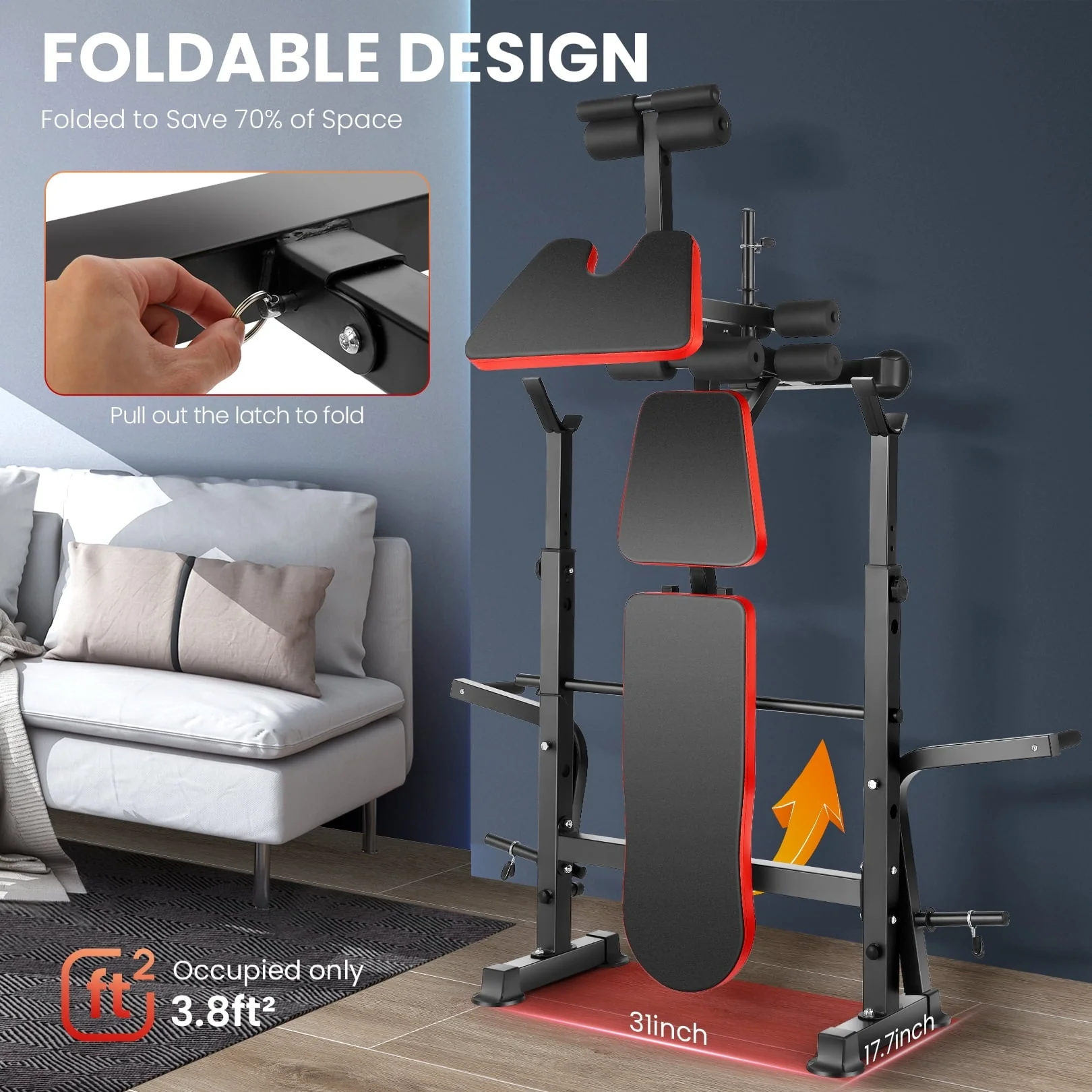 VIBESPARK Adjustable Weight Bench 600 lb 5 - in - 1 Foldable Workout Bench Set with Barbell Rack Leg Developer Preacher Curl Rack Dumbbell Fly Attachment, Multi - Function Strength Training Bench Press