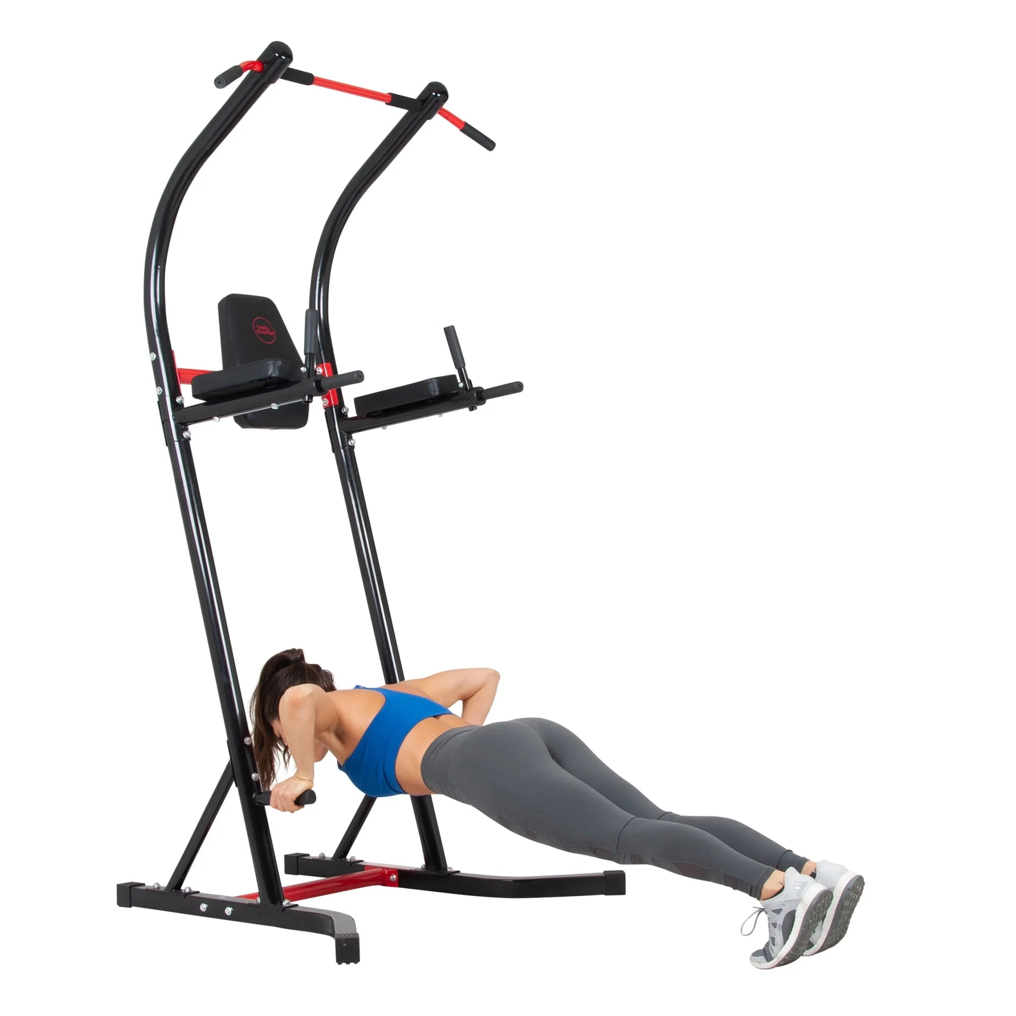 The Body Champ PT638 Multifunction Space Saving Single-Sided Power Tower is a versatile total strength machine. It is a 5-in-1 (5 workout stations in 1 machine) setup, designed for compact space but yet a full body exercise. Maximize your workout routines with exercise circuit stations including pull-ups, chin-ups, vertical knee raises, dips, and push-ups. Ergonomically designed and equipped with comfort, secure backrest and forearm pads as well as hand foam grips. Dip handles have fold-down capability for clear and free chin up exercises. This Power Tower handles a maximum total weight of 250 lbs.