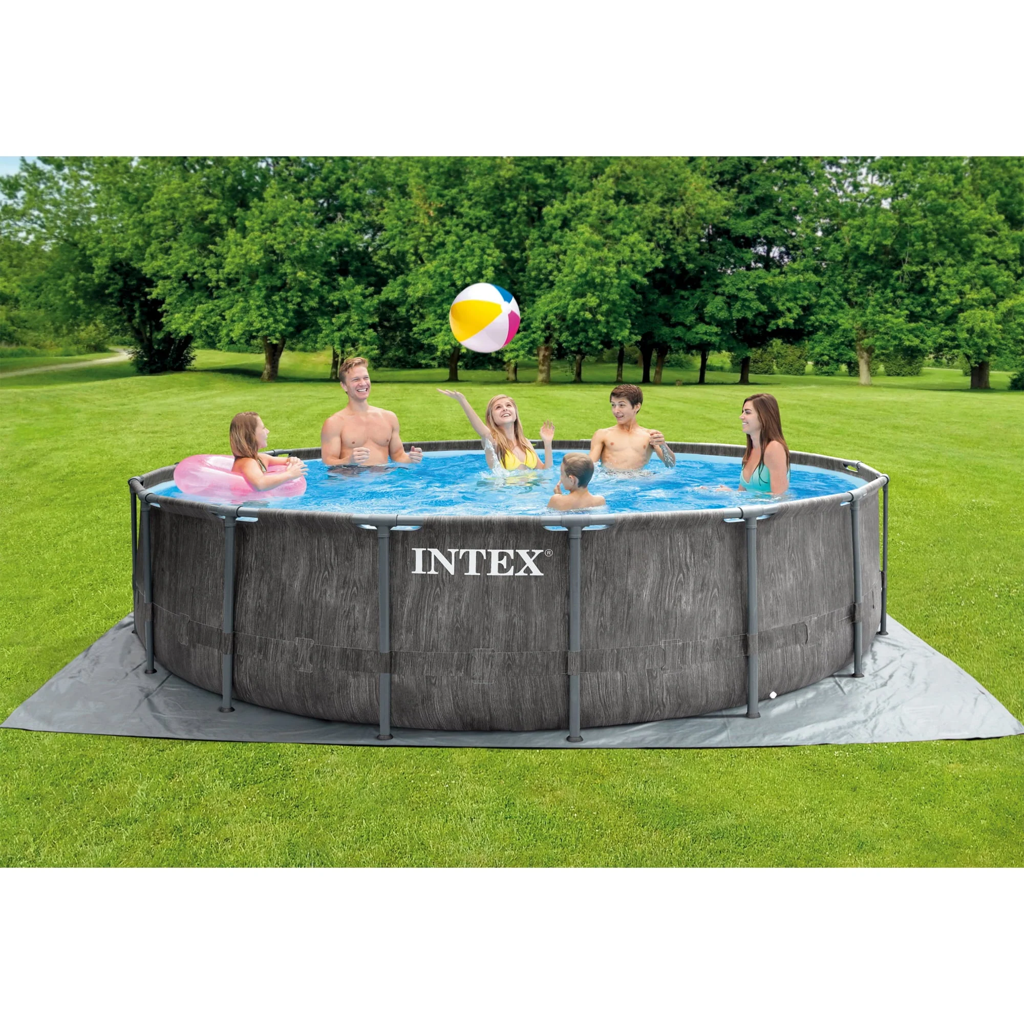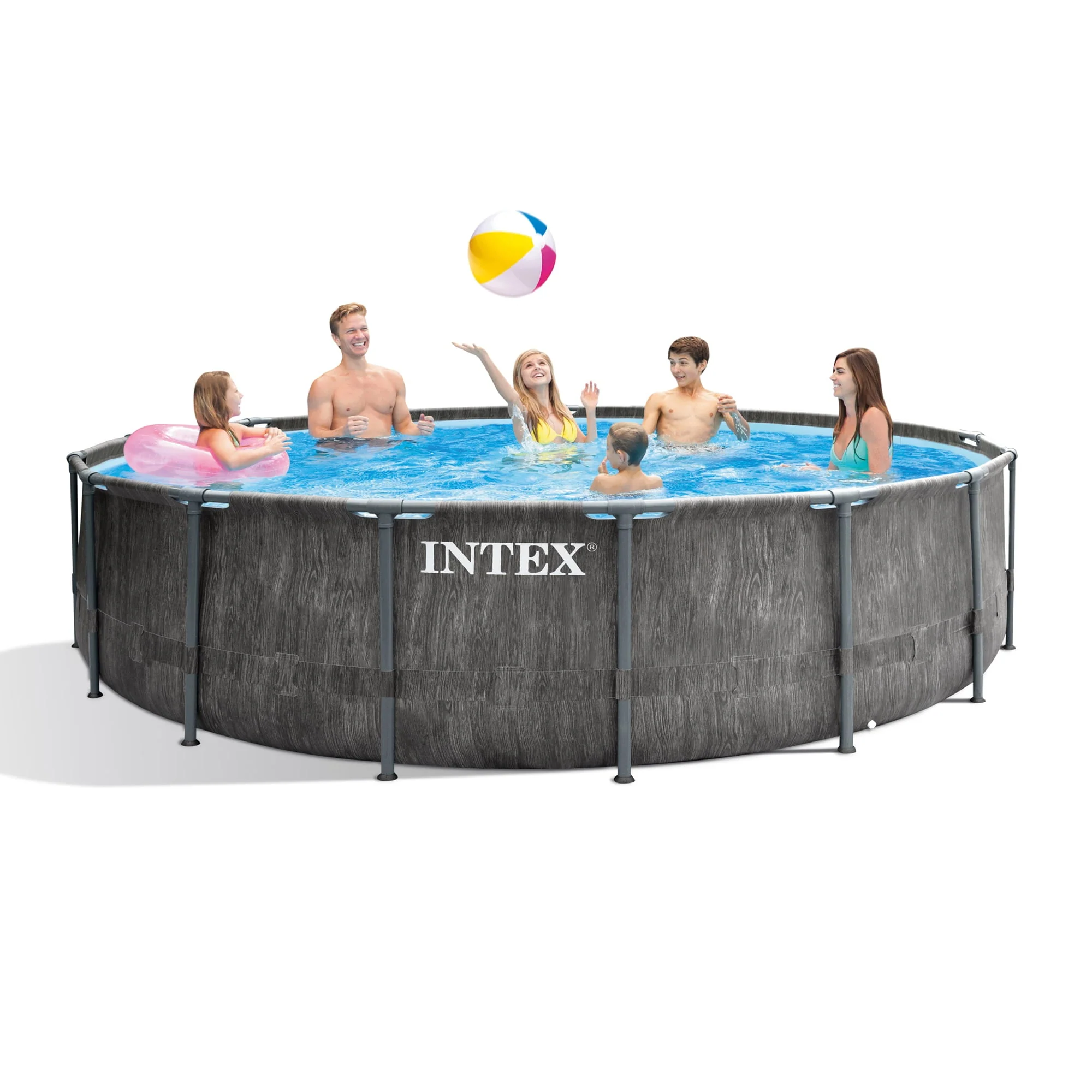 Whether you're hosting a summer get-together or need a day of relaxing, have everything you need with the Greywood Prism Frame Pool Set from Intex.