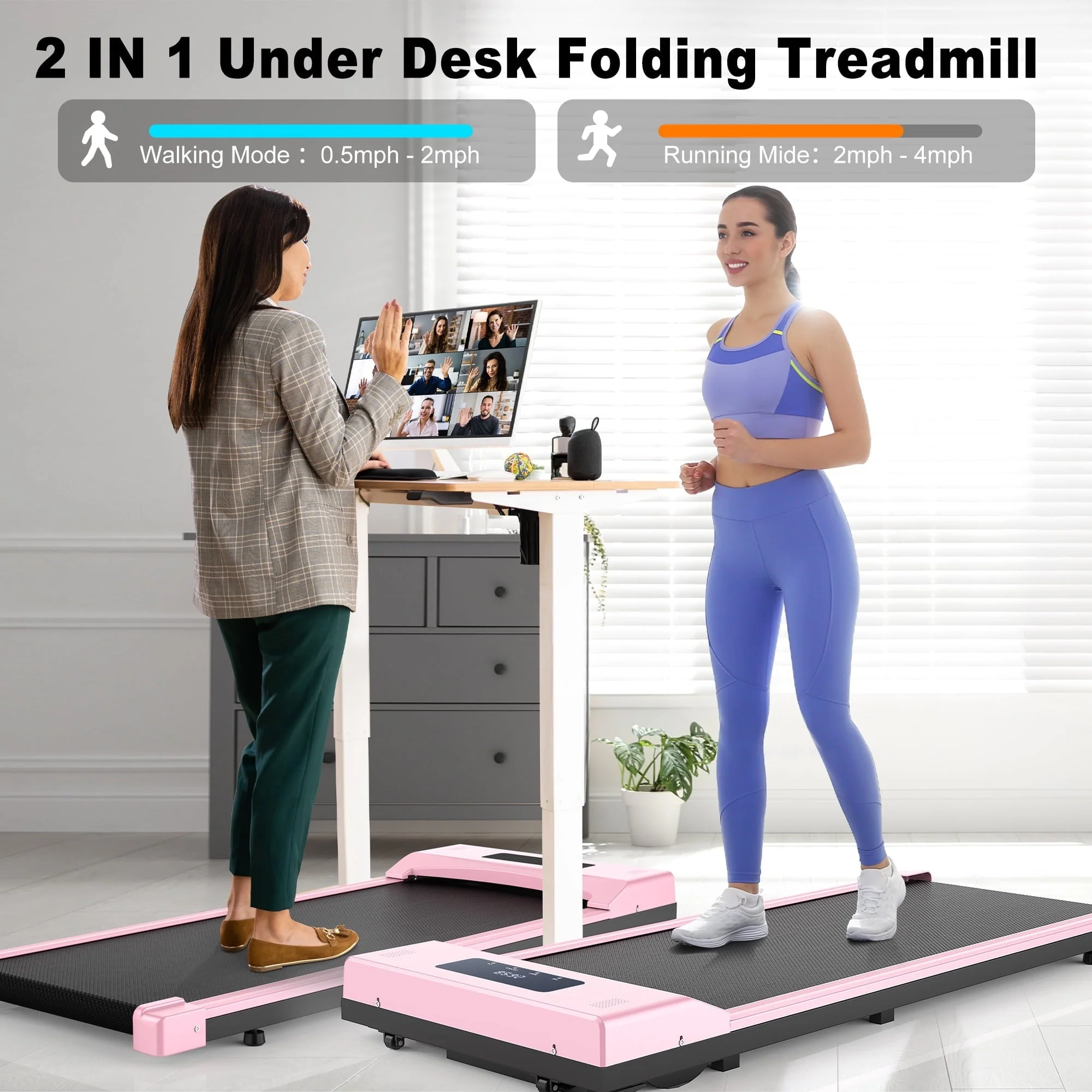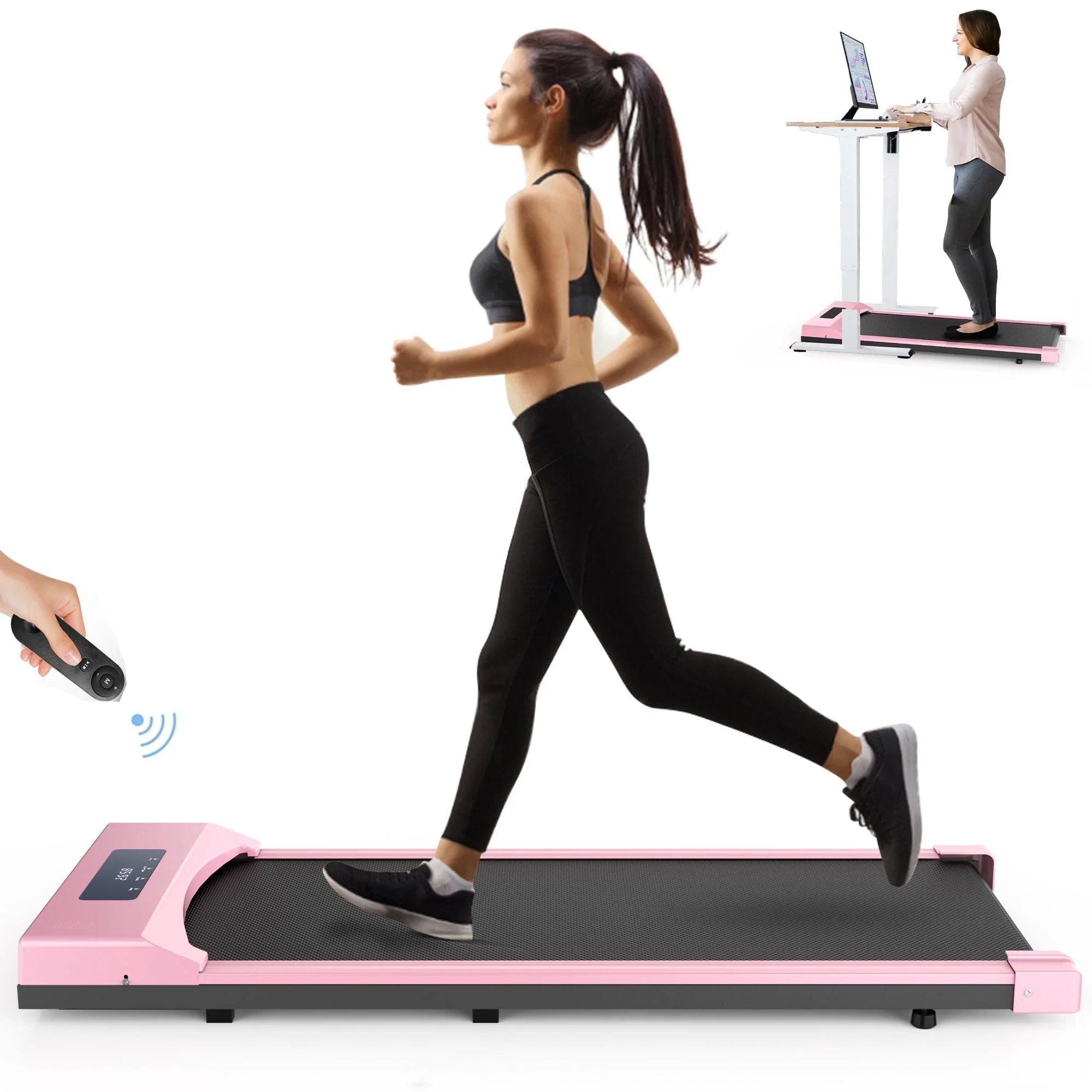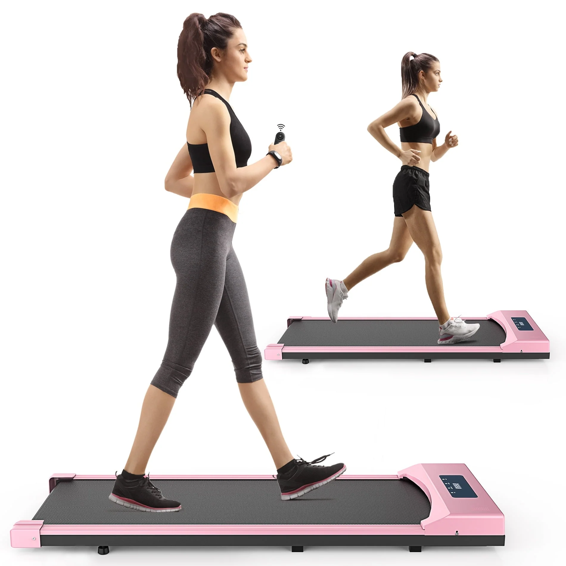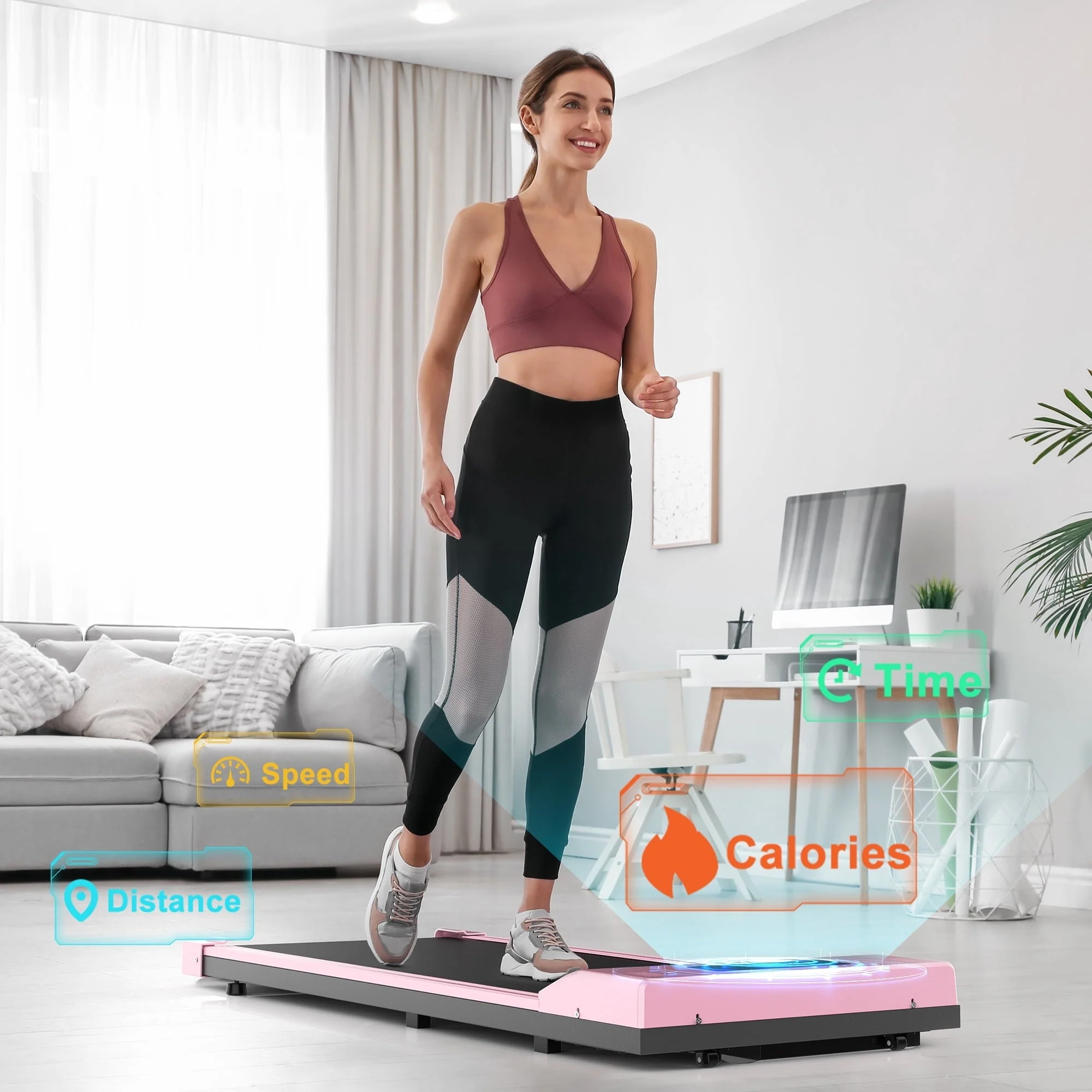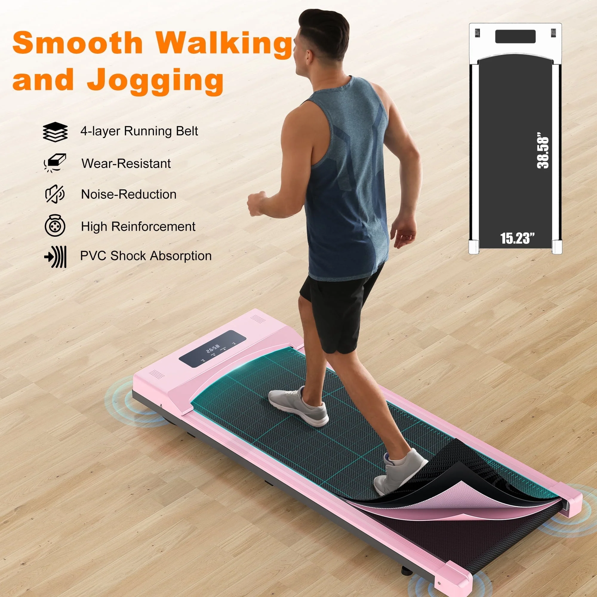 Adnoom Under Desk Treadmill, 2.5HP Installation - Free Slim Flat Compact Treadmill, Electric Quiet Walking Treadmill with LED Display and Wireless Remote Control for Home/Office (Pink)