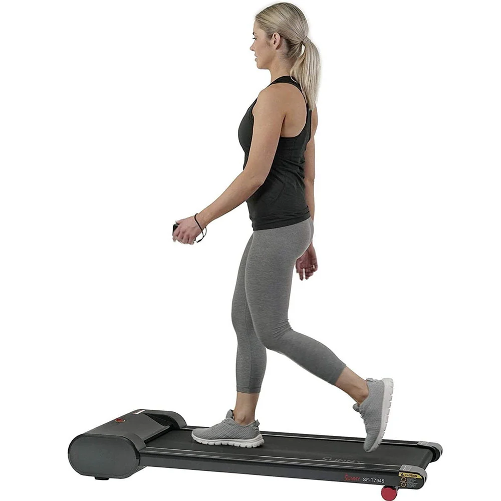 FLAT UNDERDESK DESIGN: The Slim Treadmill allows you to work up a sweat just about anywhere. Slide it under a desk to stay fit and productive at the same time