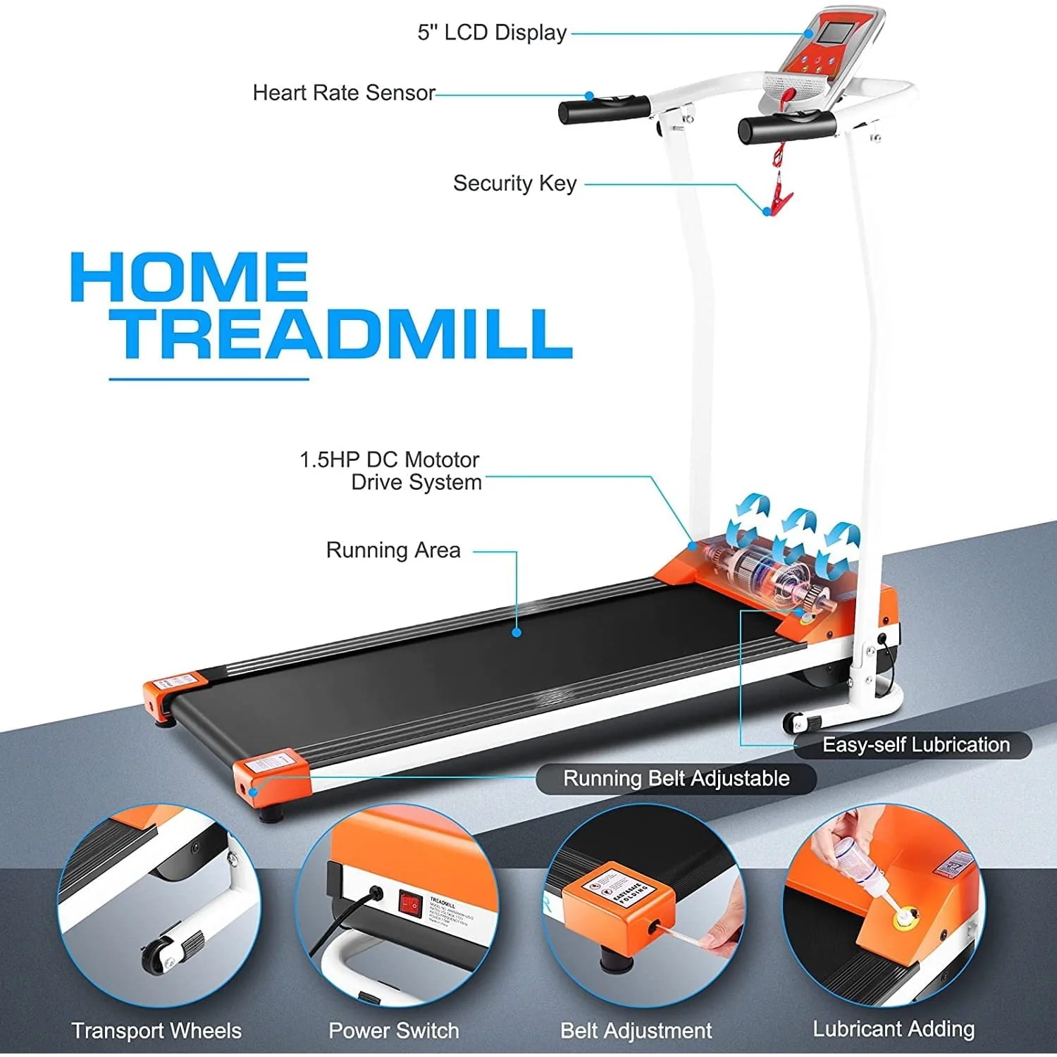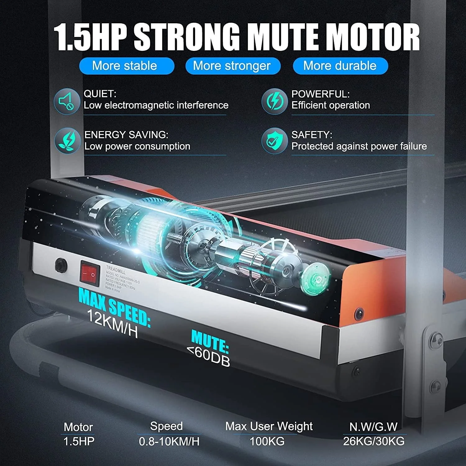 🌰�?2 Preset Training Modes】This folding treadmill for small spaces has 12 preset training modes for weight loss, cardio fitness, and healthy endurance building. Features 1.5HP motor power, 40.95" x 14.04" running belt surface, and 0.5-6.0 MPH adjustable speed.