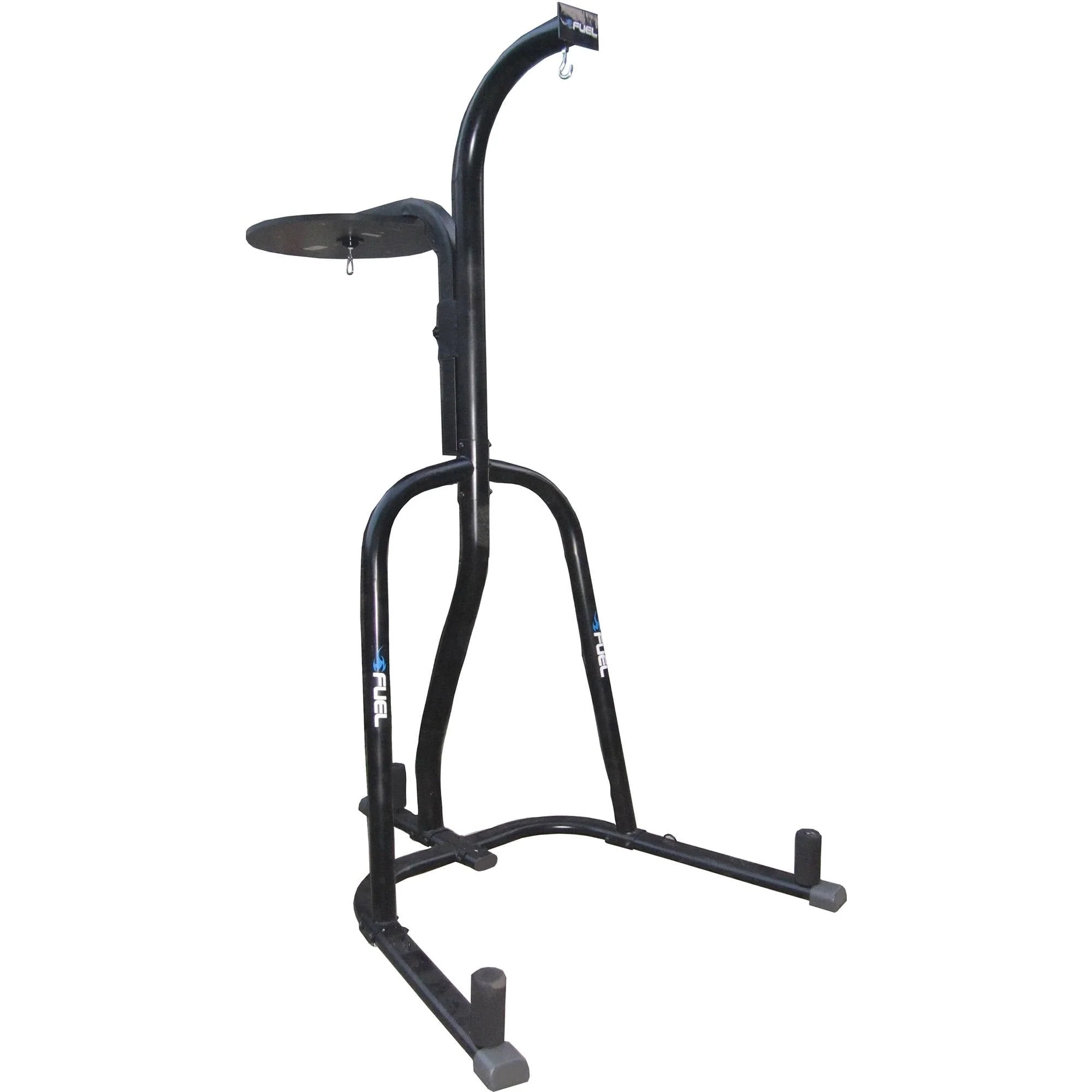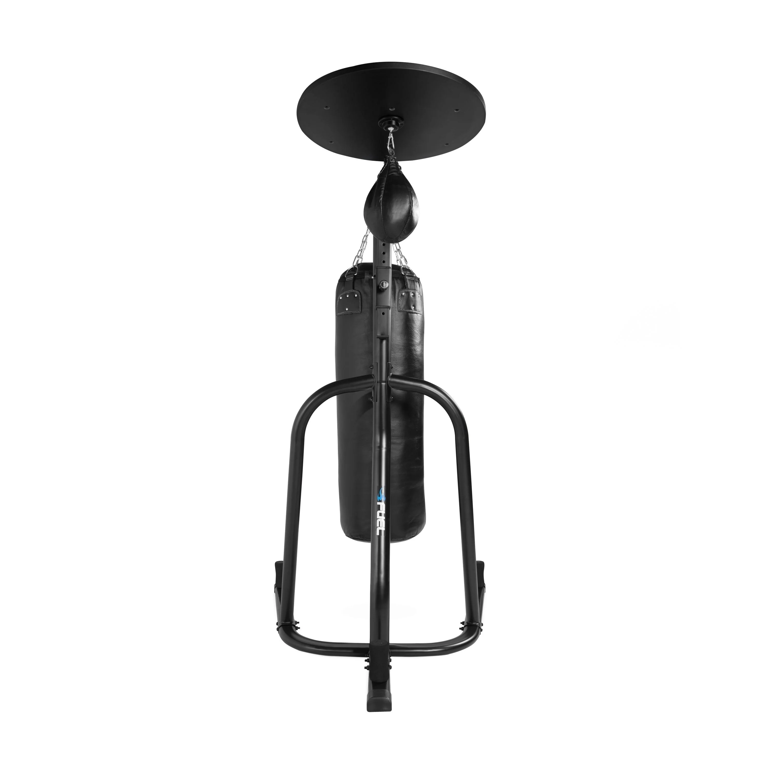 The Fuel Pureformance heavy bag stand with speed bag platform is perfect for hanging your punching and speed bags to up your boxing and MMA game. Standing just over seven feet tall, the Fuel Pureformance stand holds your heavy bag in the optimum position for both hand and footwork. With the convenience of hanging a heavy bag and speed bag at home or the office, you can get a quick cardio and strength workout, relieve some stress or just get your blood pumping easily without having to go anywhere. A good boxing workout with the heavy bag, uses most of your muscle groups, strengthening your core and improving your balance, you can move to the speed bag and up your endurance and eye-hand coordination. So, whether you take time to get in a full session or take a few short blasts at the bag throughout the day, you will feel the benefits in no time.