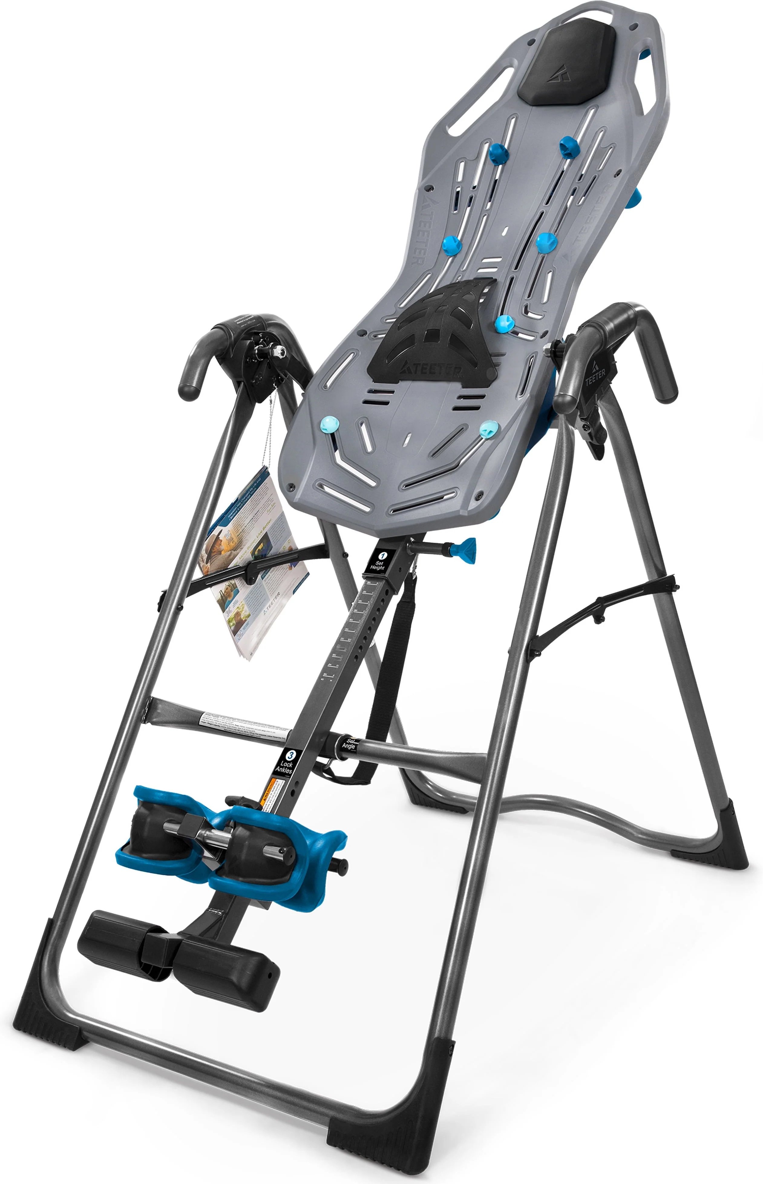 Discover how amazing your back can feel with the Teeter FitSpine X1 Inversion Table, designed to give you more comfort and real results on your journey to back pain relief. The smooth FlexTech�?Bed encourages your spine to decompress better than any other inversion table surface, while the patented 8-point floating suspension system flexes as you move for a deeper stretch. Ergonomic ankle supports with Ankle Comfort Dial provide superior comfort, security, and rotation control during inversion. Included Lumbar Bridge and Acupressure Nodes add targeted traction and pressure-point relief for boosted benefits. Precision-balanced and easy to store, the Teeter FitSpine X1 offers a comfortable, effective way to find back pain relief in your own home. Feel better, move better, live better... with Teeter.