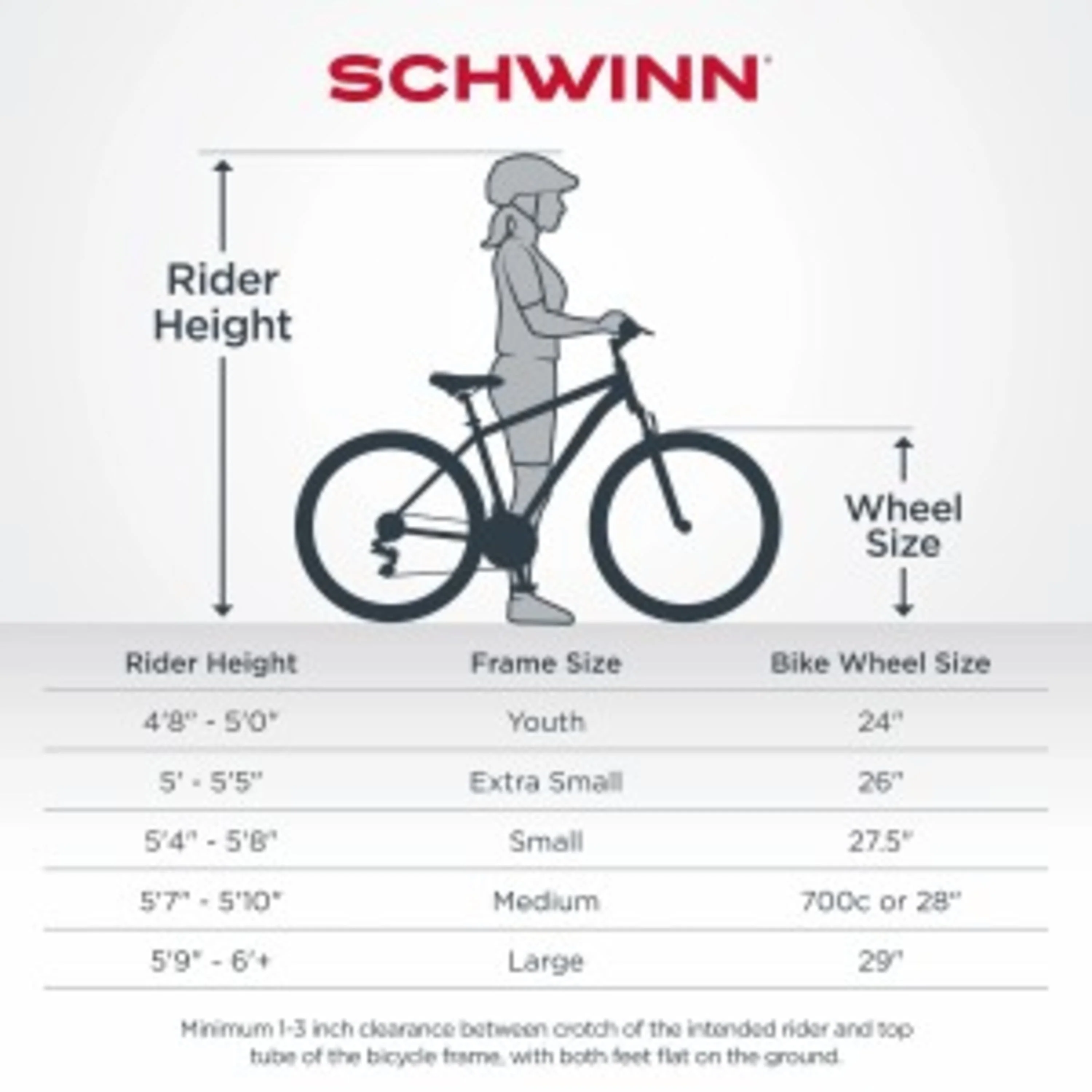 - 26-inch wheels fit riders 64 to 74 inches tall.