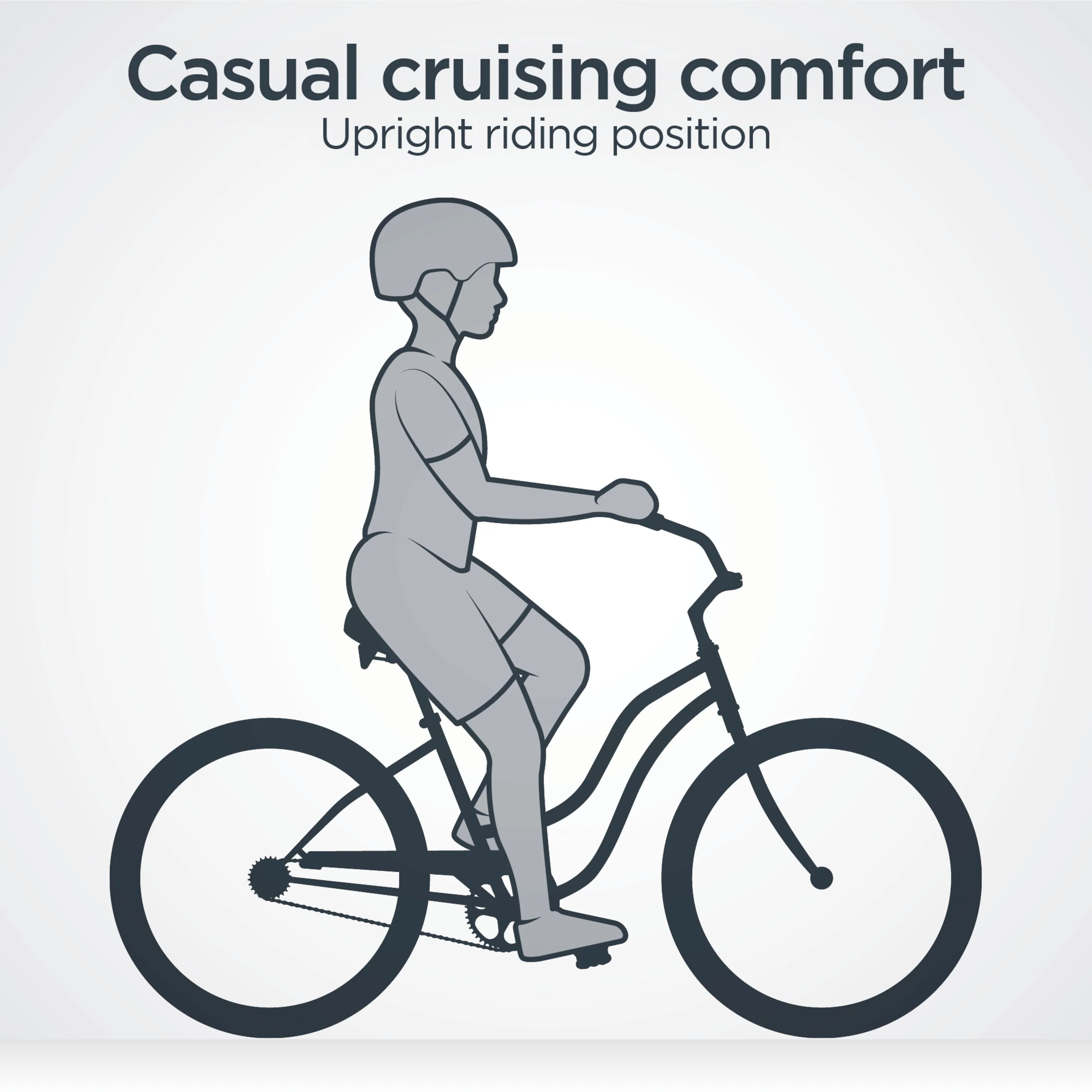 - Swept back cruiser handlebar provides an upright riding position that's more comfortable and easy on your back
