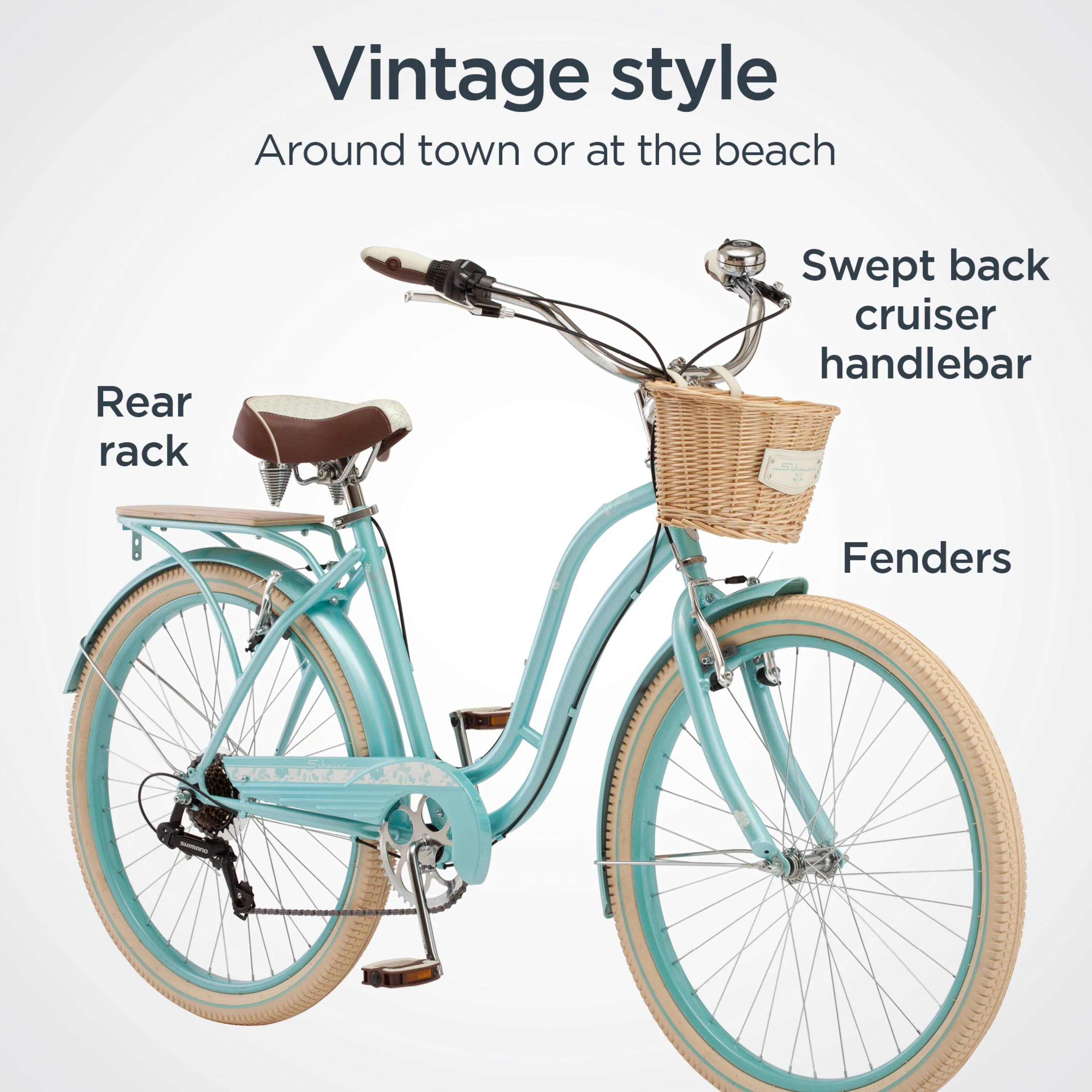 - Schwinn steel step-thru cruiser frame and fork offers a comfortable riding position so you can enjoy every ride.