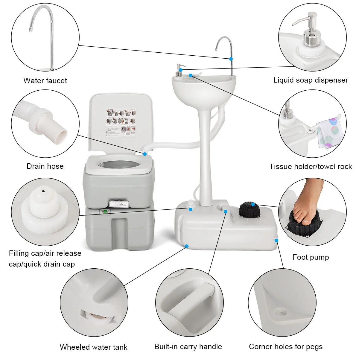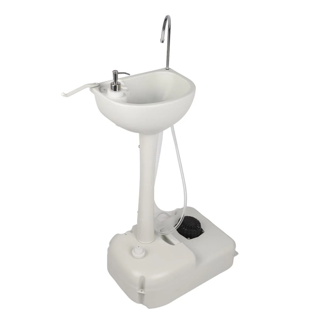 - Foot pump for hygienic, "hands-free" operation, saving water