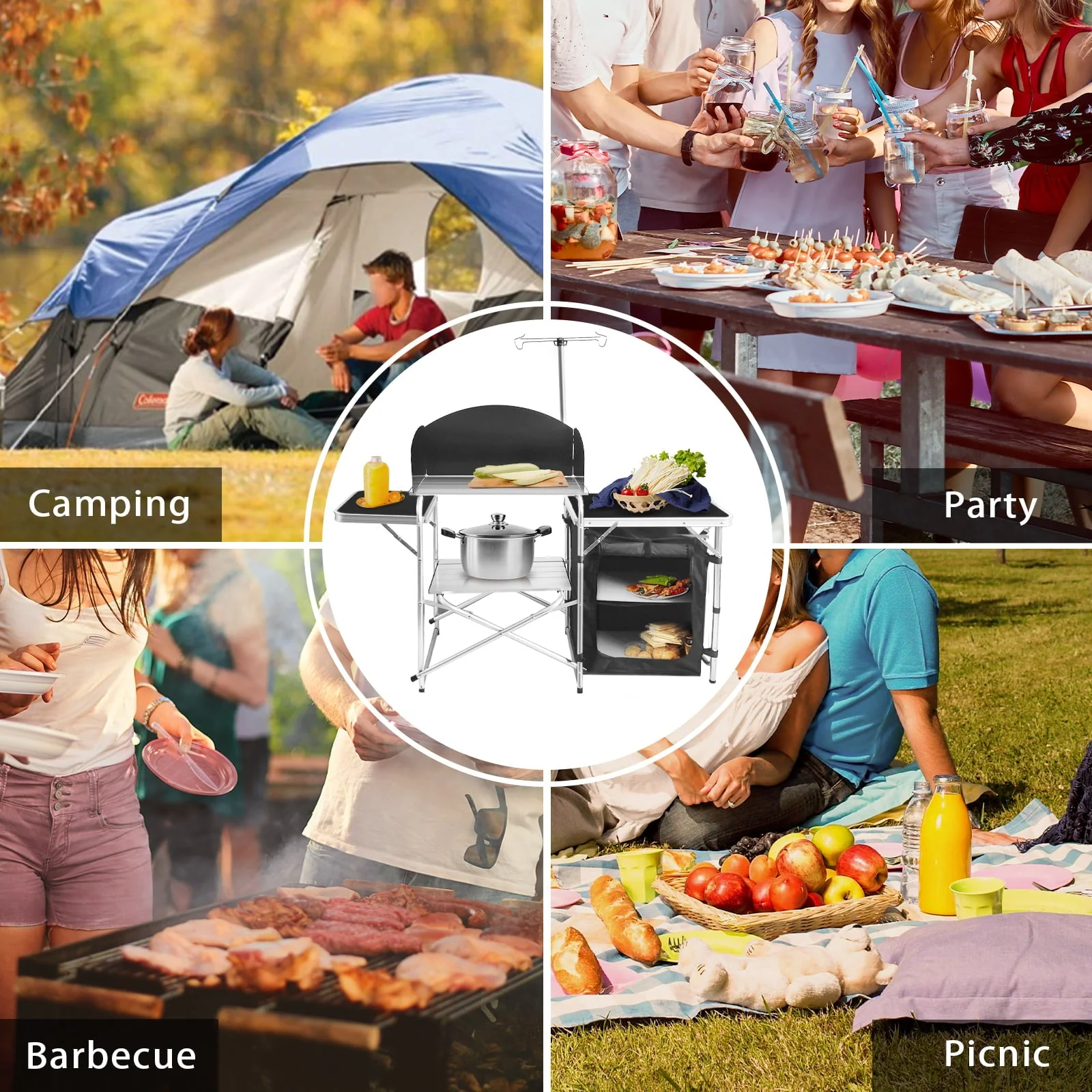 - The outdoor Mobile kitchen is ideal for indoor and outdoor activities such as camping, outdoor parties, outdoor sleepovers. Solve the problem of storage and placement of outdoor items to enhance the outdoor experience.