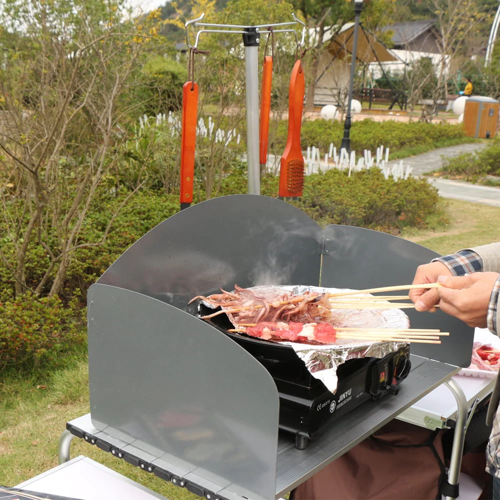 • Folding Cooking Table Outdoor Portable Cook Station Aluminum Camping Kitchen with Storage Organizer, Silver