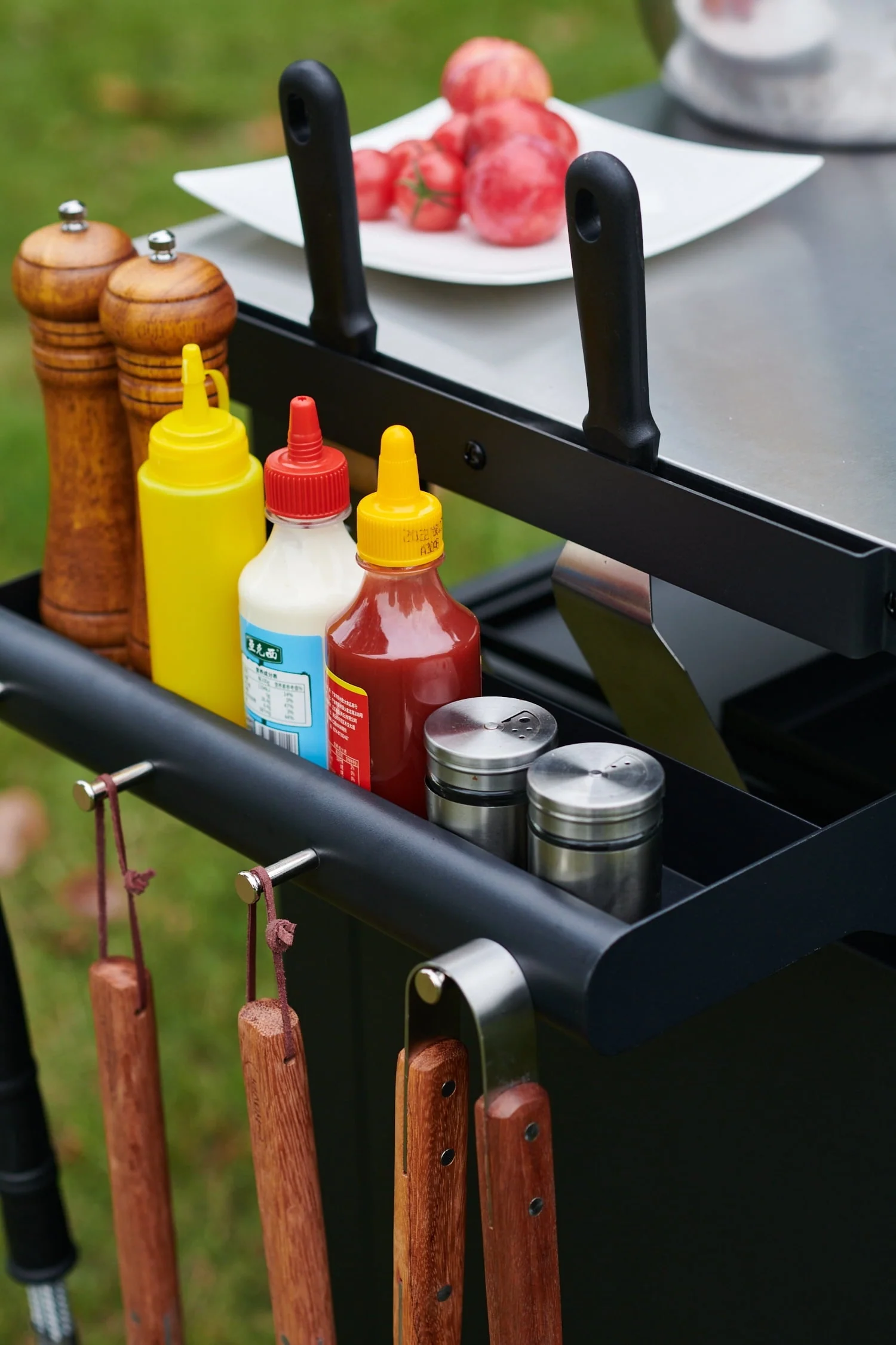 Full cabinet provide safety storage area for your propane tank, charcoal fuel, wood pellet and others.