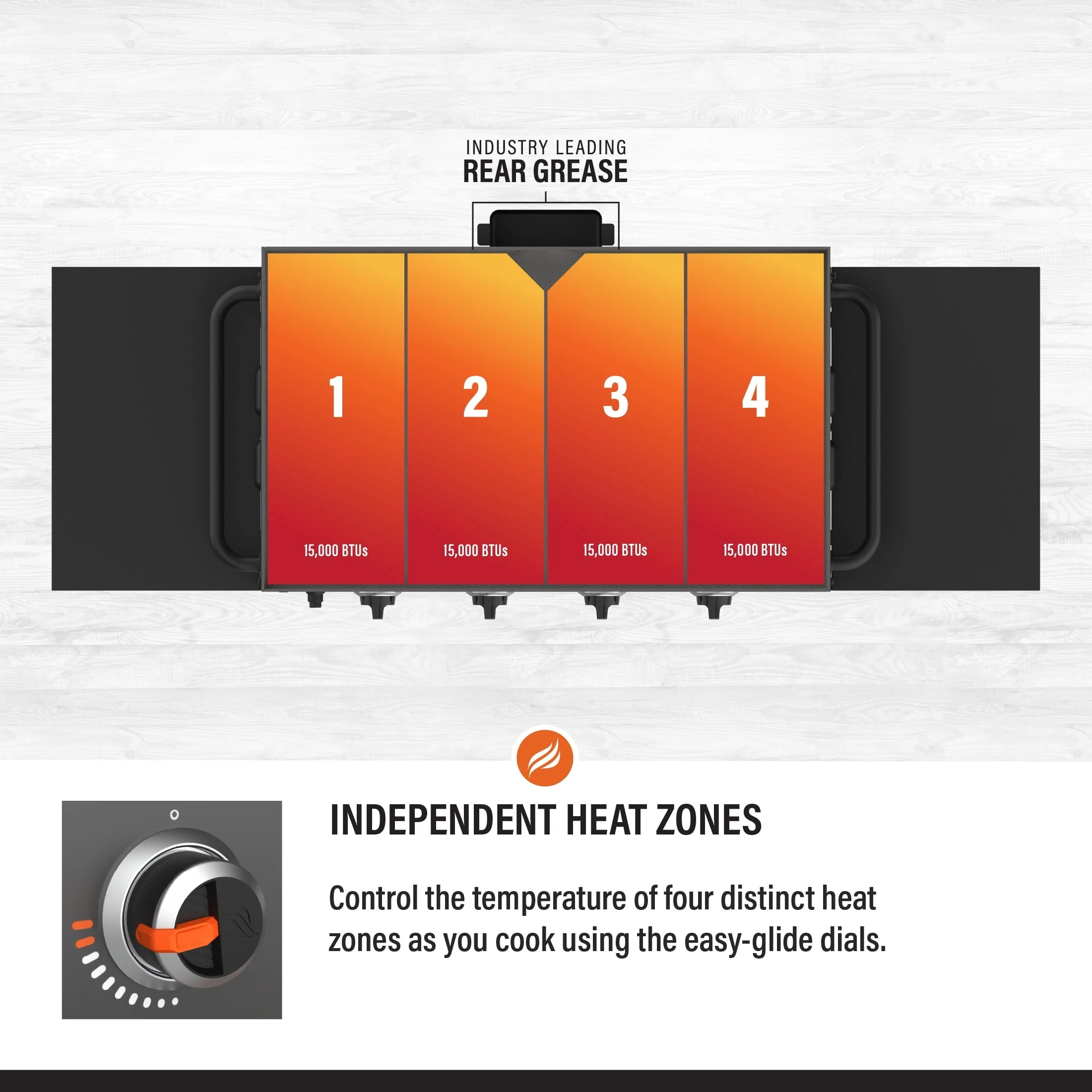 - A powerful 60,000 BTUs - 15,000 per burner