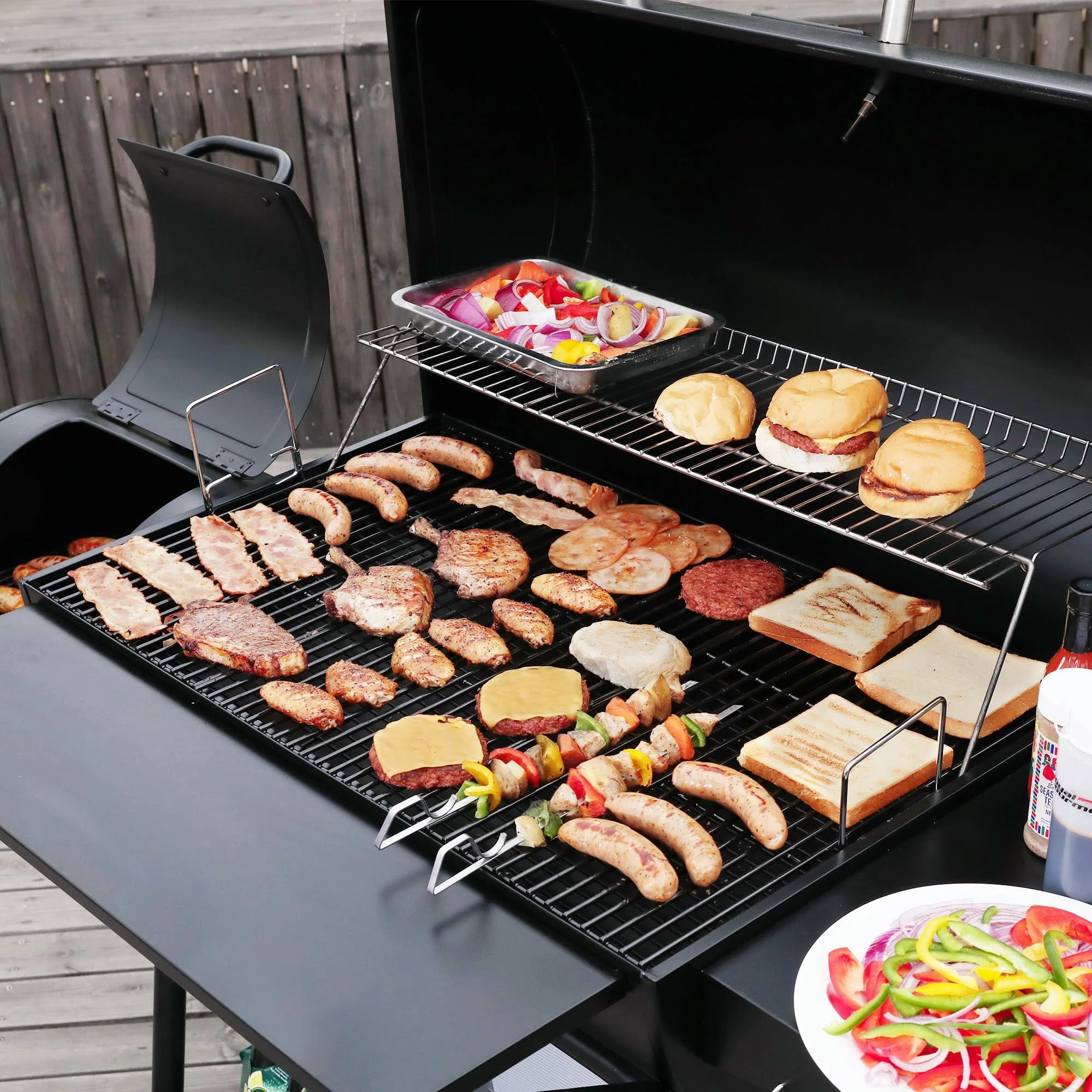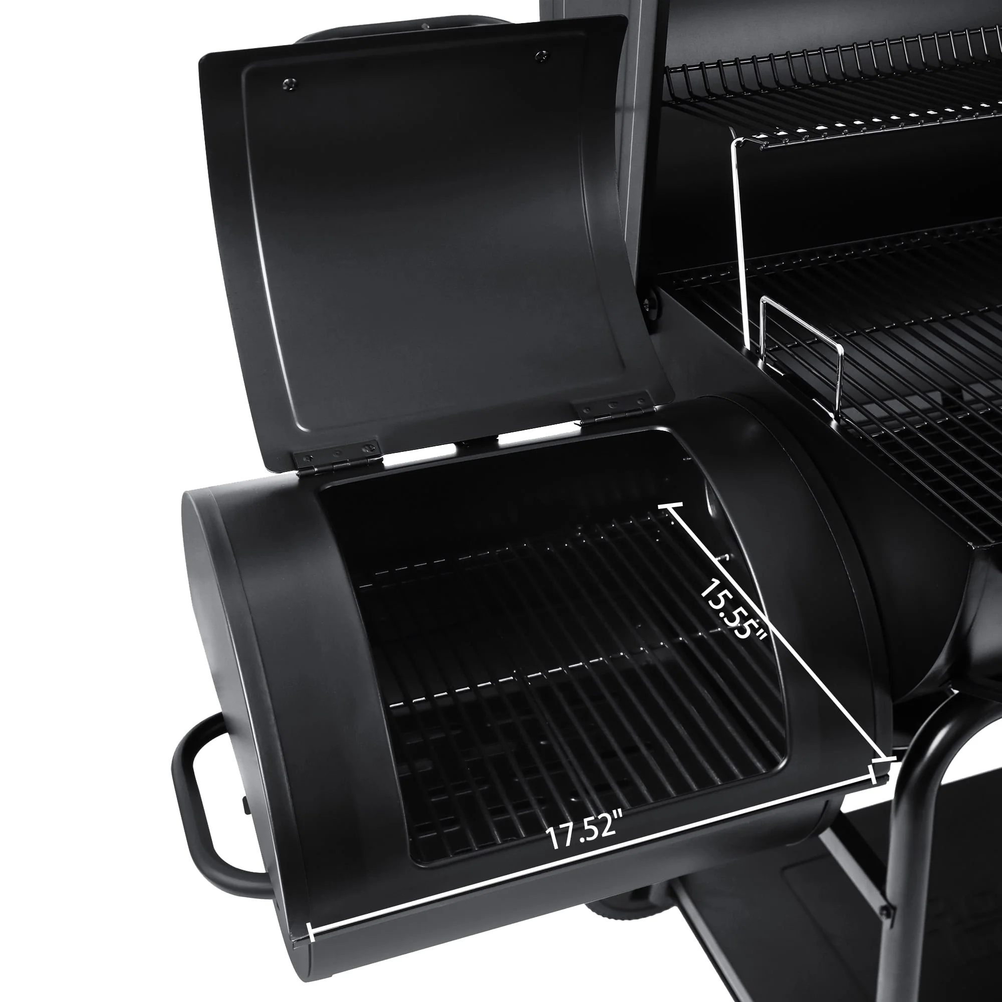 - Tremendous Cooking Space: Caters for 8-10 gathering with 654 sq. in. cooking grates, 267 sq. in. warming rack and 268 sq. in. offset smoker. All are made of heavy gauge porcelain-enameled steel wire.