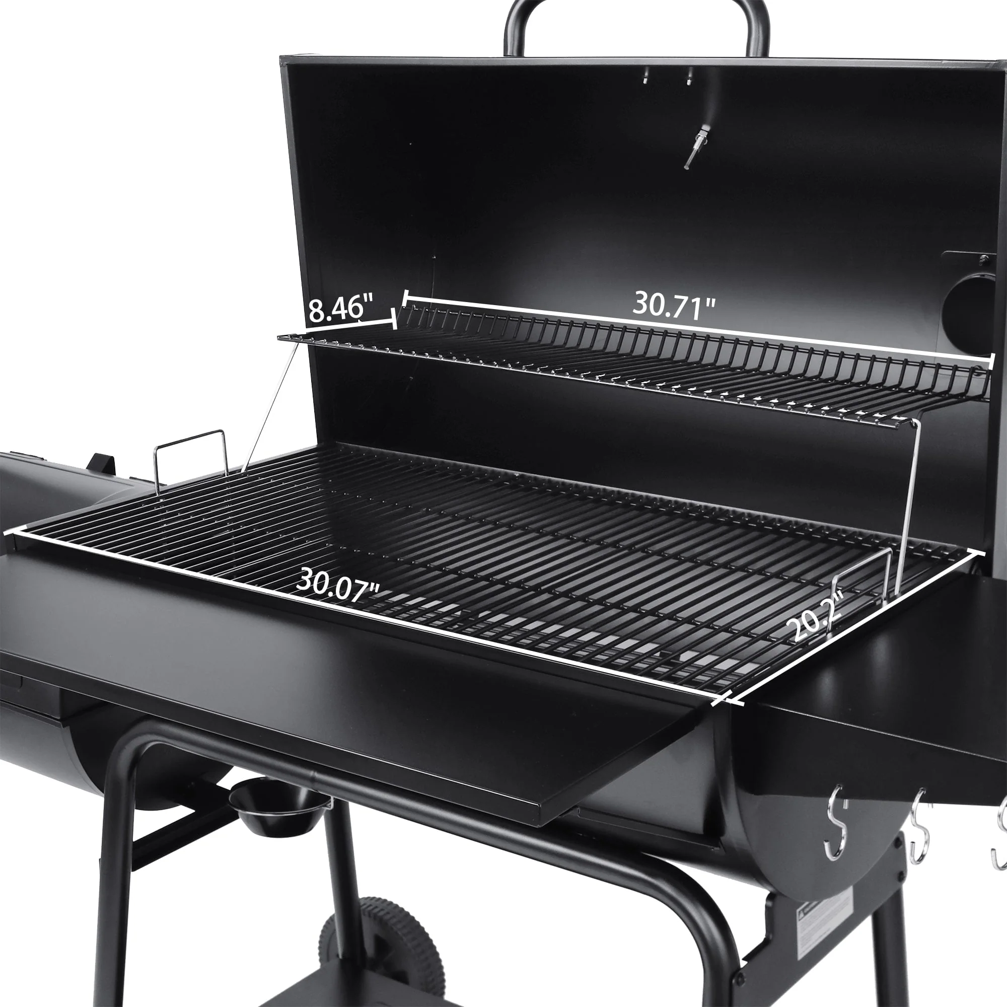- Offset Smoker: Seamlessly attached to the main body for good circulation of heat and smoke. And it can also provide additional grilling or smoking cooking space for small side dishes.