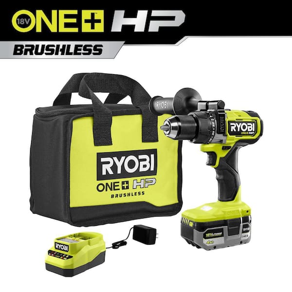 The RYOBI 18V ONE+ HP Brushless line of products is redefining power and performance. The RYOBI 18V ONE+ HP Brushless 1/2 in. Hammer Drill features a brushless motor delivering up to 29% faster drilling in Hammer Mode, saving time per drilling application. Its impressive 0 - 31,000 BPMs and 750 in./lbs. of torque maximizes power to drill through concrete, brick, and block with ease. Integral features include a two-speed gearbox (0-500 and 0-2,100 RPM) and a 24-position clutch with Hammer mode for full control while drilling and driving. This hammer drill features a ratcheting metal chuck for increased durability and accessory retention during heavy duty applications. Best of all, it is part of the RYOBI ONE+ System of over 280 Cordless Products that all work on the same battery platform. This hammer drill/driver is backed by the RYOBI 3-Year Manufacturers Warranty and includes the PBLHM101B 18V ONE+ HP Brushless 1/2 in. Hammer Drill, auxiliary handle, a 4.0 Ah High Performance Battery, an 18V Charger, a tool bag, and operators manual.