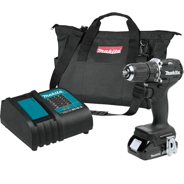 The 18V LXT Sub-Compact Brushless Driver-Drill Kit (XFD15SY1B) is a drilling and driving solution with significantly less weight. The 18V Sub-Compact Driver-Drill offers the size and weight of lower voltage tools, but with the performance, power, and compatibility of 18-Volt. It has an efficient brushless motor with two speed settings and dual L.E.D. lights to illuminate the work area. At only 5-7/8 in. long, it is a compact drilling and driving solution with superior comfort and handling. It's part of Makita's expanding 18V LXT System, the world's largest cordless tool system powered by 18V lithium-ion slide-style batteries. Makita 18V LXT Lithium-Ion Batteries have the fastest charge times in their categories, so they spend more time working and less time sitting on the charger. For improved tool performance and extended battery life, Makita created Star Protection Computer Controls. Star Protection is communication technology that allows the Star Protection-equipped tool and battery to exchange data in real time and monitor conditions during use to protect against overloading, over-discharging and overheating. For increased versatility, the tool can also be powered by Makita 18V LXT Lithium-Ion Batteries with the star symbol on the battery indicating Star Protection inside.