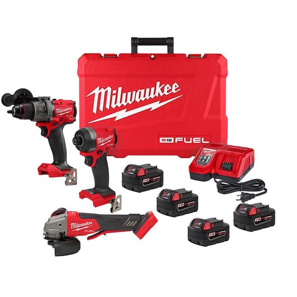 Milwaukee m18 fuel 2-tool combo kit has most powerful drill, including autostop control mode for enhanced safety and fastest driving impact driver.Milwaukee m18 fuel ? in. drill driver is industry's most powerful drill and most compact solution. Powerstate brushless motor delivers most power under load to complete 2-9/16in. Self-feed holes in dense materials. At only 6.9 in. in length, this is most compact drill in its class. Autostop control mode offers enhanced safety for by preventing over-rotation in a bind-up with best reaction time in industry.Milwaukee m18 fuel ? in. hex impact driver is most powerful and fastest driving impact driver, featuring ultimate trigger control. Powerstate brushless motor delivers unmatched power for a full range of capabilities to complete widest variety of applications. Increase productivity on jobsite with fastest driving speed without sacrificing power or control. Redlink plus intelligence delivers ultimate trigger control by providing smooth acceleration for small fasteners to prevent stripping of screws or damaging of materials.Milwaukee m18 fuel 4-1/2in. / 5in. Grinder paddle switch, no lock is next advancement in power and performance, generating 11a corded power, fastest cutting, and delivering up to 135 cuts per charge. Grinder paddle switch generates 11a corded power allowing you to complete toughest grinding and cutting applications.