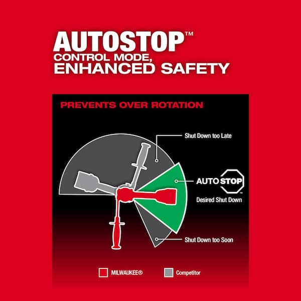 2953-20 impact driver: Auto-Stop Feature to Protect from over-rotation in a bind-up for enhanced safety, equipped with a dedicated autostop light on foot of tool to indicate a protection event