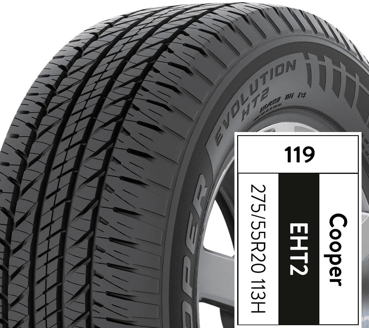 Go where the road leads with the Cooper Evolution HT2 275/55R20 113H All-Season Tire It has a tread compound that sticks to wet roads, hugs wet corners, and resists slipping. The wide circumferential grooves clear water, slush, and snow from the tire to maintain grip. A tread pattern designed to reduce road noise combined with a tire engineered to enhance on-road handling, while proven tread pattern design featuring sturdy shoulder blocks and a reinforced center rib promotes long treadwear. This all-season tire is suitable for passenger vehicles, sport utility vehicles, and trucks.