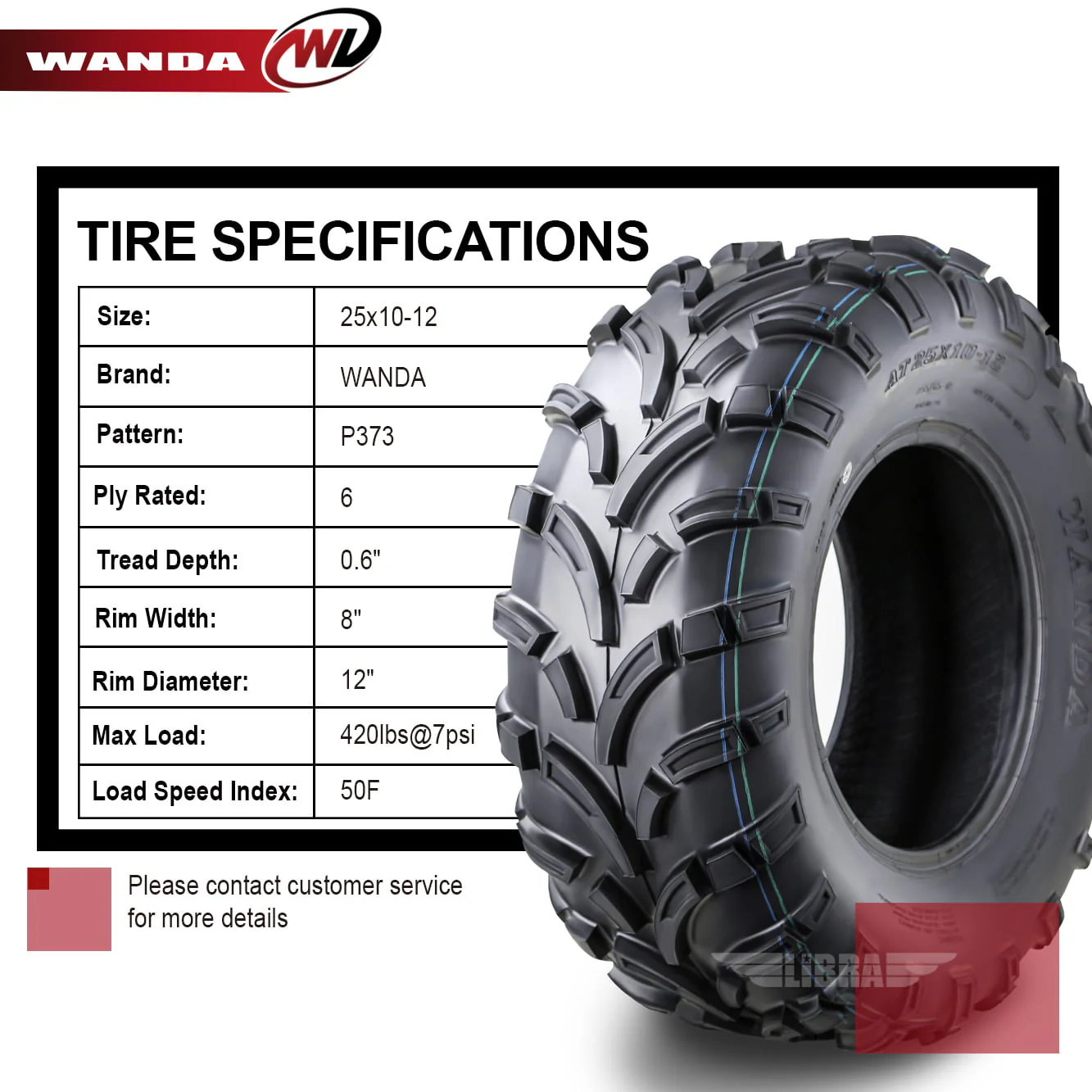Set of two 25x10-12 ATV tires fit for a variety of ATV applications. Durable, light weight, smooth rolling design provides quicker acceleration and braking. Deep, widely spaced tread bras shed mud. Excel in a wide variety of terrains. Heavy 6 ply rated construction resists punctures and abrasions. Tires only, wheels are not included.