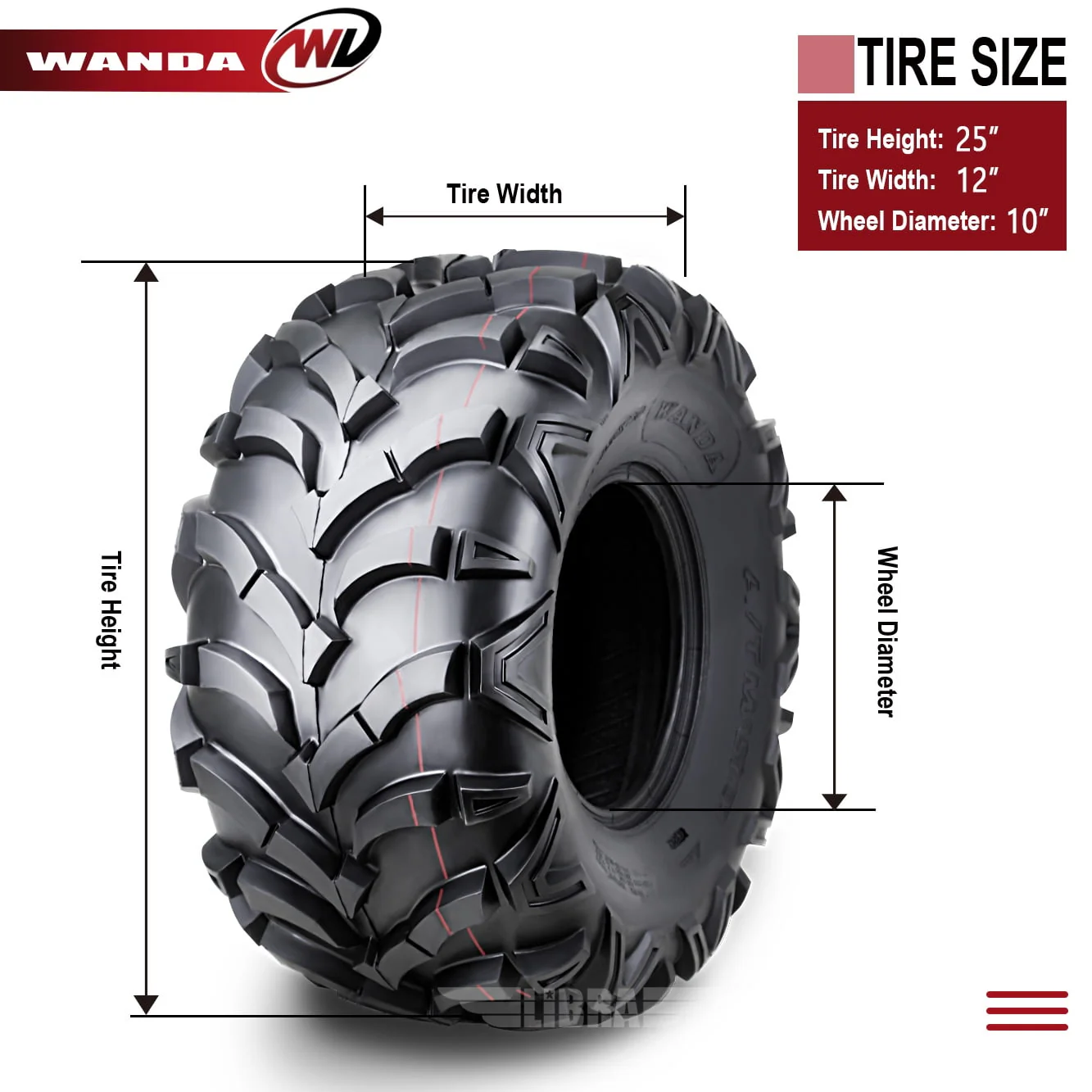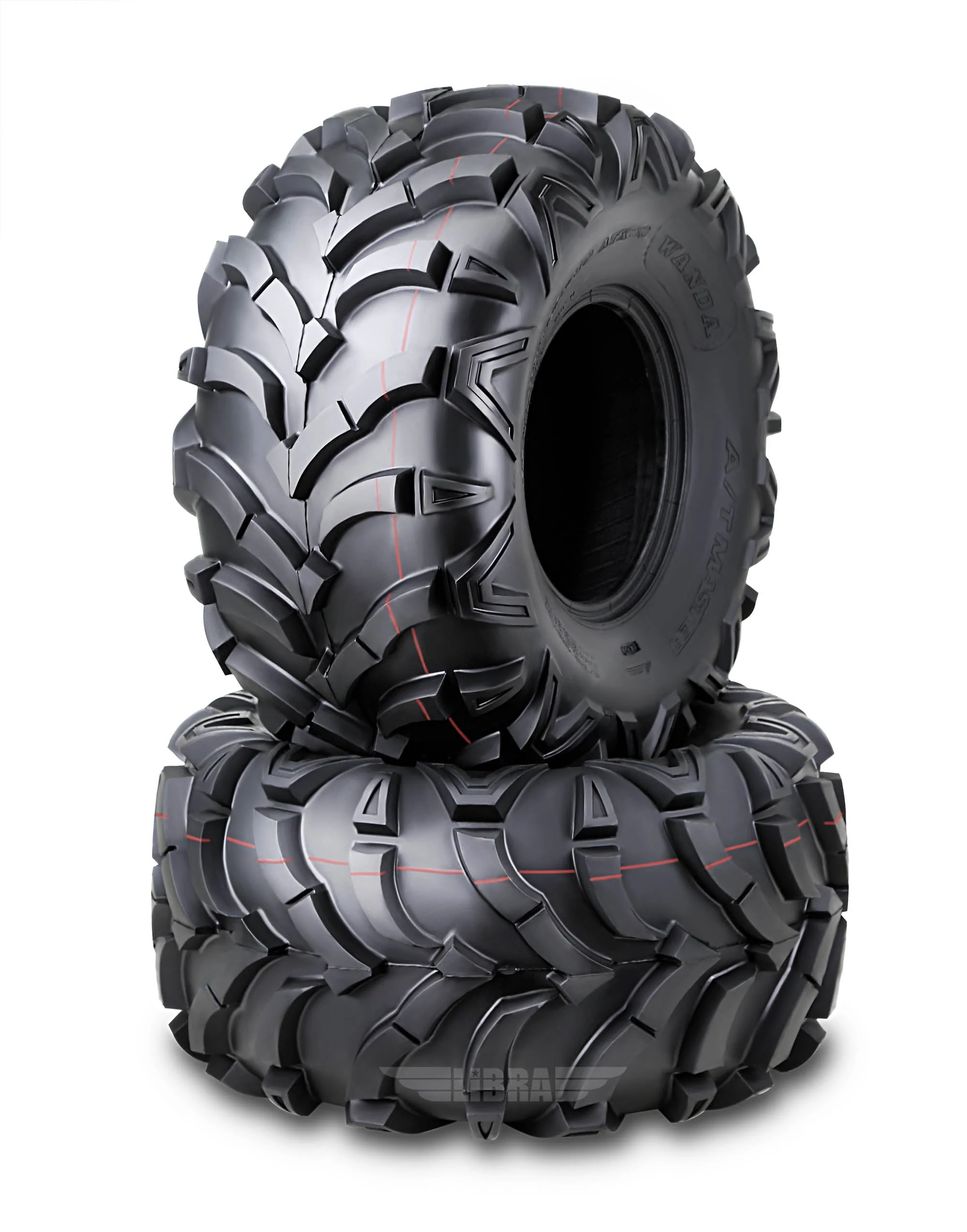Set of two tires fit for a variety of ATV applications. Directional "V" angled solid lug tread design with wide gaps between tread blocks promotes. 0.79" SOLID lugs, heavier and the longer life. Great for mud/sand, groove, hard pack and loose loam terrains. Heavy 6 ply rated nylon construction resists punctures and abrasions, Cleaning action can provide better traction over rough terrain. Additional shoulder lugs protect rim and sidewall. Tires only, wheels are not included.