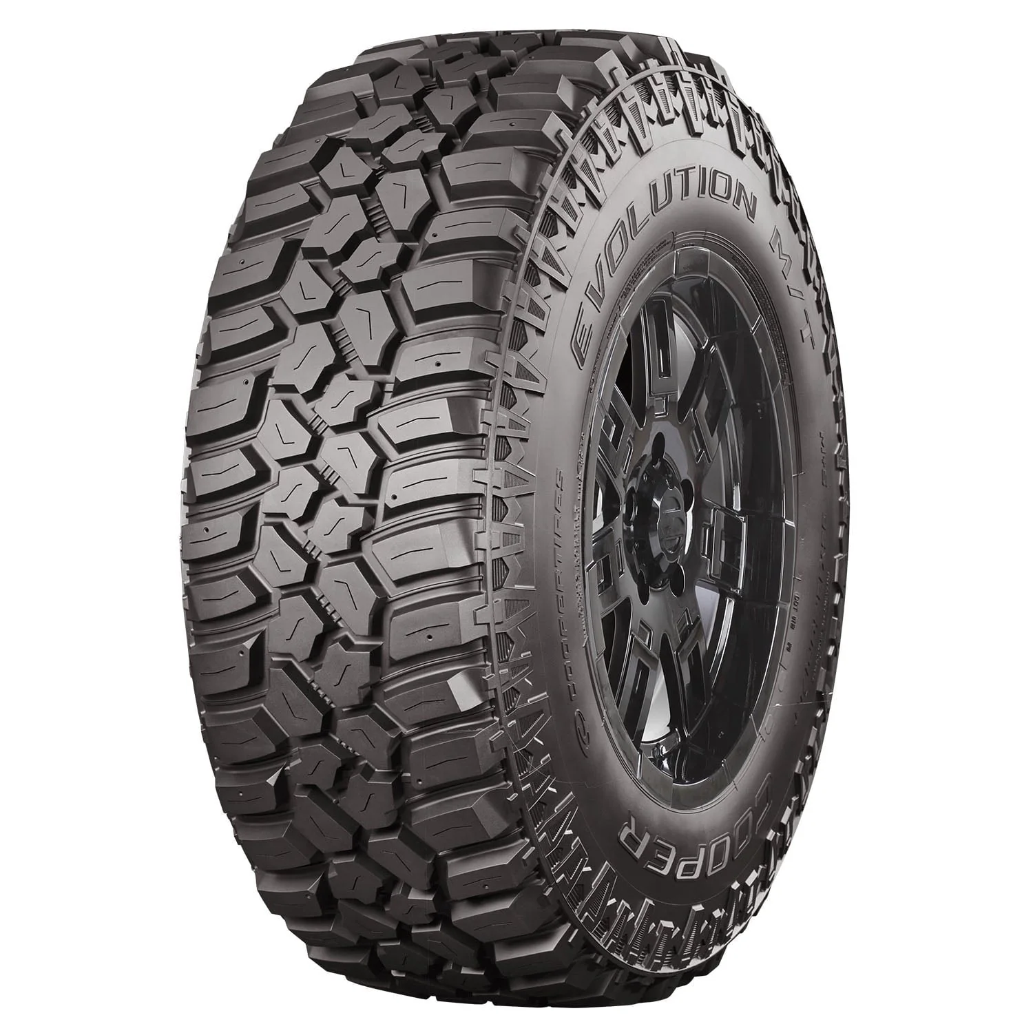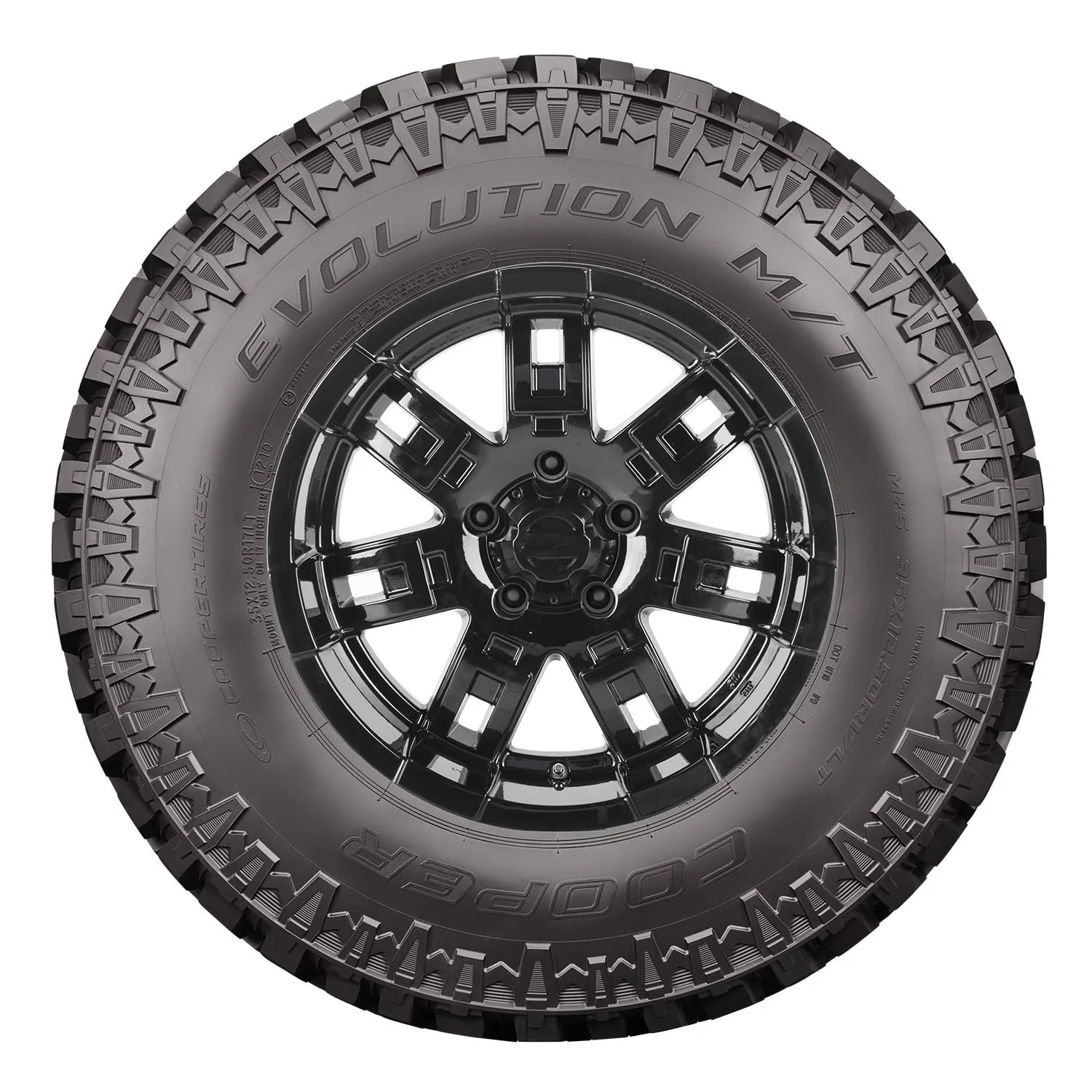 When the road ends and the mud begins, the Cooper Evolution M/T tire is engineered to get light trucks and SUVs through it with confidence. The Evolution M/T's mud-terrain tread pattern features oversize lugs and Cooper's Mud Slingers to eject rocks and mud, while a reinforced sidewall and innovative shoulder design provide lateral traction . Additionally, the Evolution M/T is M+S rated for mud and snow traction.