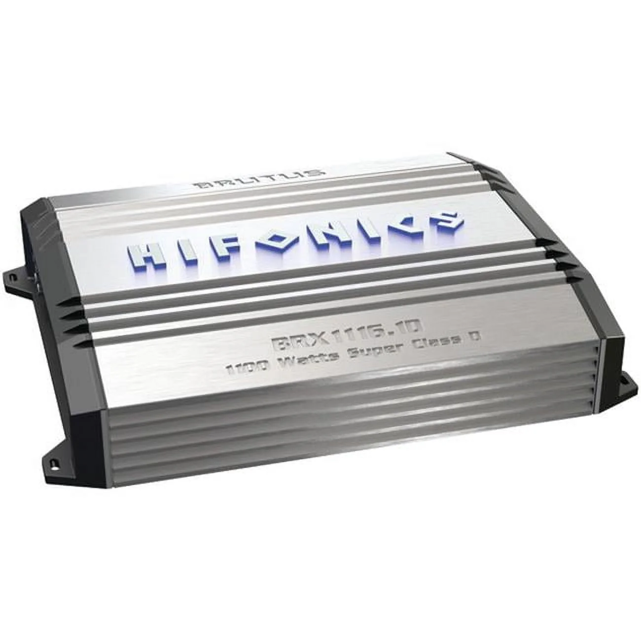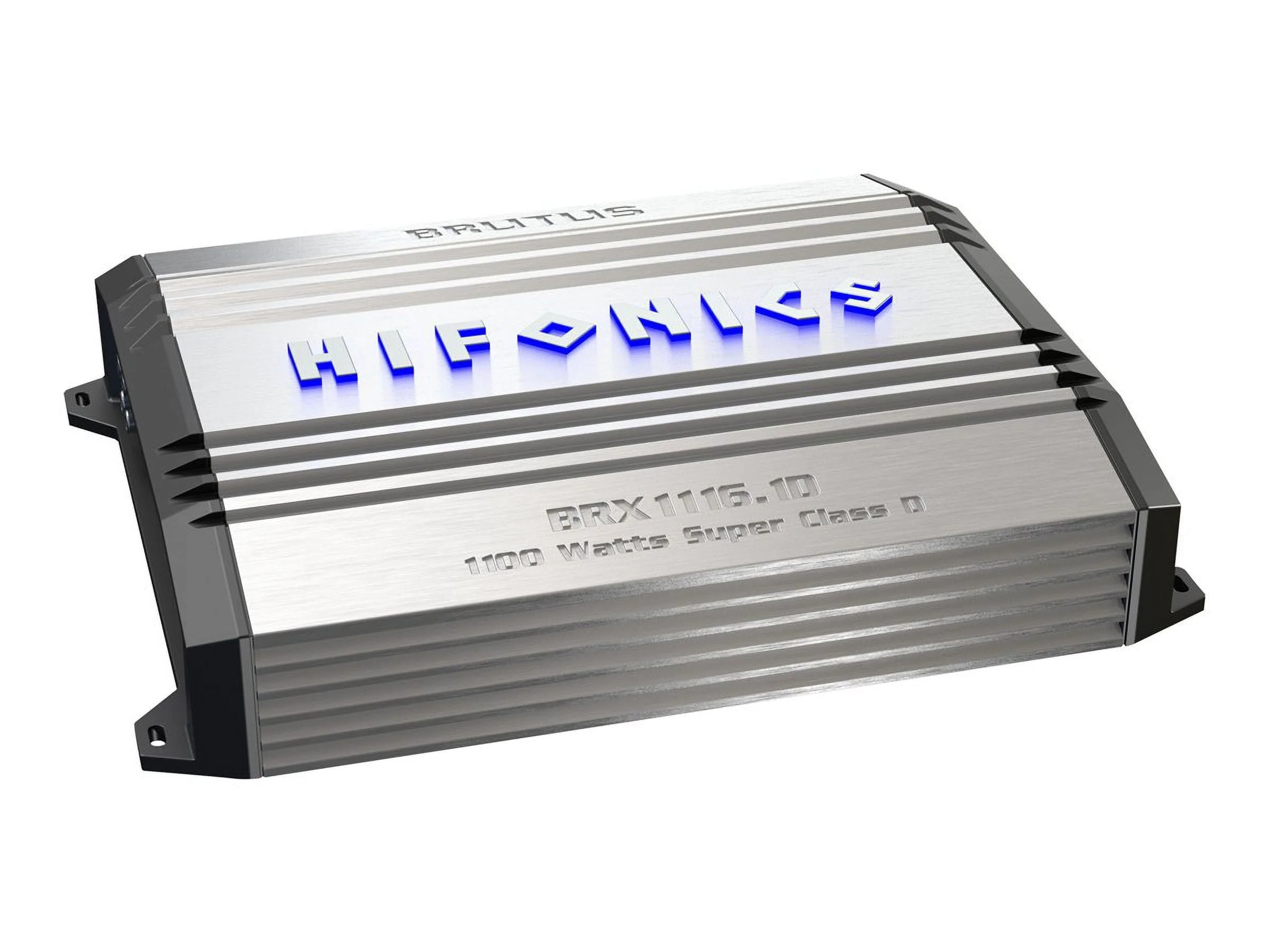 The **Hifonics BRX1116.1D** MONO car amplifier features a MAX power handling of 1100 watts and a RMS power handling of 400 watts at 1 channel with 4 ohms. Other features include the Molded and angled ILLUMINATED Terminals for stress free installation access, Preamp RCA outputs and adjustments for sound shaping and Ultra Fi? MOSFETS.There are several options for installation and the mono Next Generation Super D Class Brutus amplifiers can run at 1,2 or 4 Ohm as well, for an even tighter bass response.4 ohms: 400 watts x 1 chan.Remote Bass Control IncludedWe are an authorized Hifonics dealer