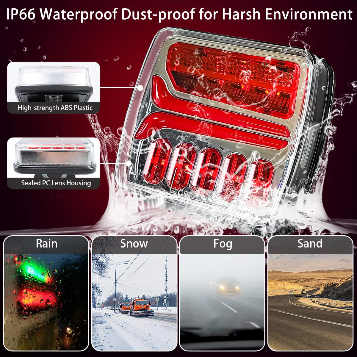 Sealed with thicken high-strength ABS plastic and PC lens housing, passed strict IP66 waterproof and dust-proof testing, the wireless towing trailer light provides great insulation, impact, and shock resistance, weather resistance, working temperature range from -40�?to 149�?