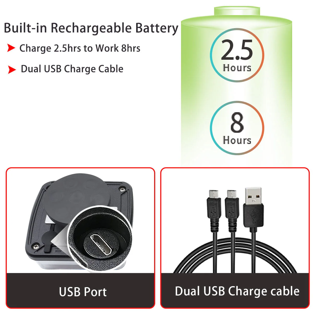 With built-in rechargeable battery, the trailer light kit can run for up to 8 hours on per time of 2.5 hours recharge. The trailer light kit is equipped with a Dual USB charge cable and USB car adapter, which can charge the left and right trailer lights at the same time.